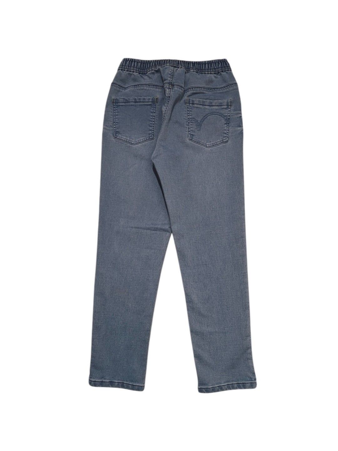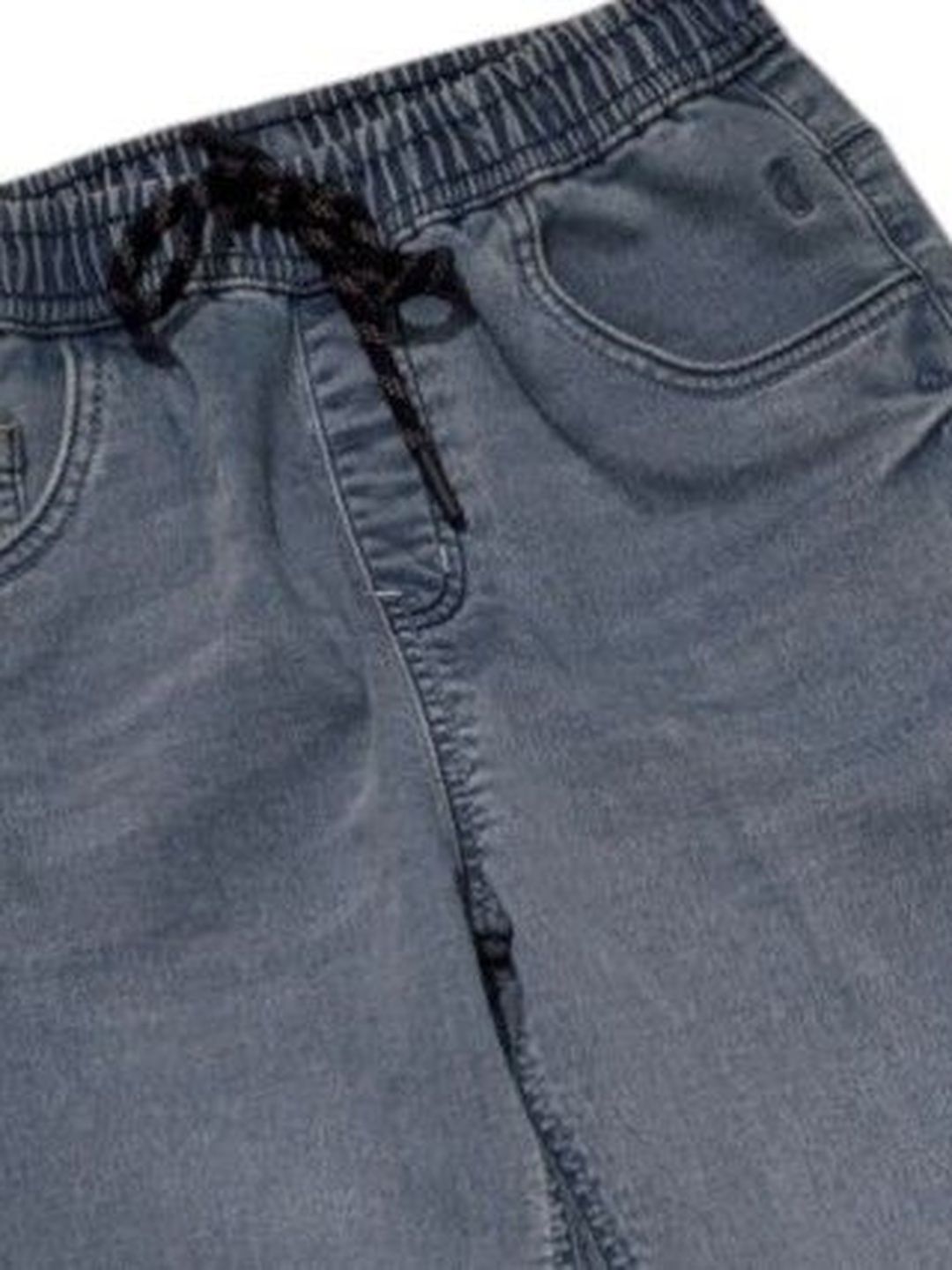 Easy-wear drawstring denim jeans in a soft, faded gray-blue wash. Superior comfort for active play. Team with a hoodie.