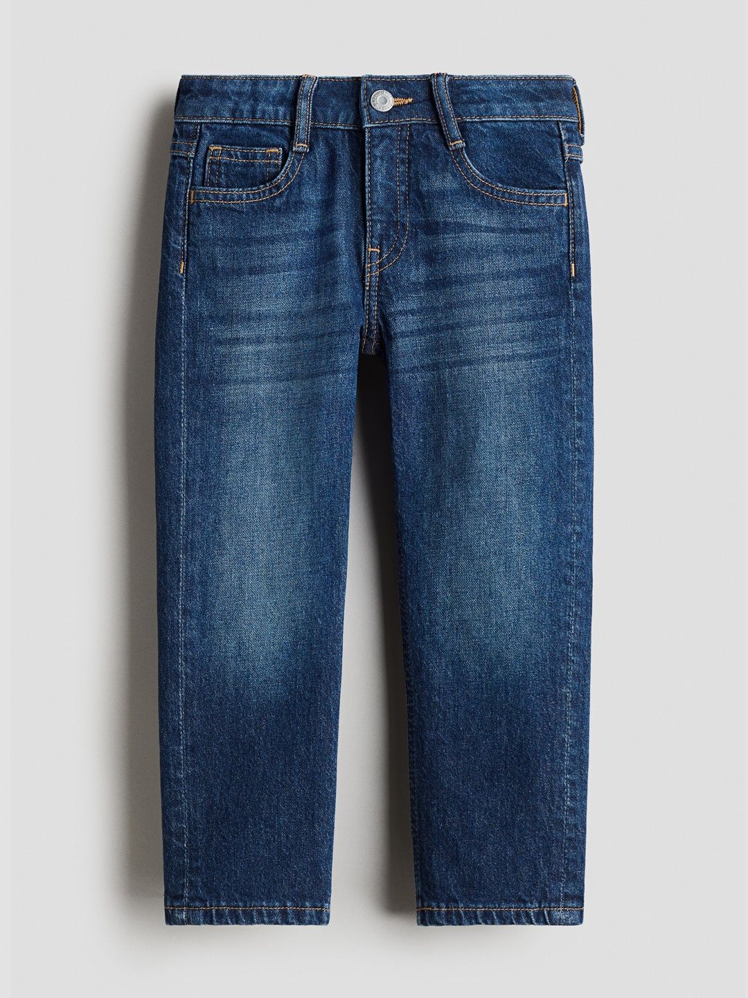 5-pocket jeans in soft, stretchy cotton denim. Relaxed fit through the hip, thigh and leg. Adjustable, elasticated waist and a zip fly with a button.
