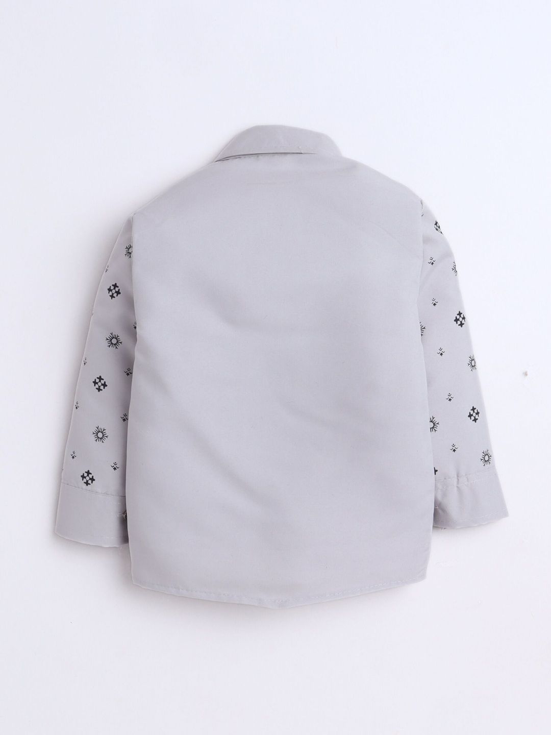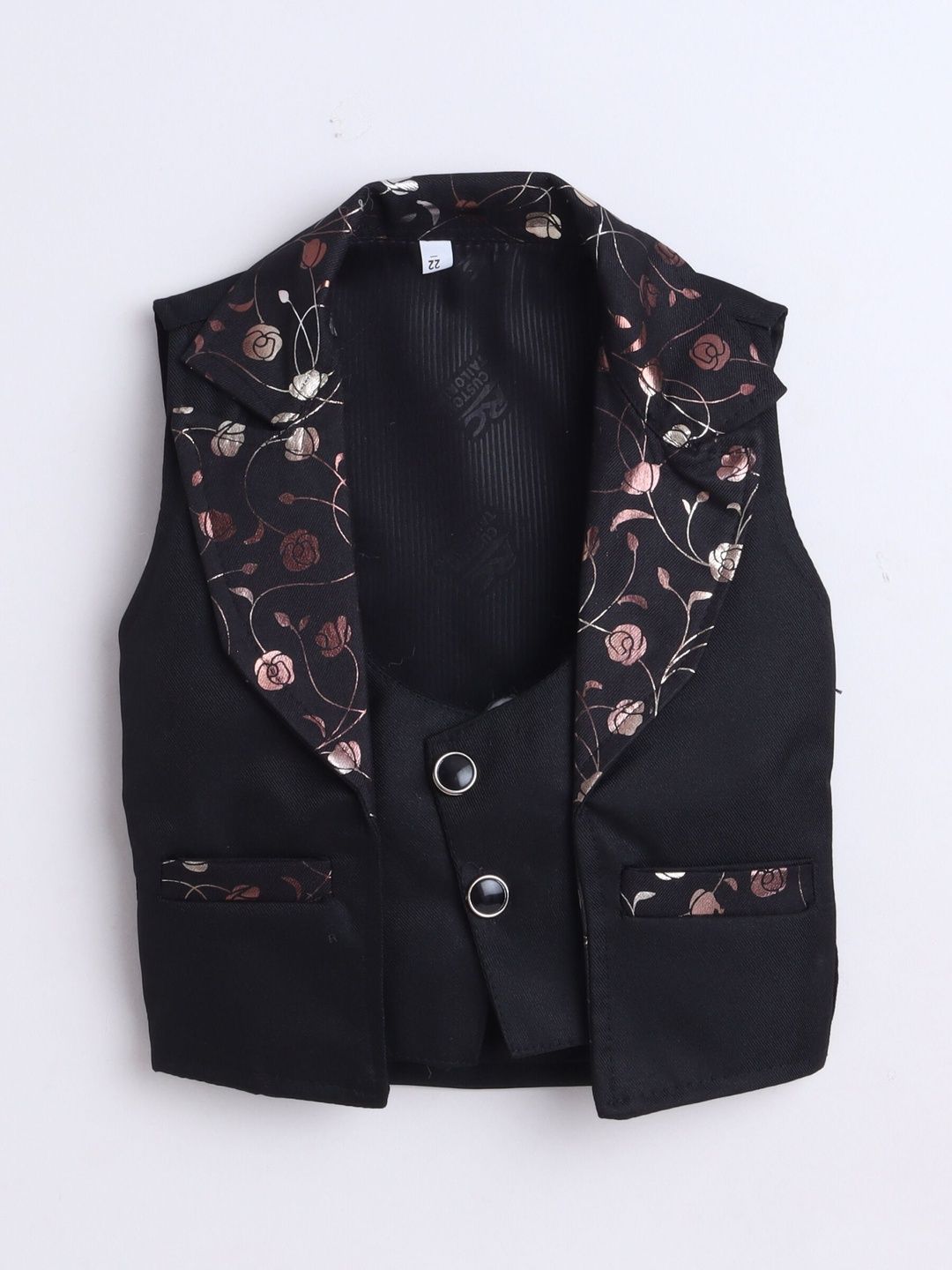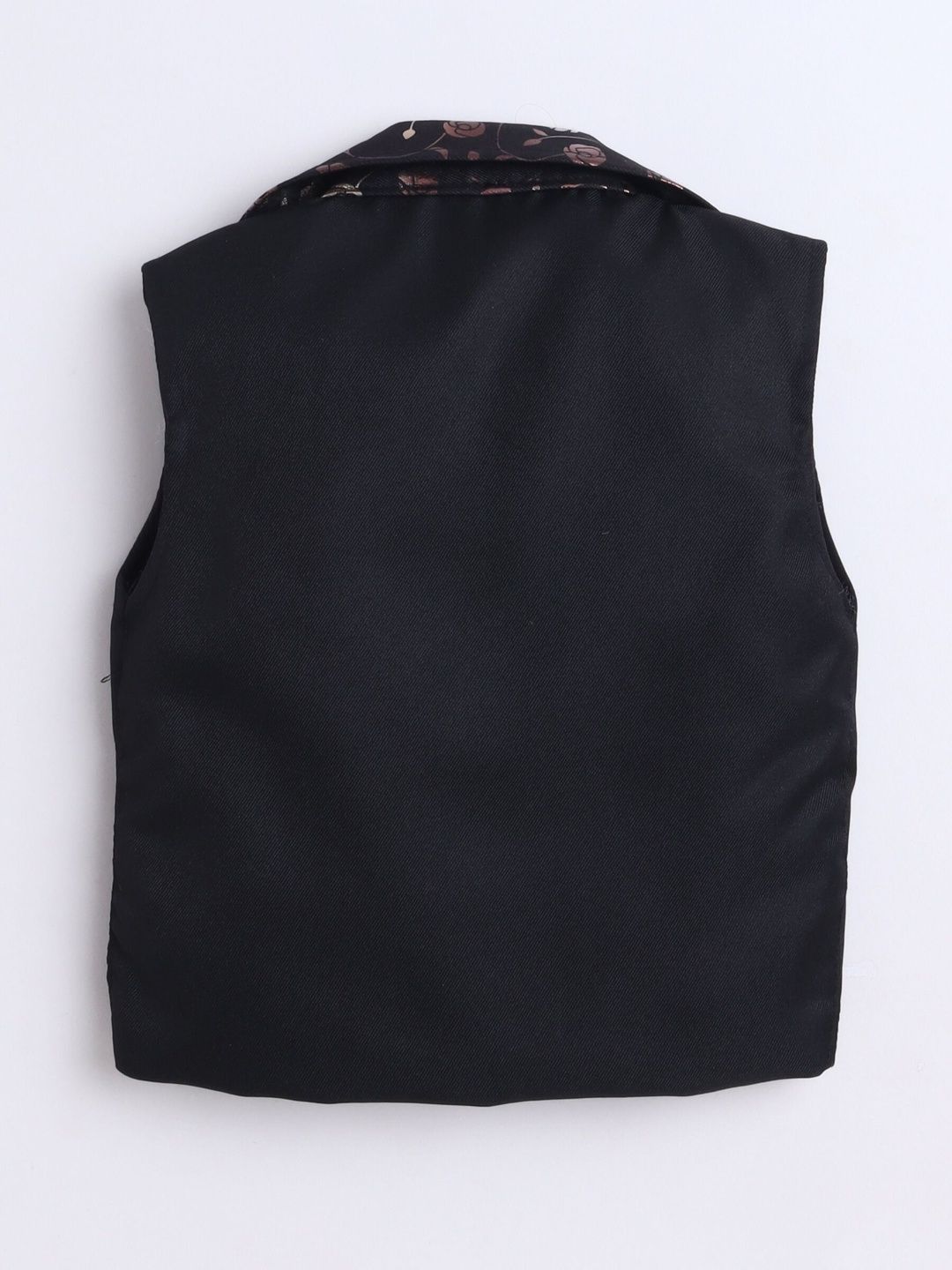 Black party suit with waistcoat, shirt, and trousersGrry printed regular-fit shirt, has a shirt collar, full placket button closures, long sleeves, Black solid mid-rise trousers, has a zip fly with a button and a hook-and-bar closure, 2 pockets, a waistband with belt loopsBlack floral printed waistcoat, has a notched lapel collar, a full button placket, sleeveless, and 2 pocketsComes with matching tie