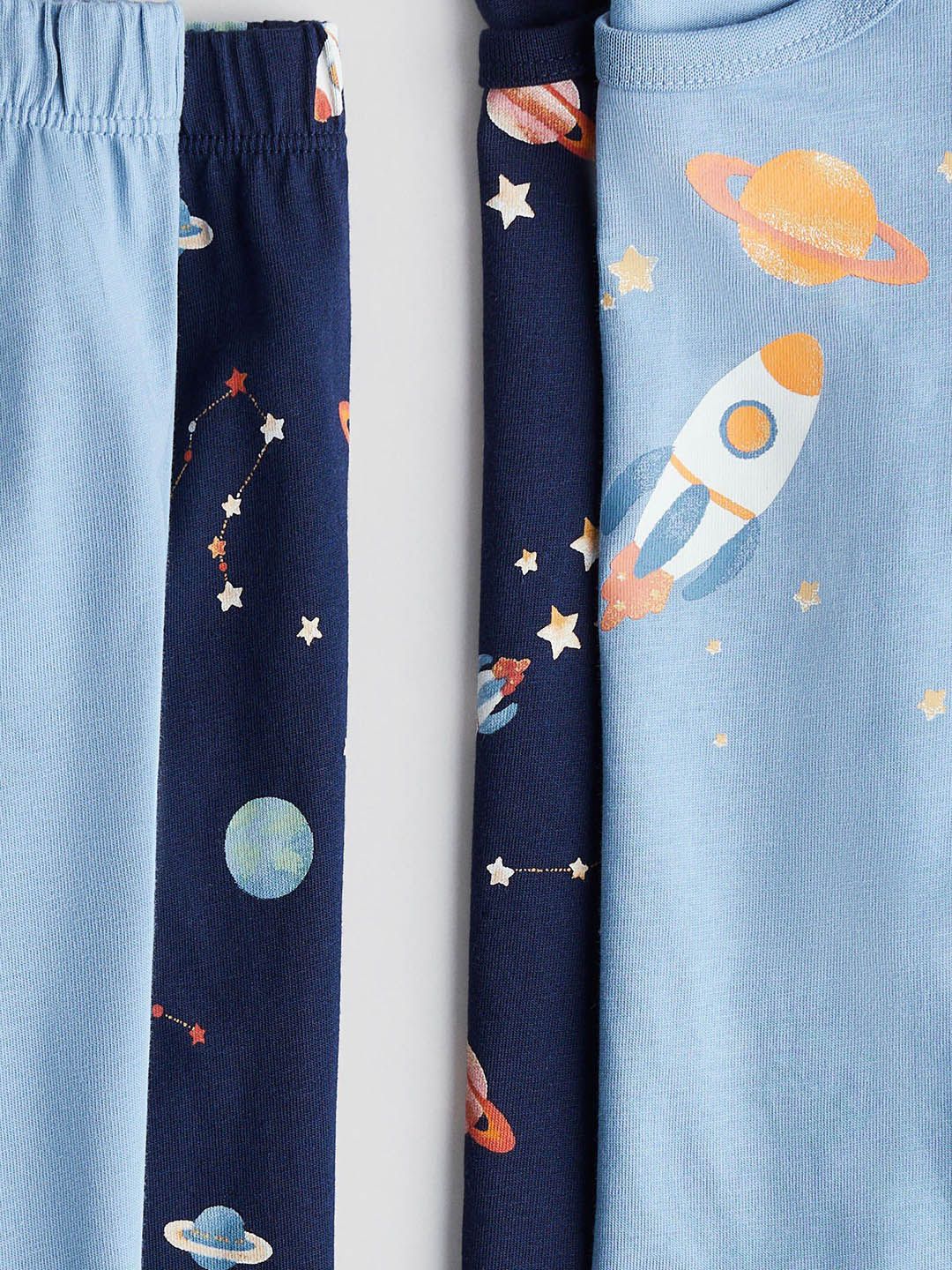 Pyjamas in soft, printed cotton jersey. Long-sleeved tops with a press-stud on one shoulder and ribbed cuffs. Bottoms with covered elastication at the waist and ribbed hems.