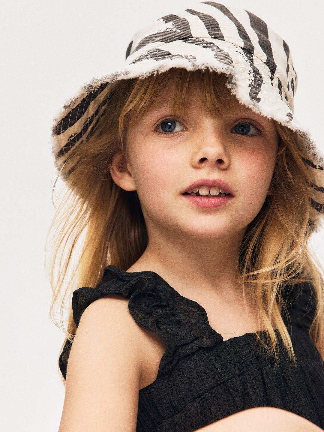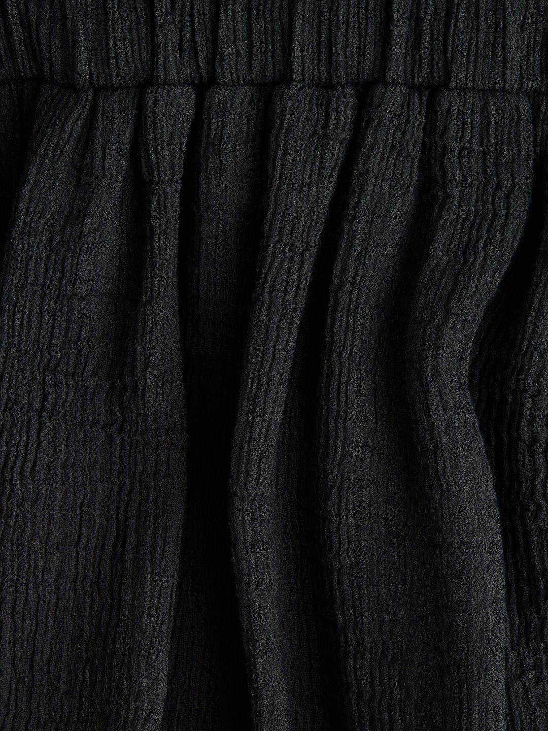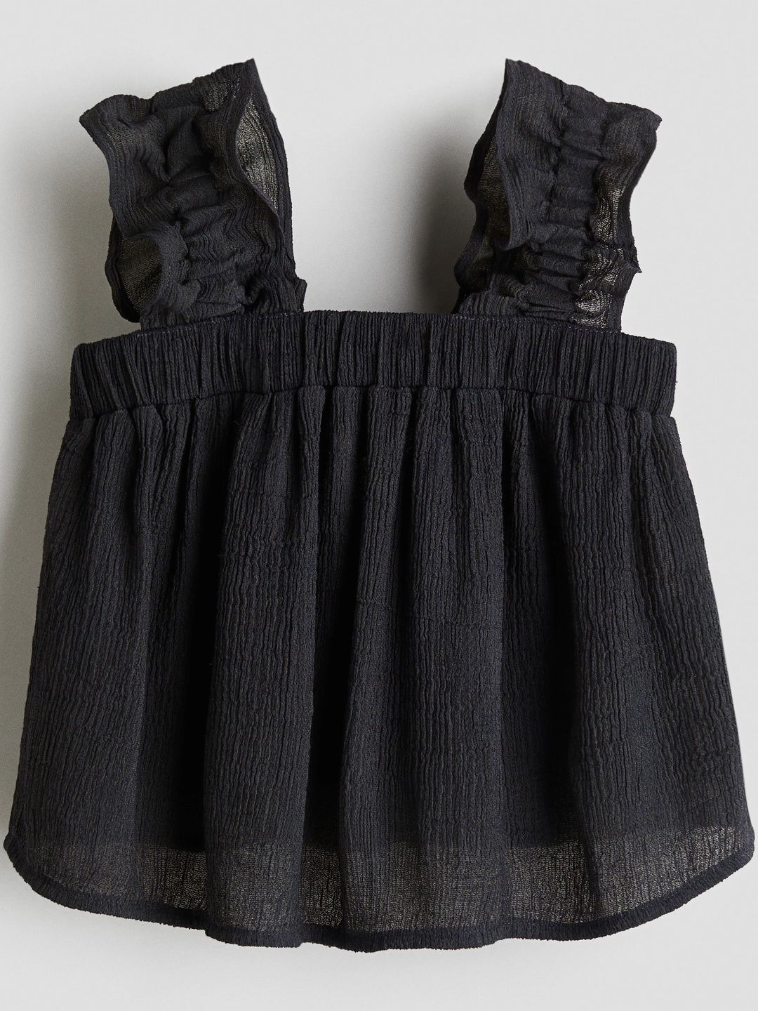 A-line top in an airy, crinkled weave with covered elastication at the top, a square neckline and frill-trimmed, elasticated shoulder straps.