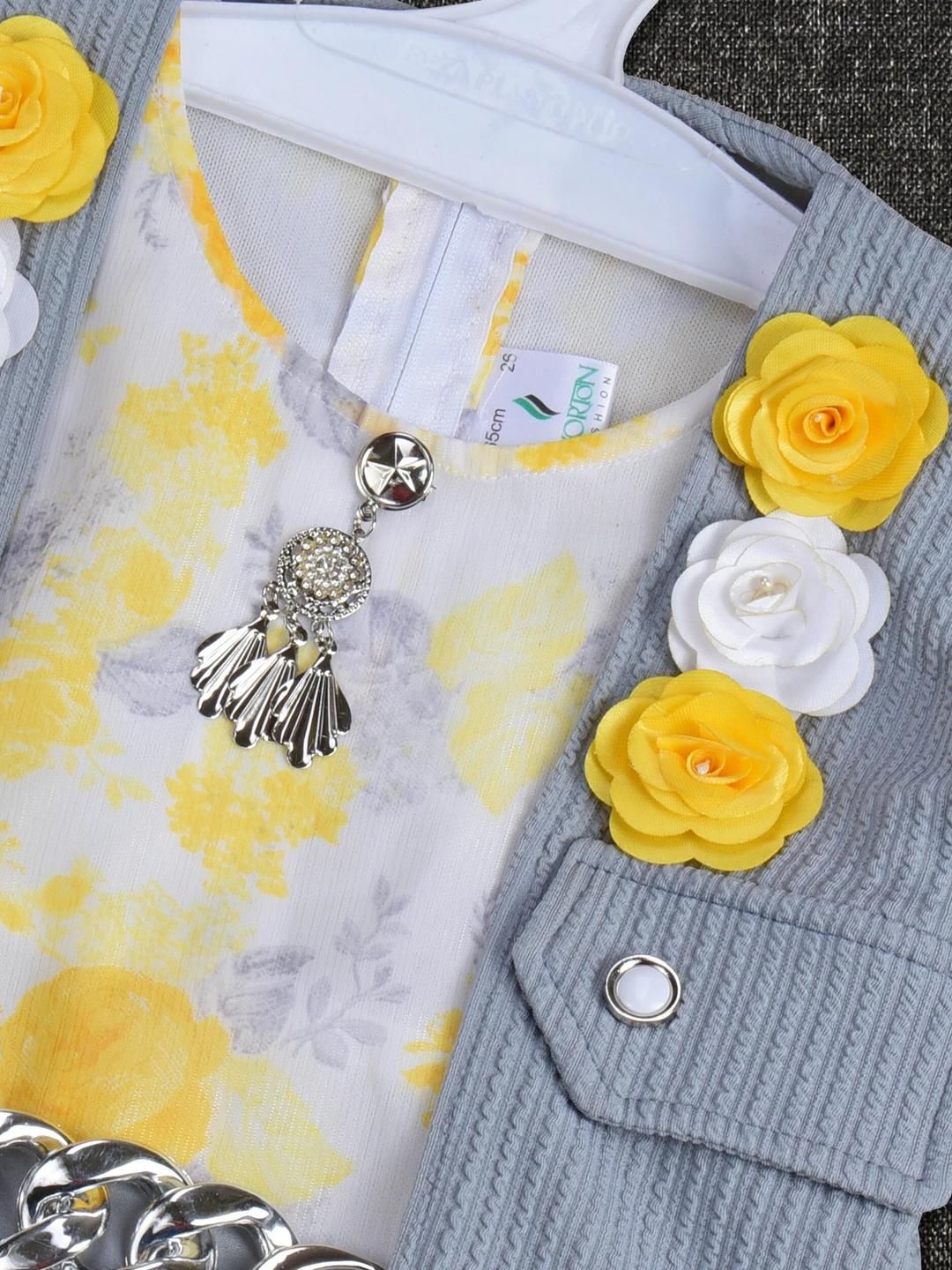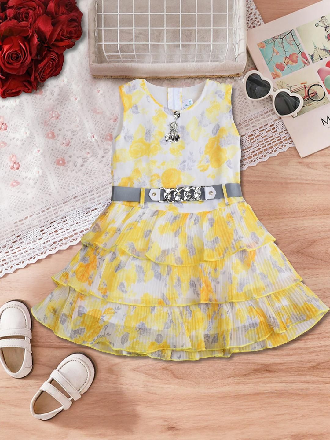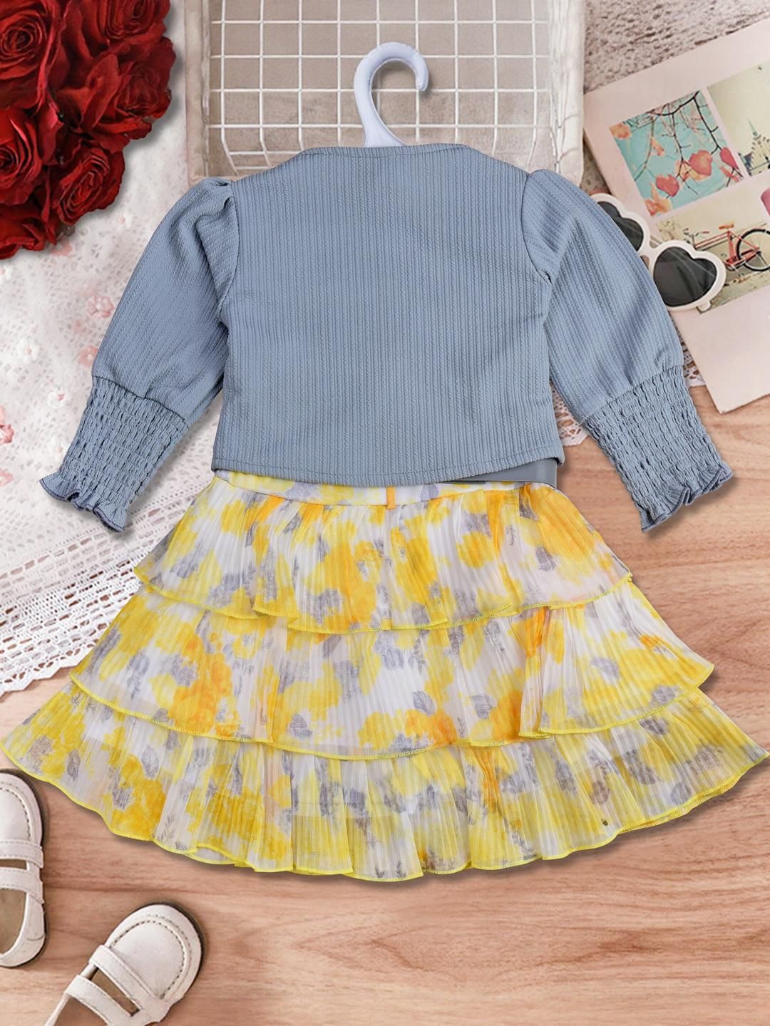 Stylish and comfortable, this girls' frock-and-jacket set combines a structured polyester bodice with a flowing chiffon skirt and matching sheer jacket. Perfect for birthdays, parties, or casual outings, the lightweight chiffon adds elegance, while the durable polyester ensures a snug, wrinkle-resistant fit. Designed for all-day comfort, its a versatile ensemble that transitions effortlessly from playtime to special occasions.
