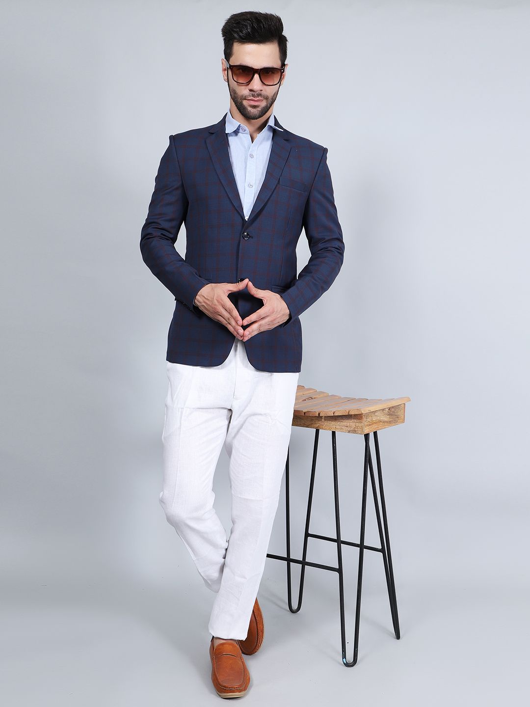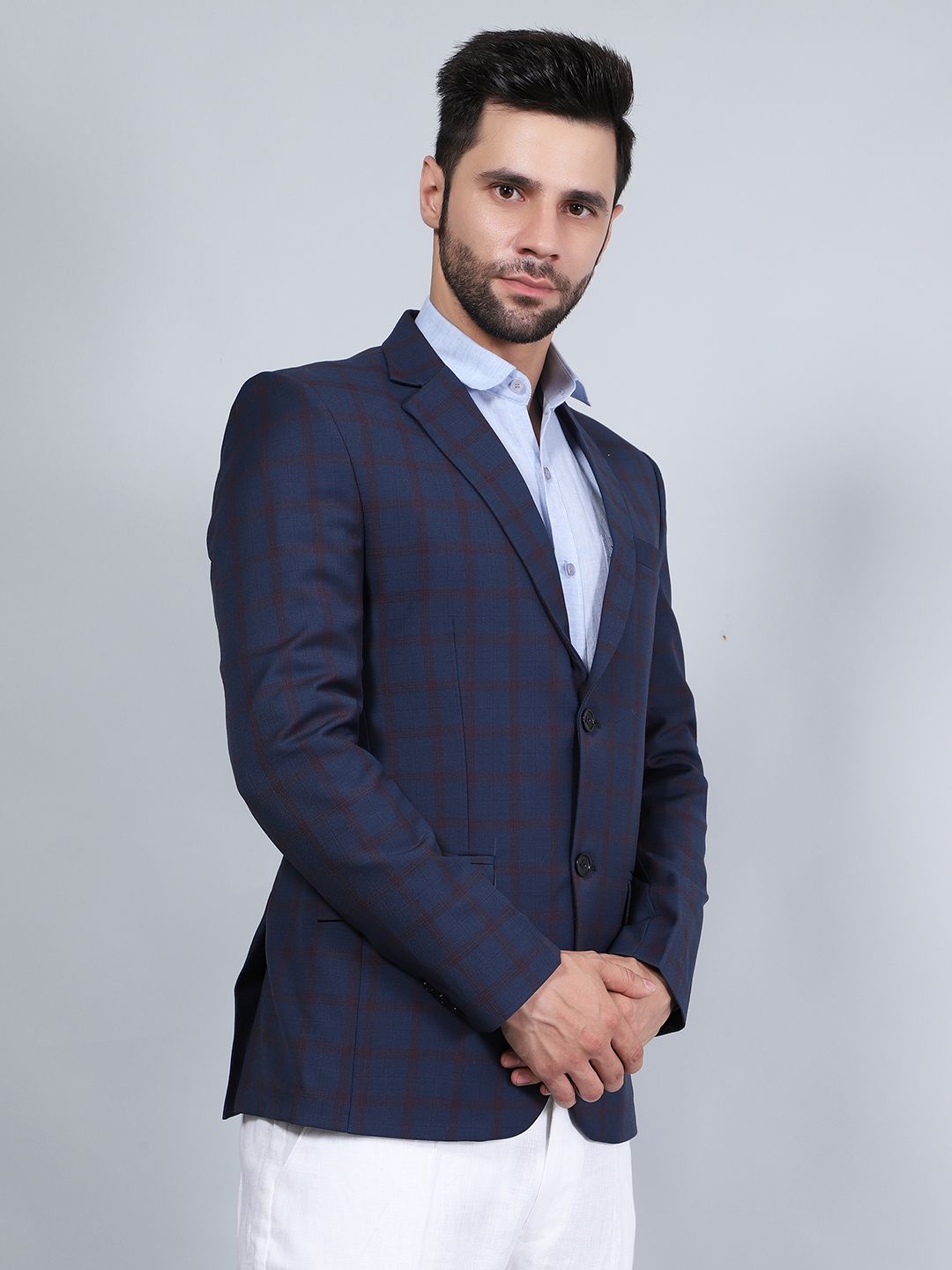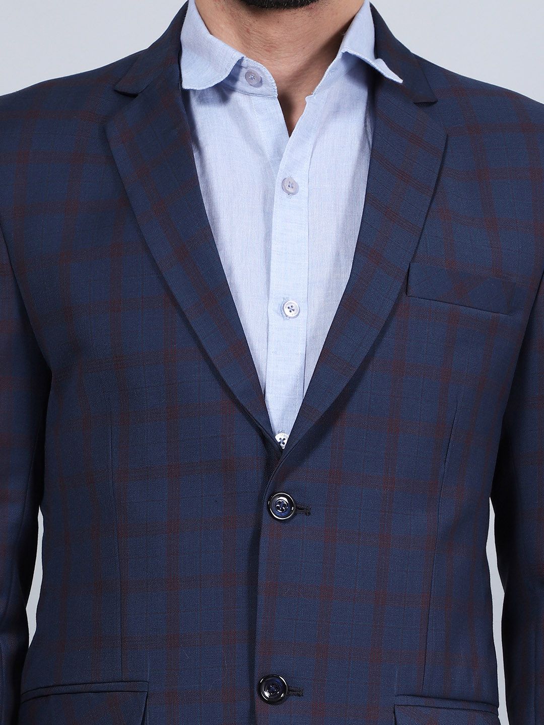 Blue and black checked regular-fit casual blazer, has a notched lapel, long sleeves, single-breasted with double button closure two flap pockets, double vent back hem