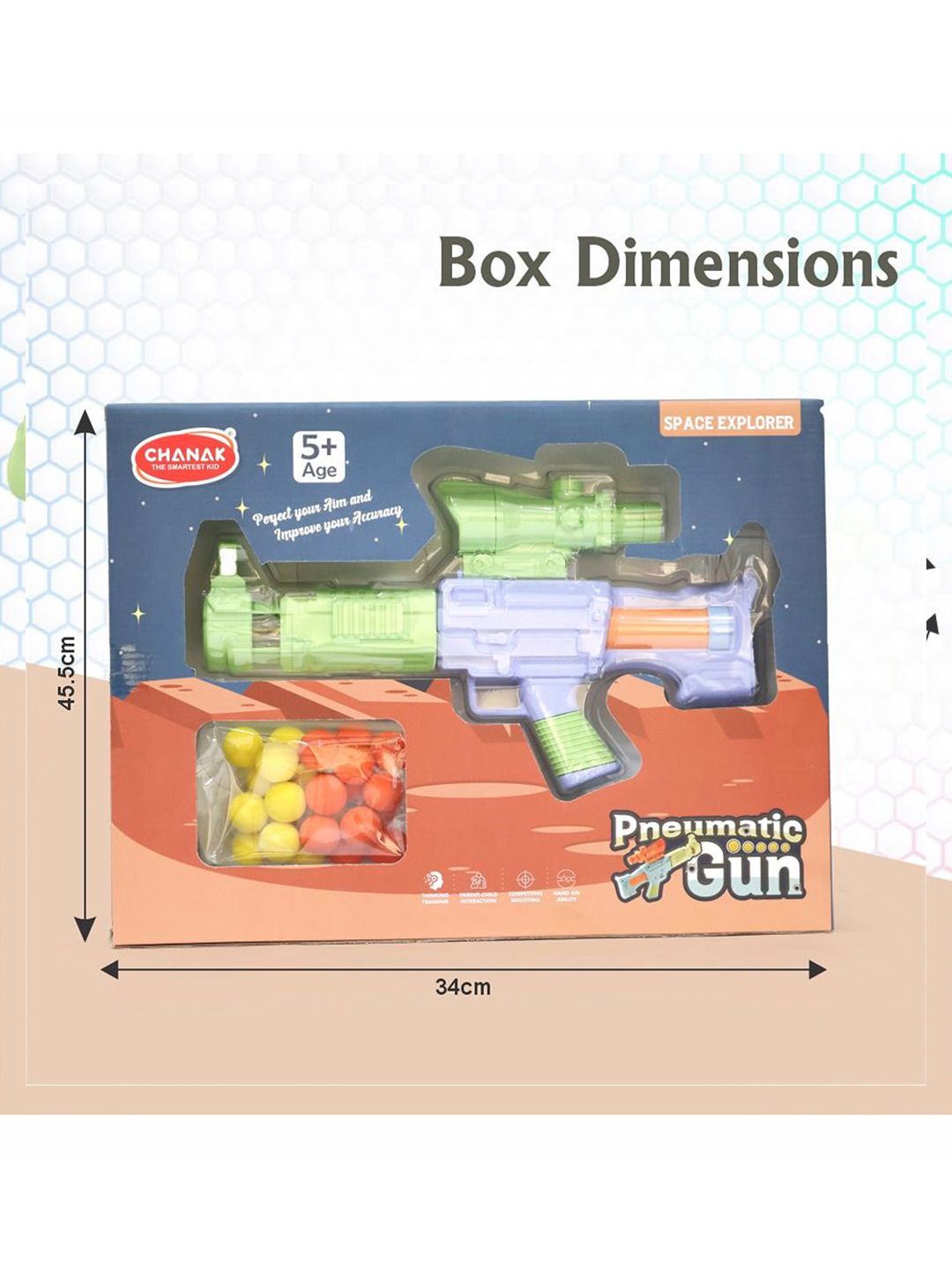 DURABLE MATERIAL - Aditi Toys Space Explorer Pneumatic Gun is crafted from high-quality, child-safe ABS plastic material. This premium material selection ensures that the toy withstands repeated use, providing long-lasting entertainment and value for both children and parents. Included balls are crafted from soft foam material, prioritizing safety for kids.
