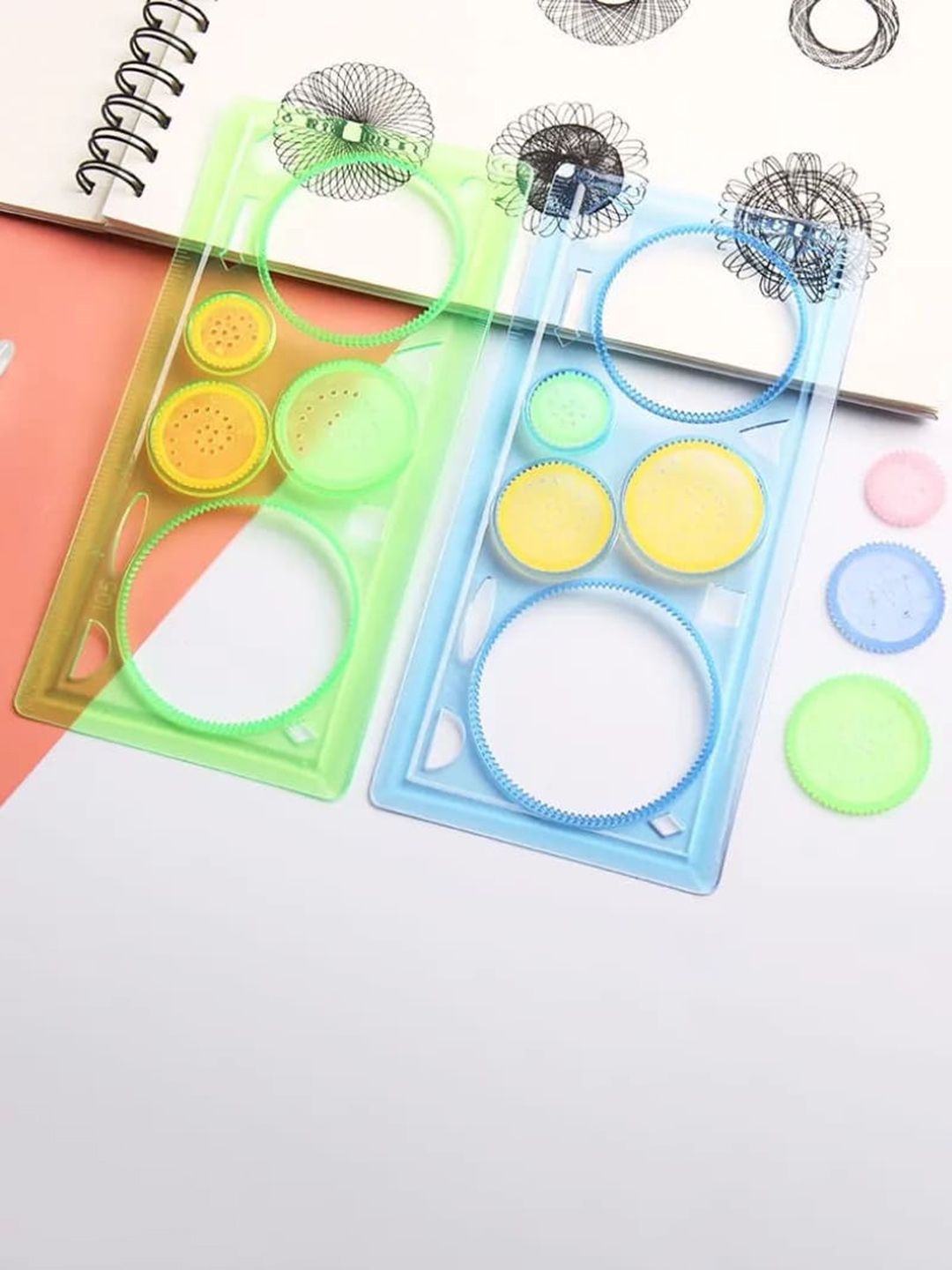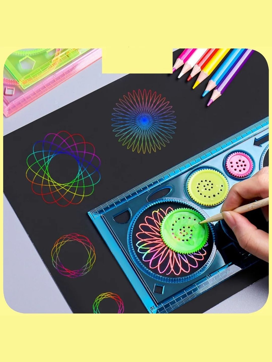 Set content: Spirograph Ruler Stencil Painting scale ToolsType:Painting Activity ToyMaterial: PlasticOperation mode: Manual OperationColour: Pink & YellowSuitable age: 5 Years plusFeatures:Non-Allergic