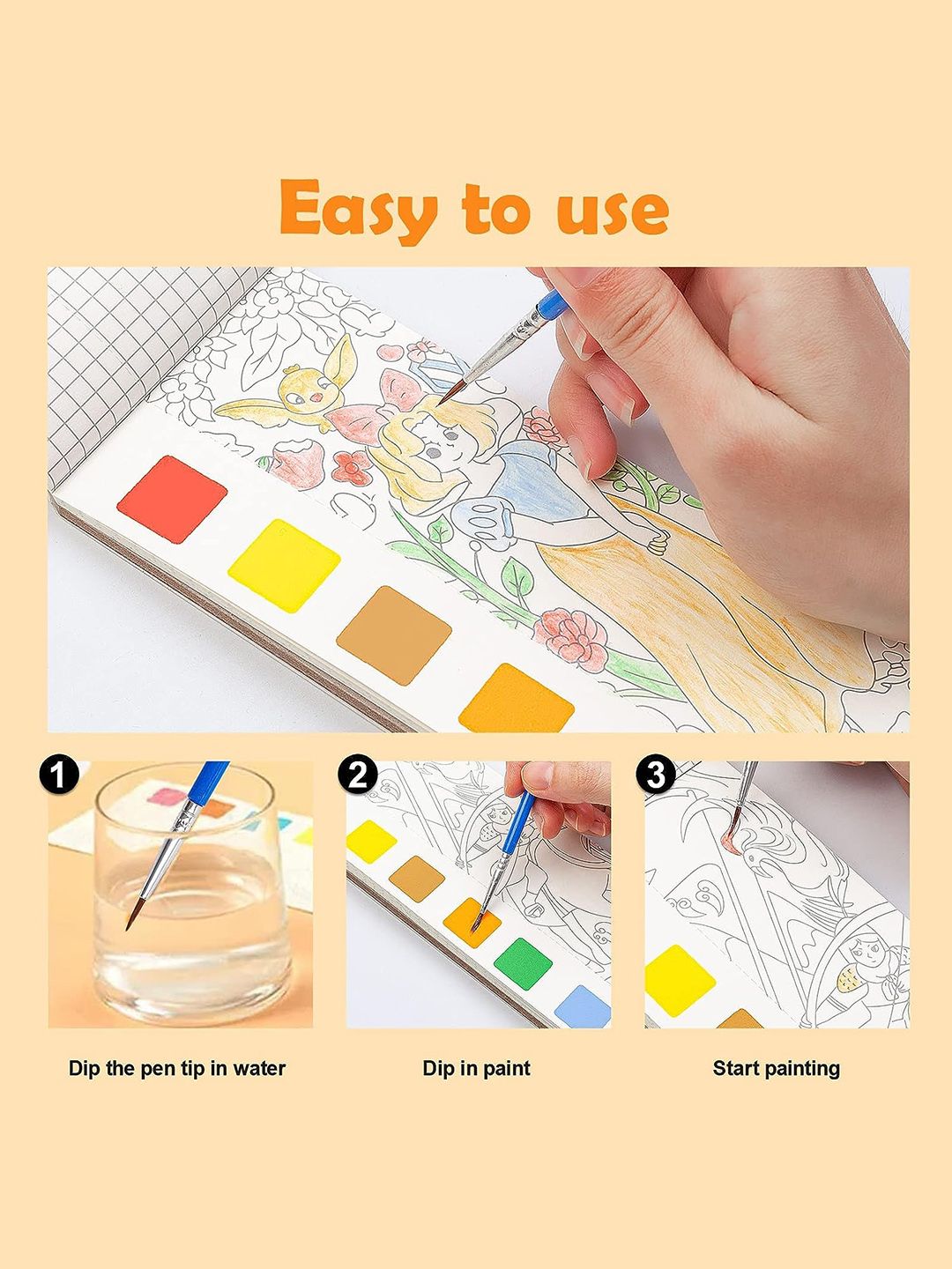 Set content: Pack of 3 Pocket Watercolor Painting Book with color & BrushType:Painting Activity ToyMaterial: PlasticOperation mode: Manual OperationColour:Red & YellowSuitable age: 4 Years plusFeatures:Non-Allergic