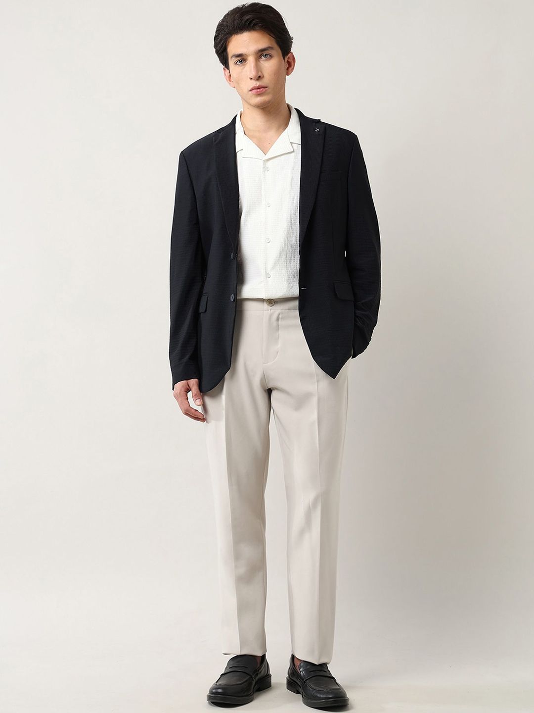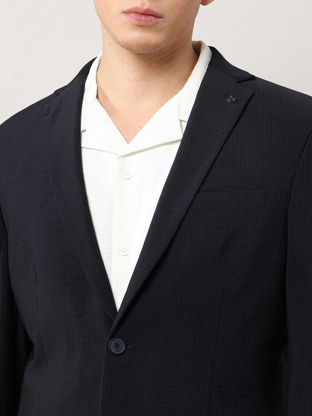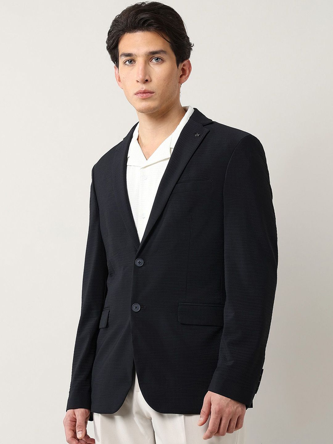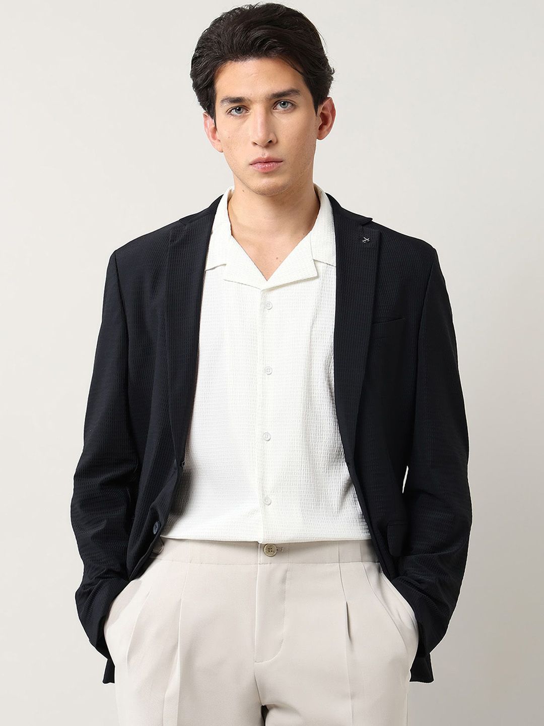 Elevate your workwear with this lightweight, pattern-textured blazer for men. Perfect for the office, it adds sophistication to any ensemble.