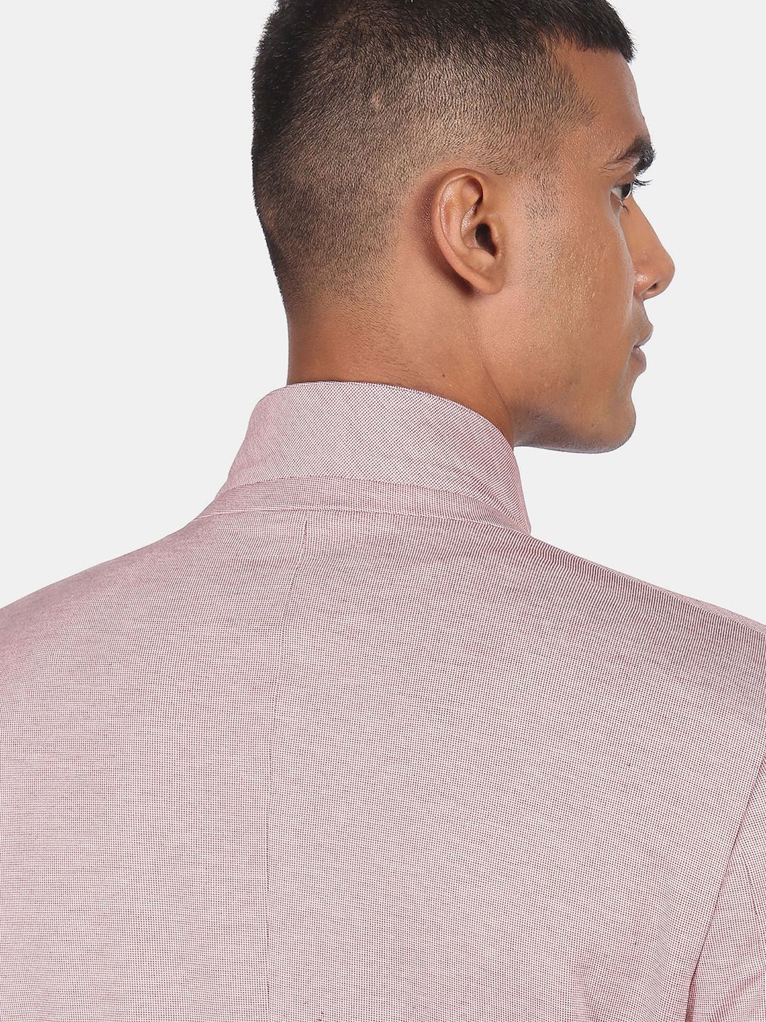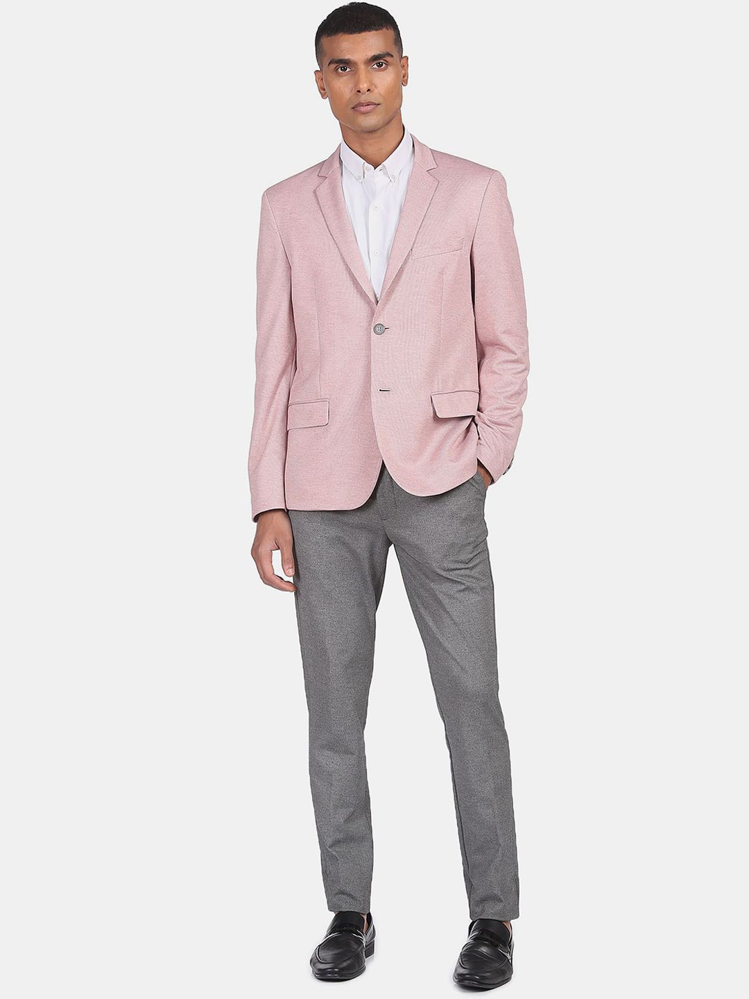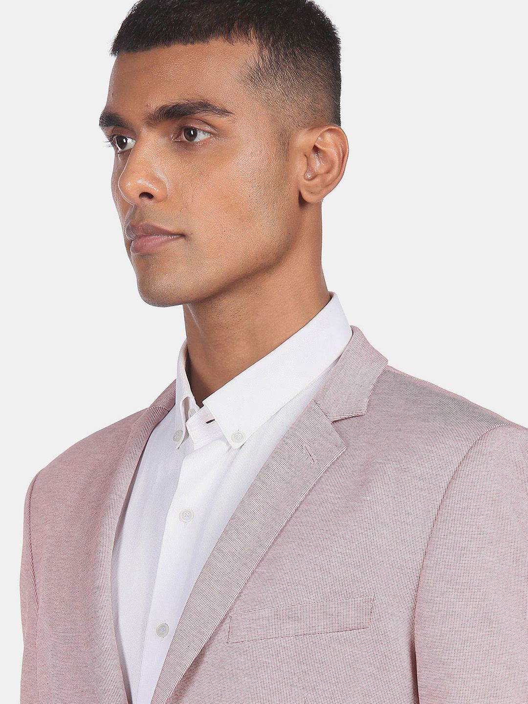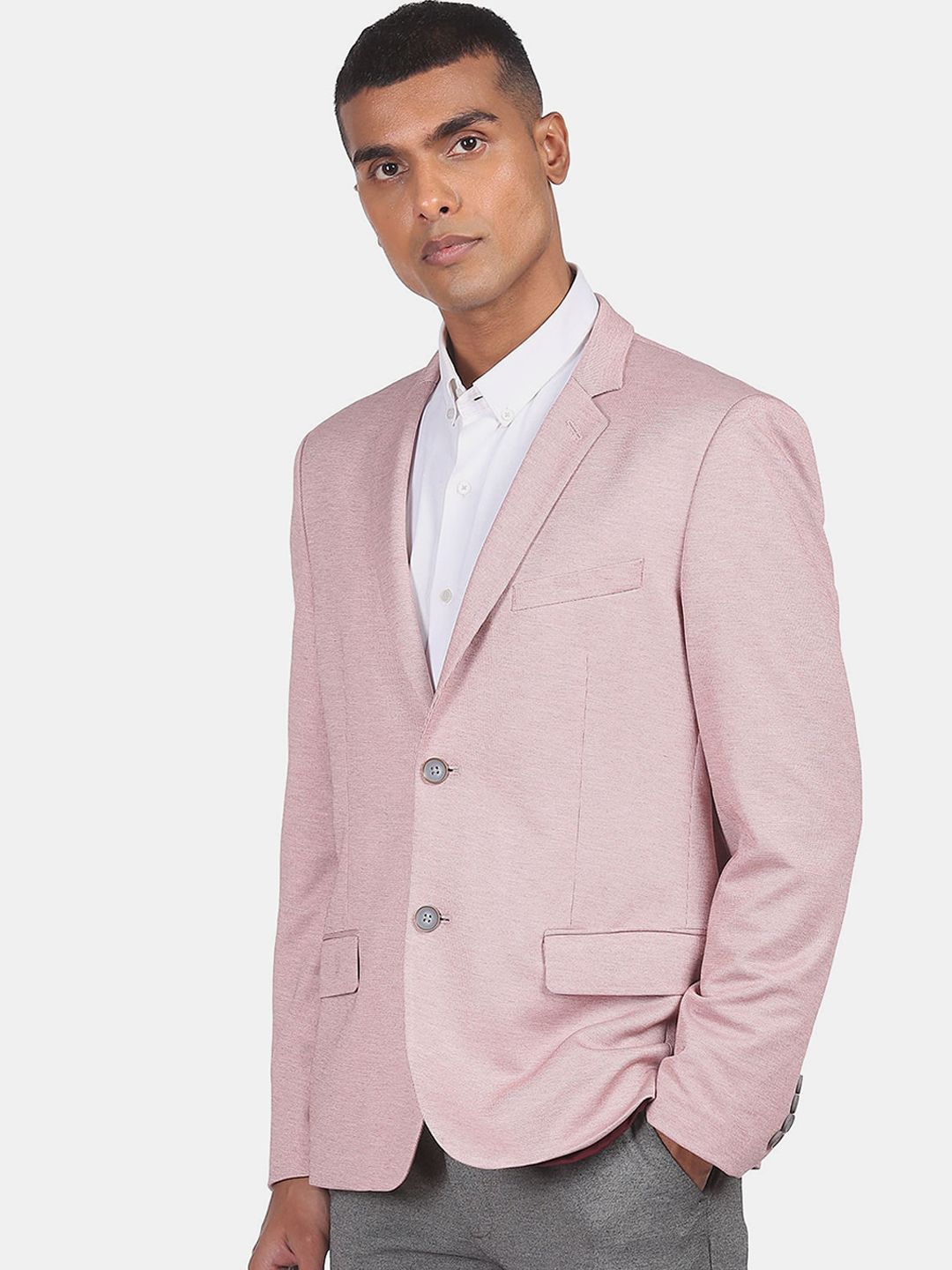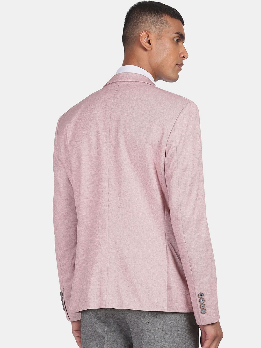 Pink Self Design single-breasted smart casual blazer, has a notched lapel, long sleeves, button closure, and three in-built pockets, double vented back hem