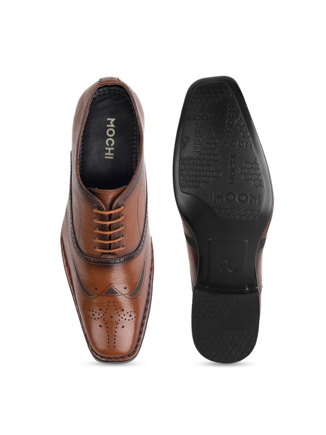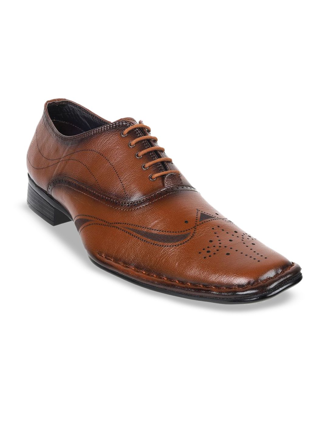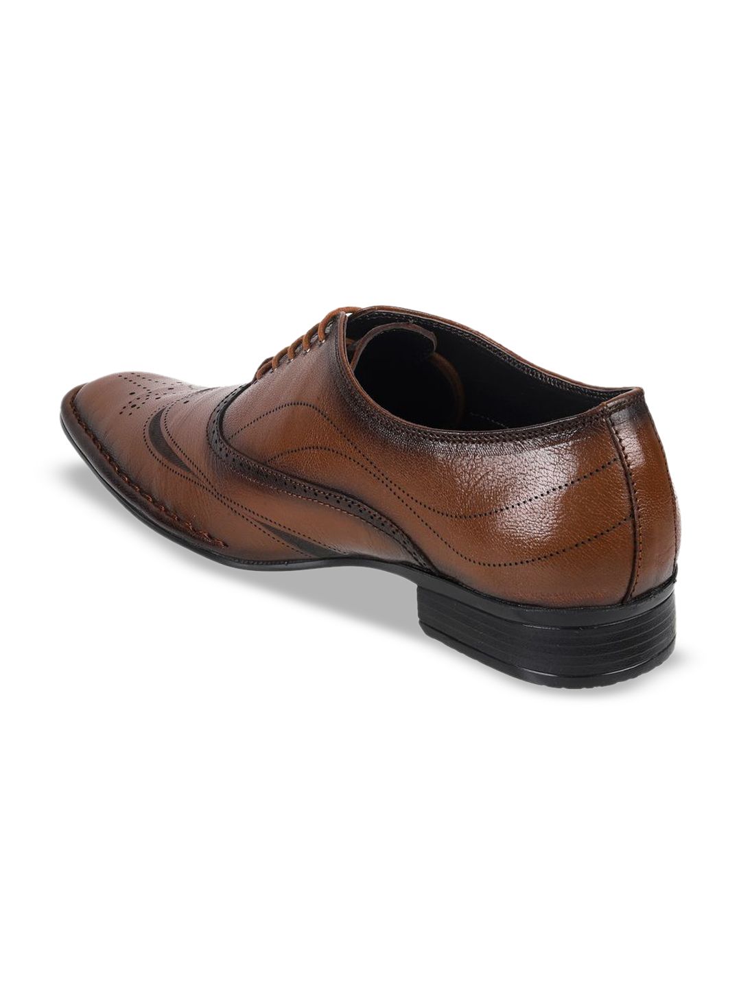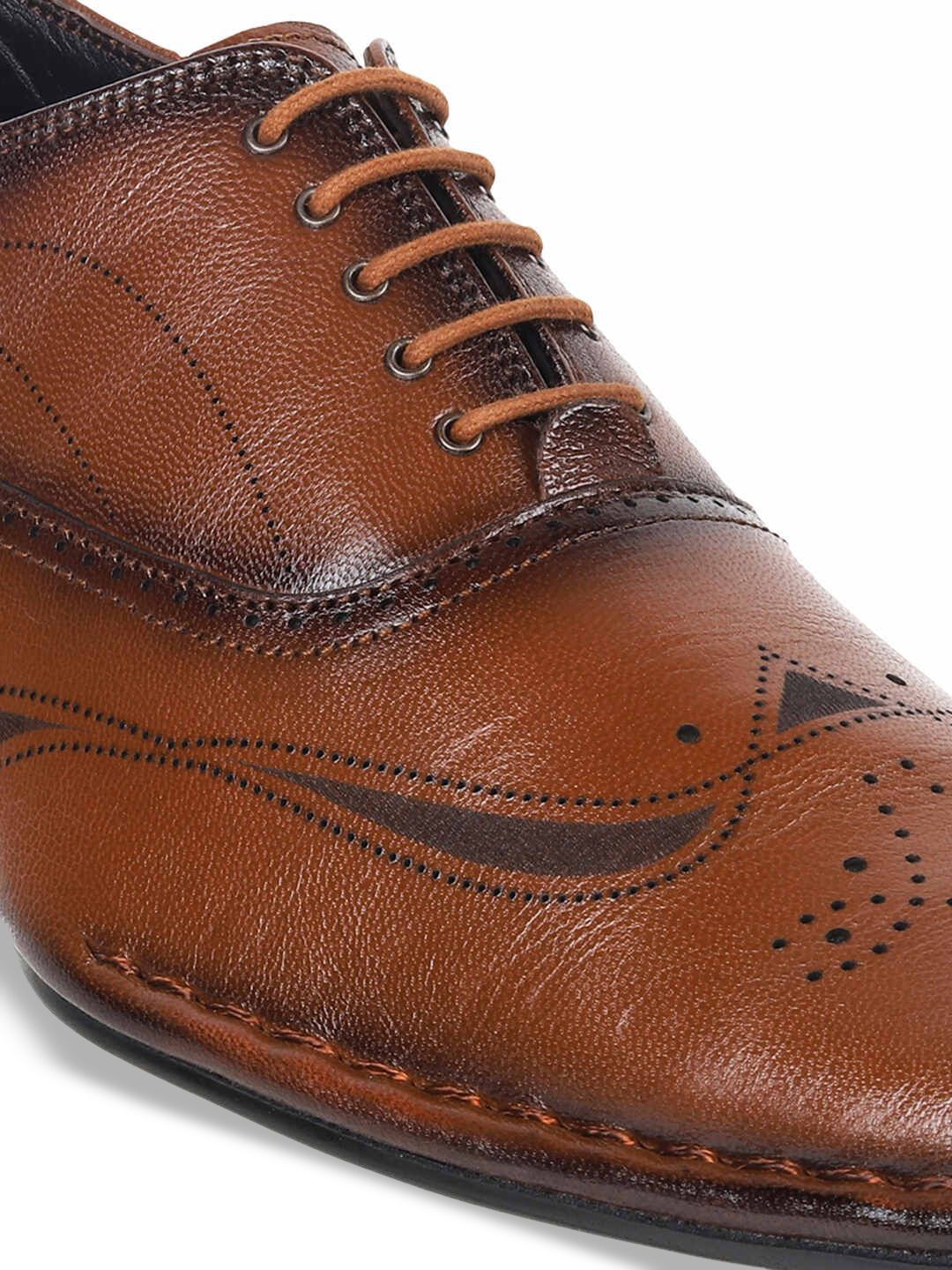 A pair of tan textured round-toe formal brogues with regular styling has a lace-up closureLeather upperCushioned footbedTextured and patterned PU outsoleWarranty: 1 MonthsWarranty provided by brand/manufacturer