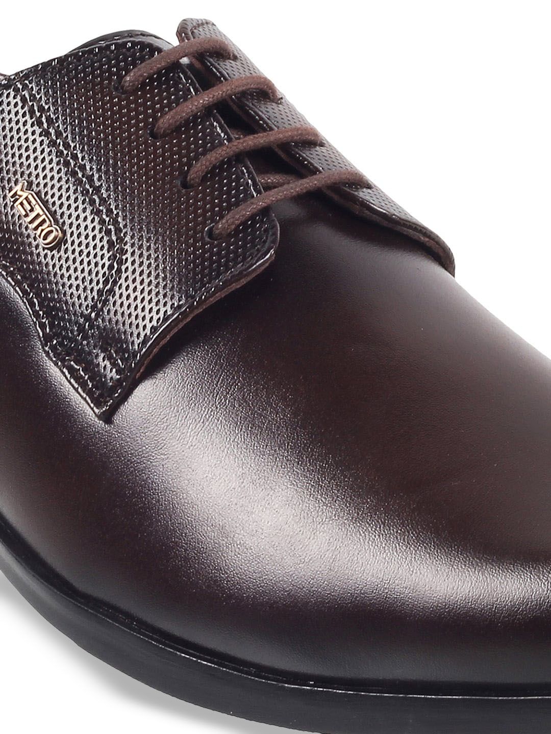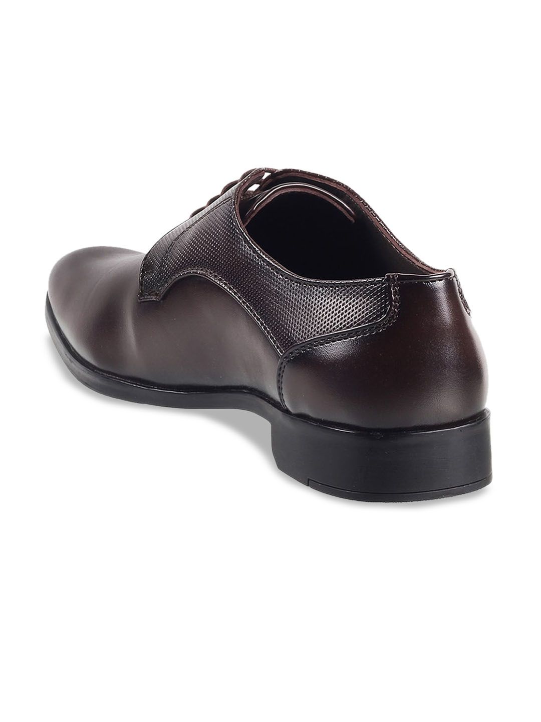 A pair of brown textured round-toe formal Derbys, has central lace-upsLeather upperCushioned footbedTextured TPR outsoleWarranty: 1 month against manufacturing defectsWarranty provided by brand/manufacturer