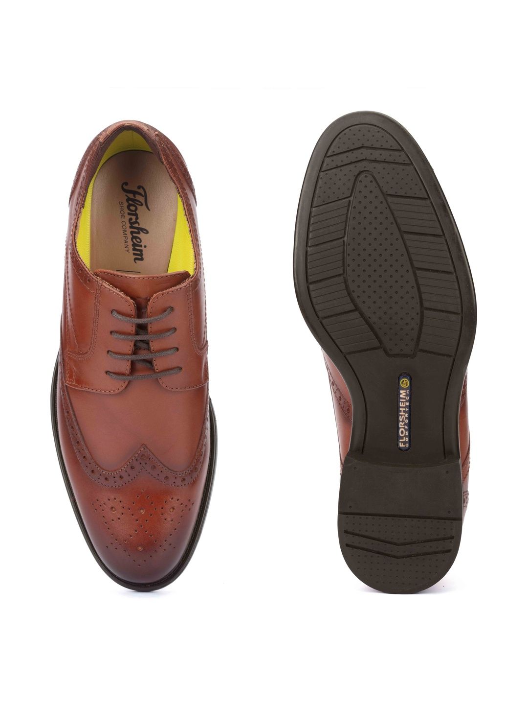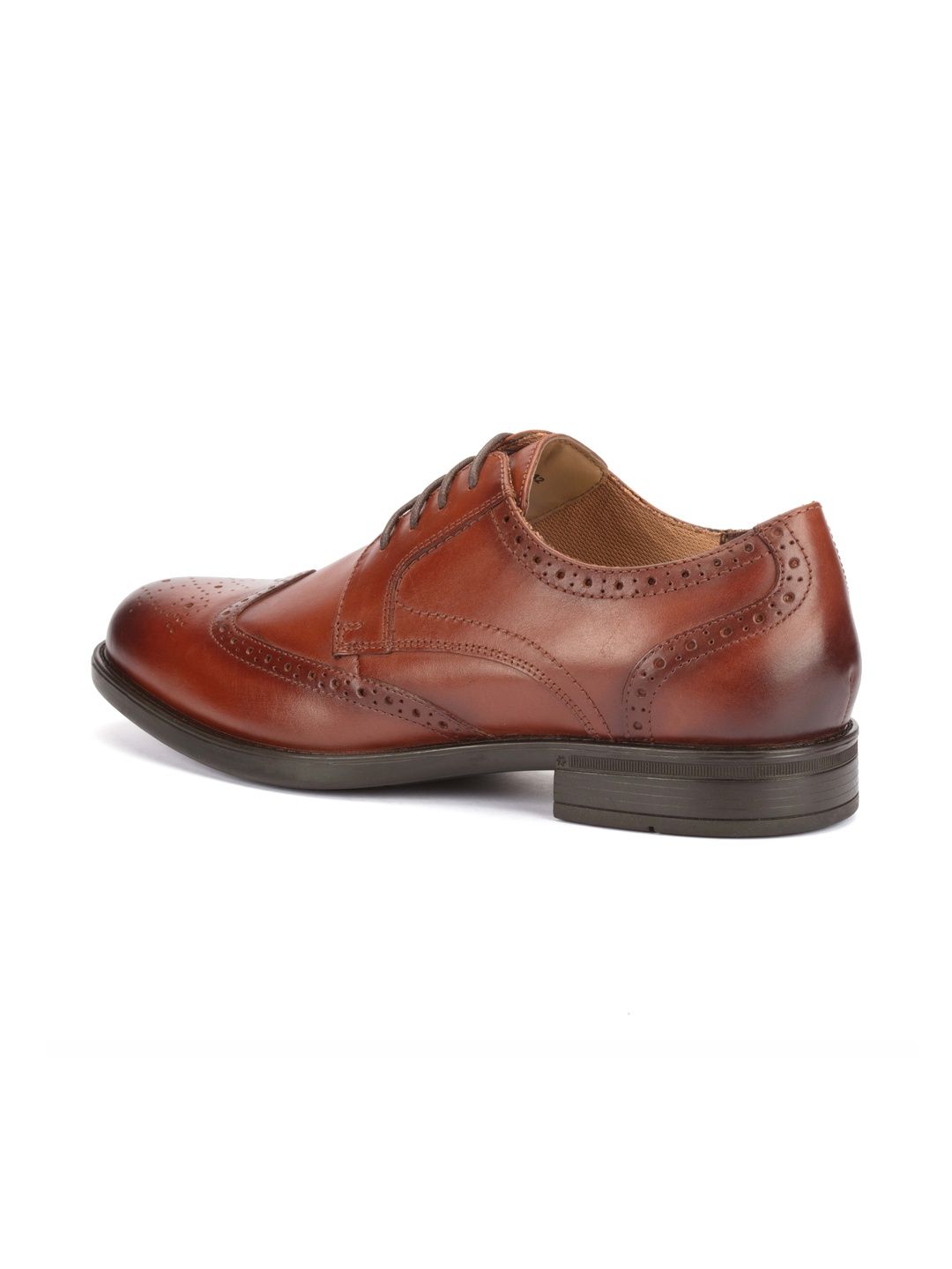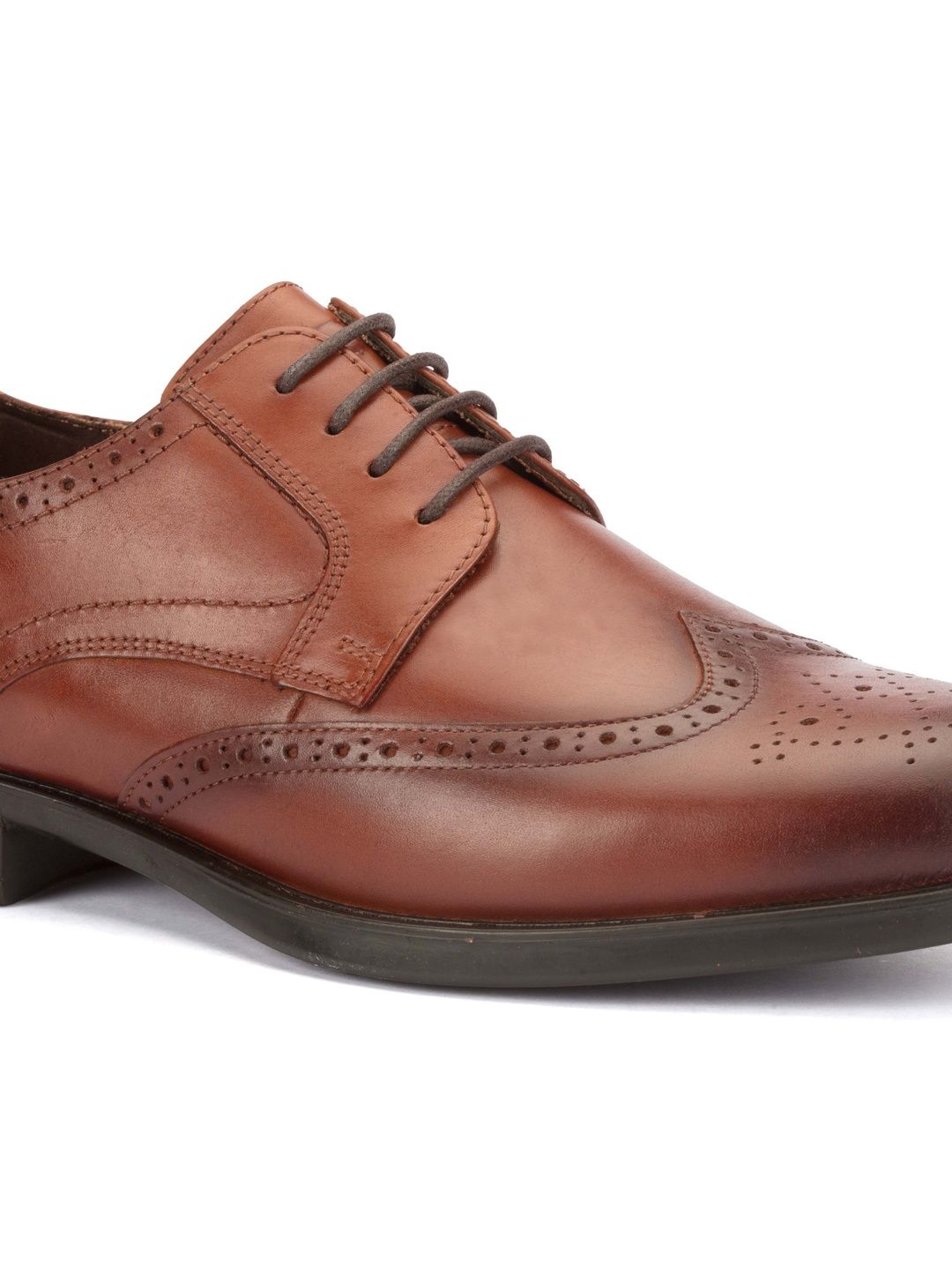 A pair of tan solid round-toe formal brogues with regular styling has a lace-up closureLeather upperCushioned footbedTextured and patterned rubber outsoleWarranty: 1 MonthsWarranty provided by brand/manufacturer
