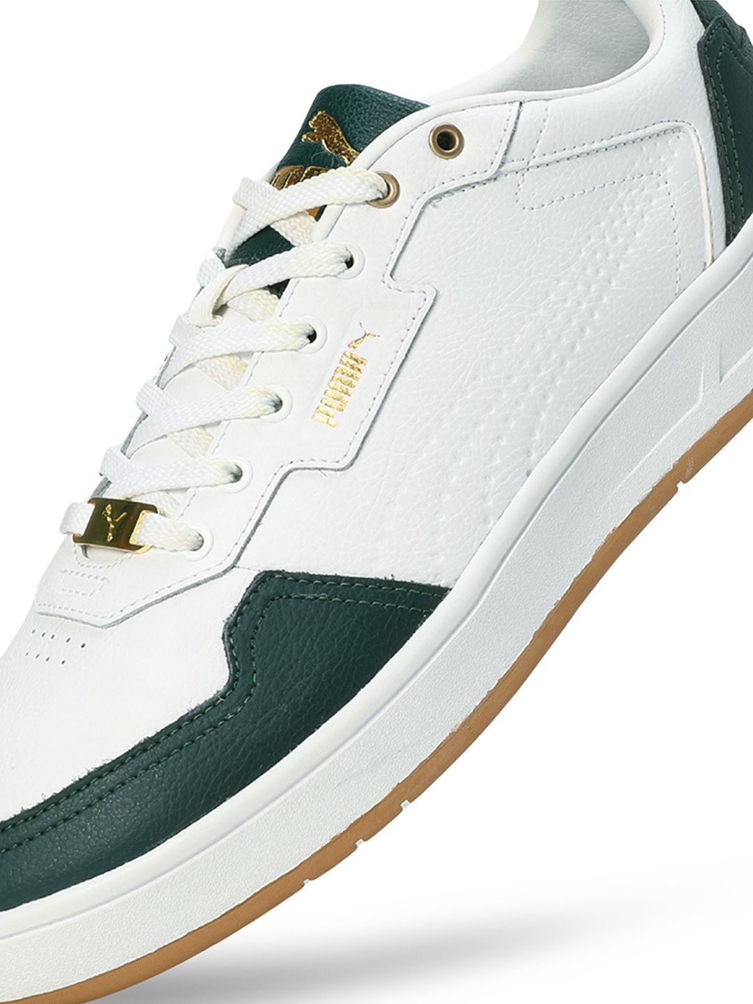 A pair of white solid round toe casual sneakers with regular styling has a lace up closureLeather upperCushioned footbedTextured and patterned rubber outsoleWarranty: 3 MonthsWarranty provided by brand/manufacturerProduct Story Step into the spotlight with the Court Classic Lux Res Sneakers. Designed as a low boot with a sleek lacing system, and featuring Softfoam sockliner for cushioning, these sneakers encapsulate the essence of sneakerhead culture. With their understated yet timeless design, theyre the go-to choice for those who appreciate subtlety and class in their kicks.Features & Benefits : SoftFoam+: PUMAs comfort sockliner for instant step-in and long-lasting comfort that provides soft cushioning every step of your day, Details : Heel type: Flat, Shoe width: Regular fit, Shoe pronation: Neutral, Low boot, Leather upper with perforations, Rubber outsole, PUMA wordmark and cat logo at tongue.