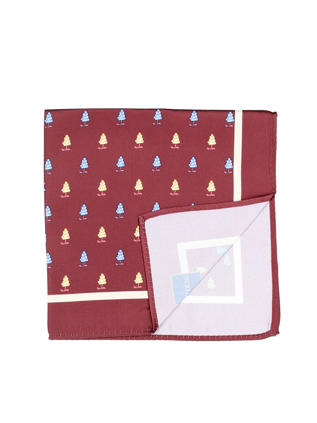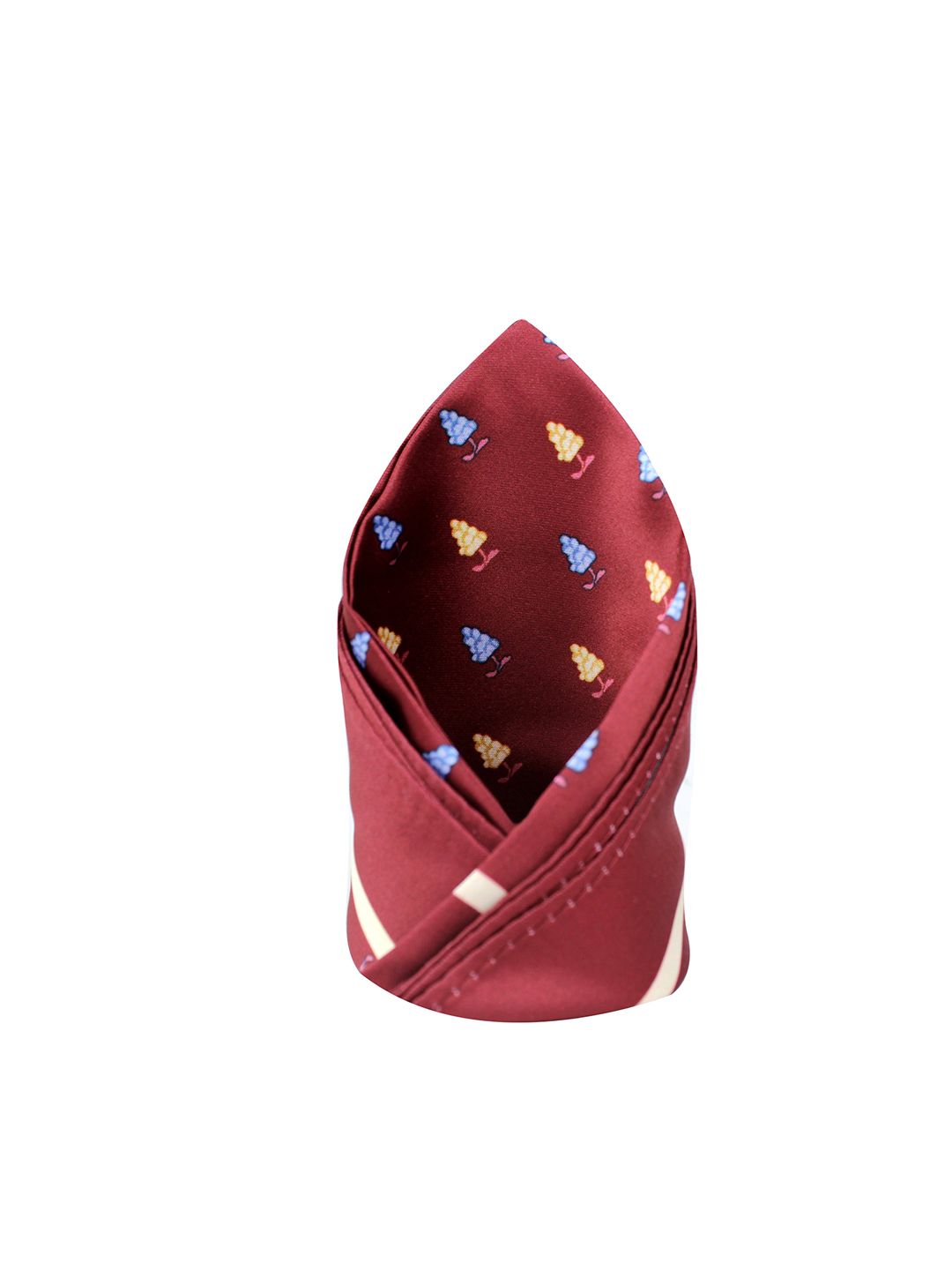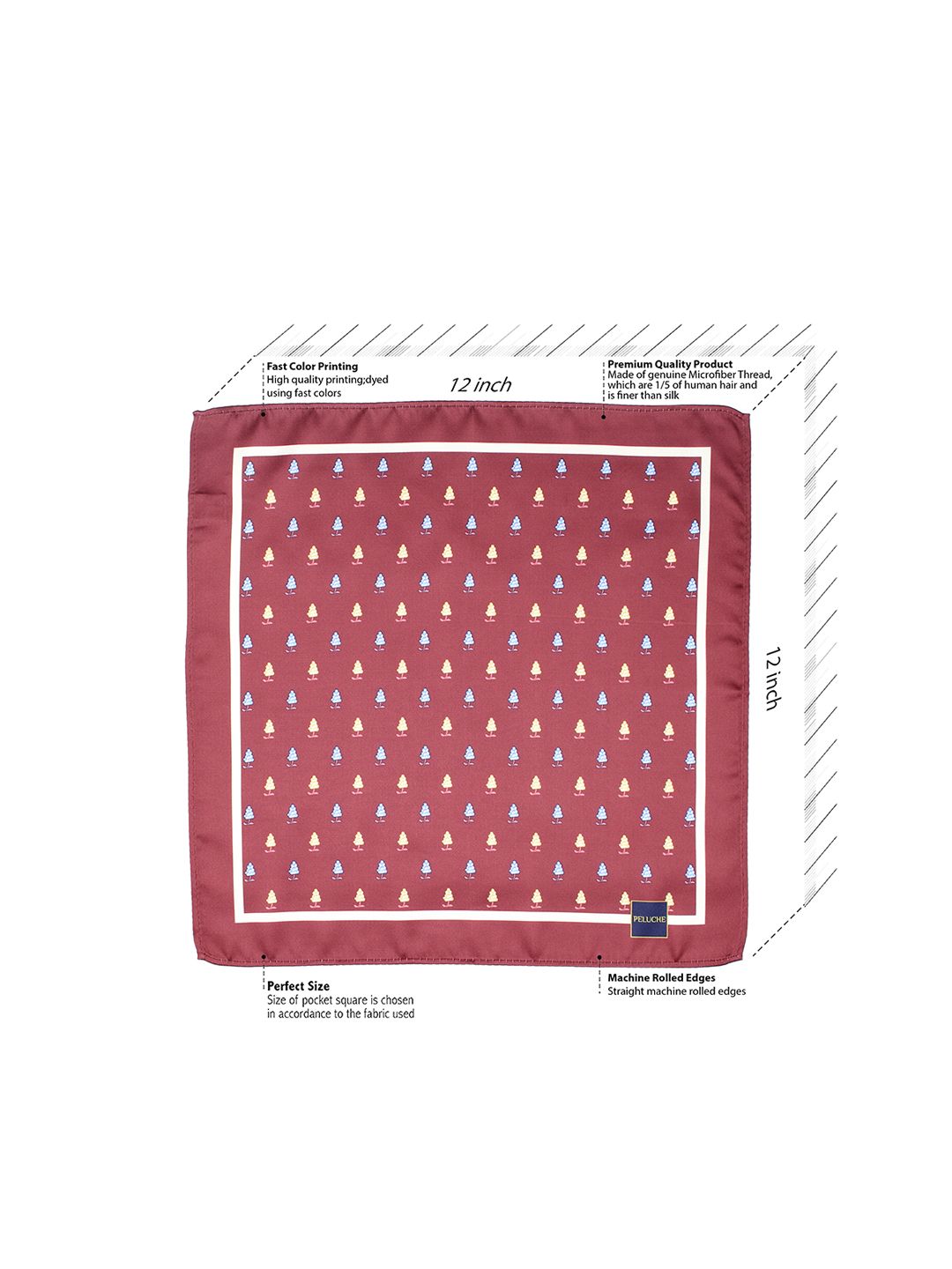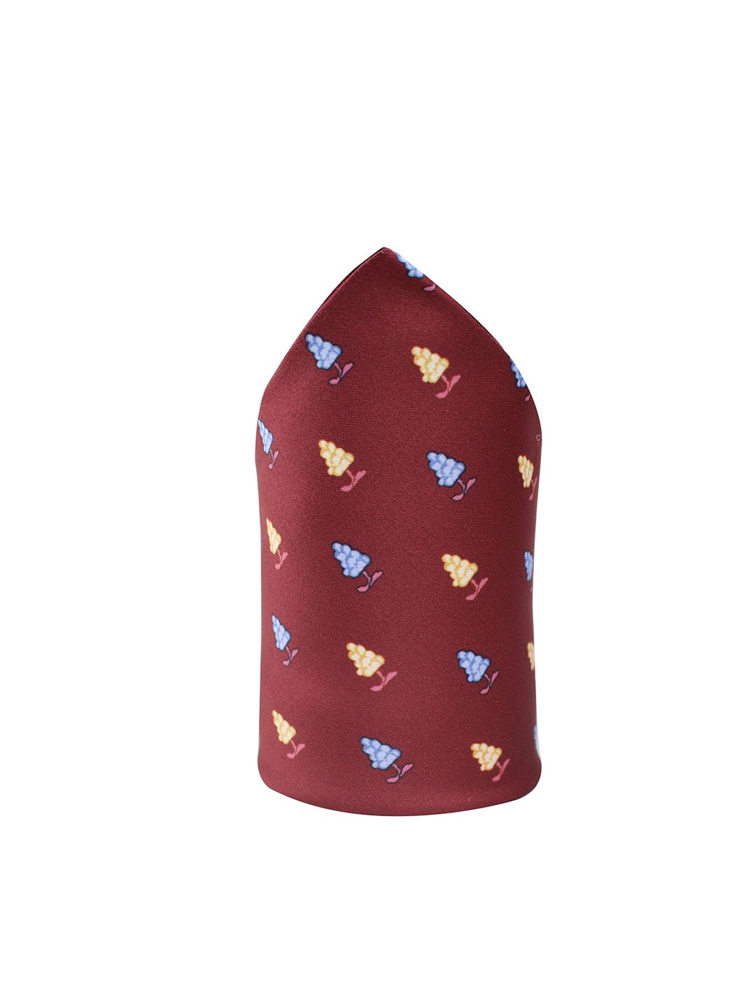 Buy this elegant maroon Pocket Square with yellow grapes print from Peluche to refine your outfit. The grape design made of yellow on maroon shade makes it look more attractive. Pair it with a matching ethnic suit to up your style quotient. The border is thick navy blue in color and the lining is Hand Rolled to give this accessory a perfect flawless finishing, because we at Peluche, believe in zero compromise in quality. This premium product which is made of 100% pure silk, will be delivered to you in a chic and classy storage pack from Peluche.