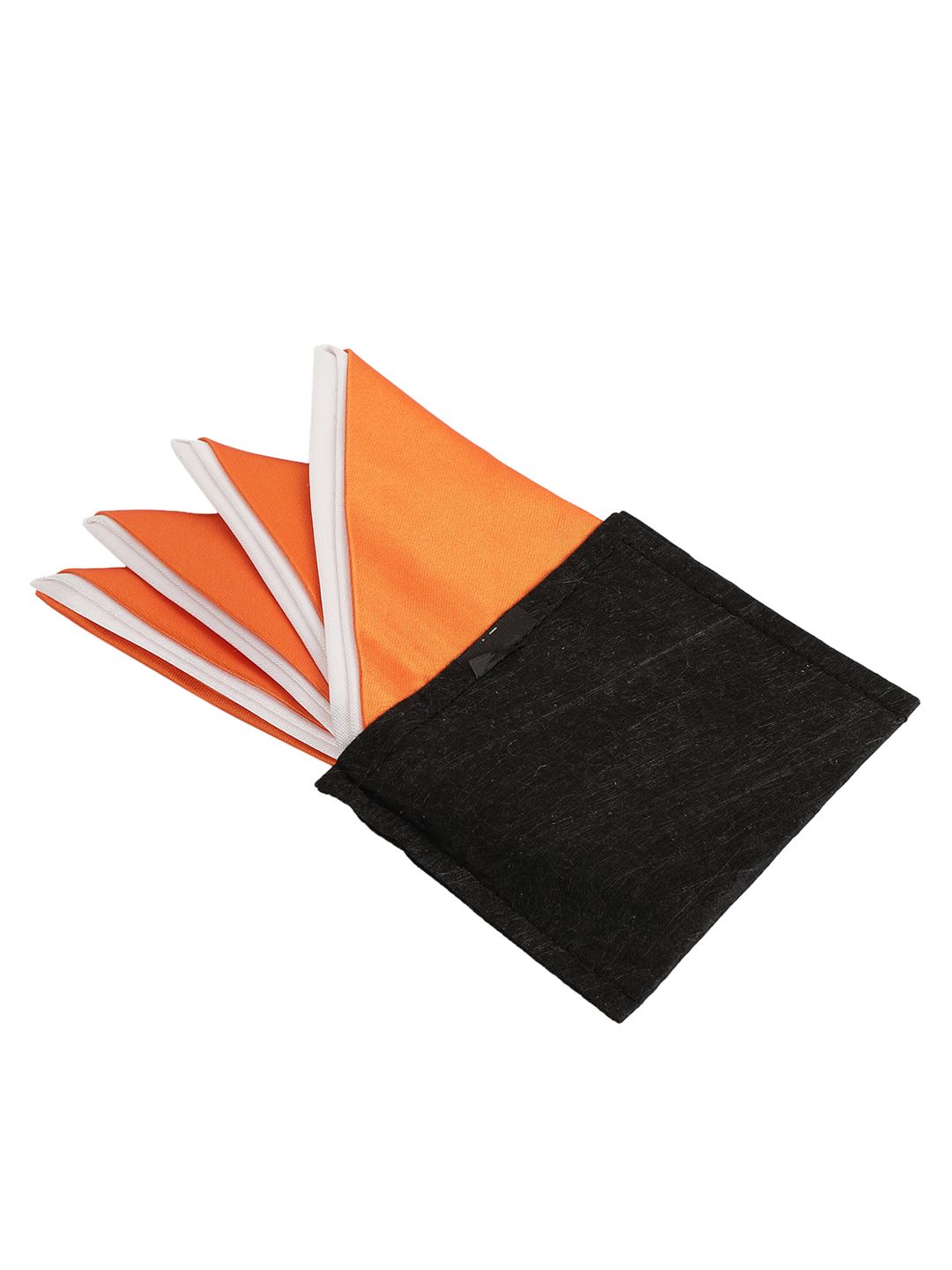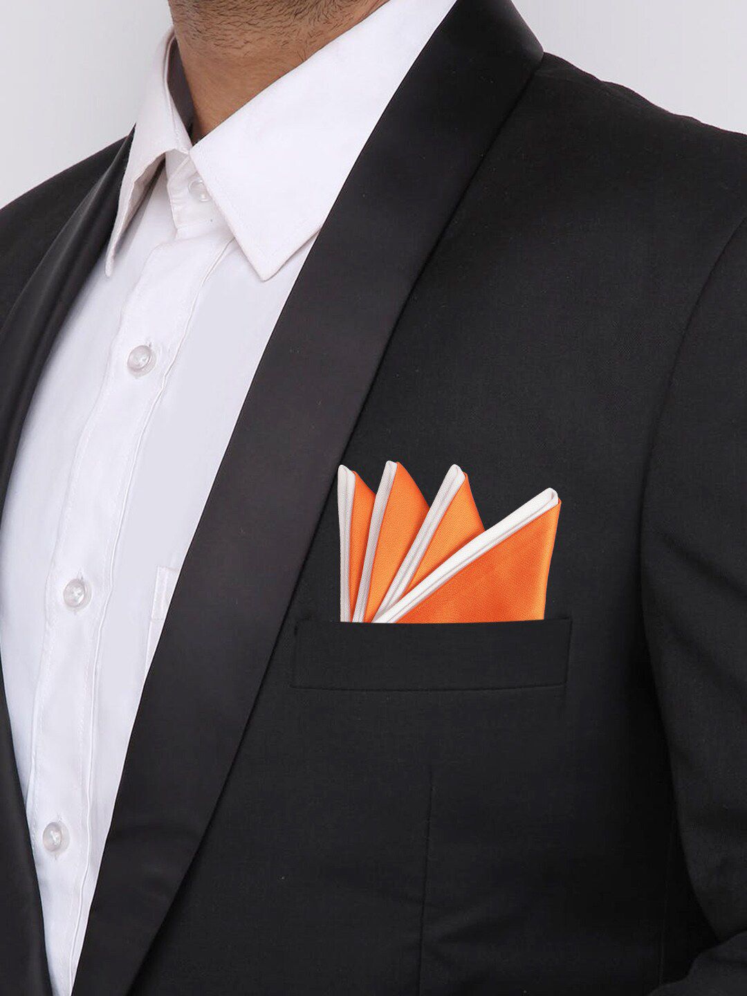 Orange solid pocket square with white borderComes in an Alvaro Castagnino