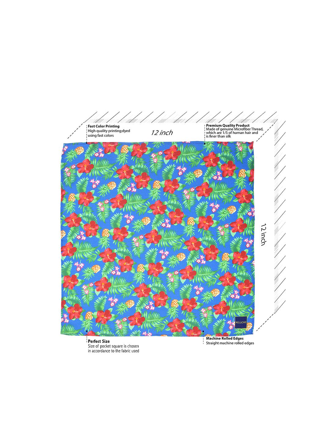 No look is complete without a pocket square. With a rich array of colours, patterns and materials, we have assembled a collection full of options for every personal style and occasion. This elegant blue floral and leafy Print Pocket Square from Peluche to refine your outfit. The red and green design will attract attention without making noise. Pair it with a matching suit to up your style quotient. The lining is Hand Rolled to give this accessory a perfect flawless finishing, because we at Peluche, believe in zero compromise in quality. This premium product will be delivered to you in a chic and classy storage pack from Peluche.