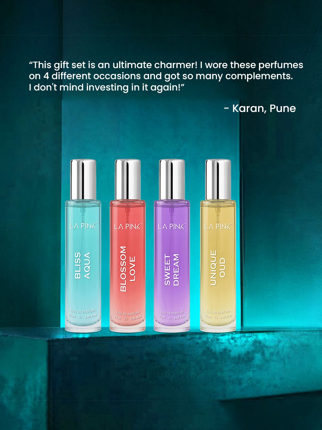 Set Of 4 Bliss Aqua Blossom Love Sweet Dream Unique Oud Eau De Parfum - 25 ml Each