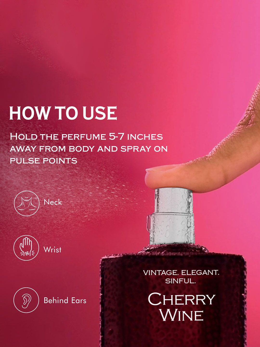Cherry Wine Eau de parfum - 100 mlCautionKeep away from direct sunlightKeep out of reach of childrenDo not consume.For external use only.Flammable.Patch test recommended.