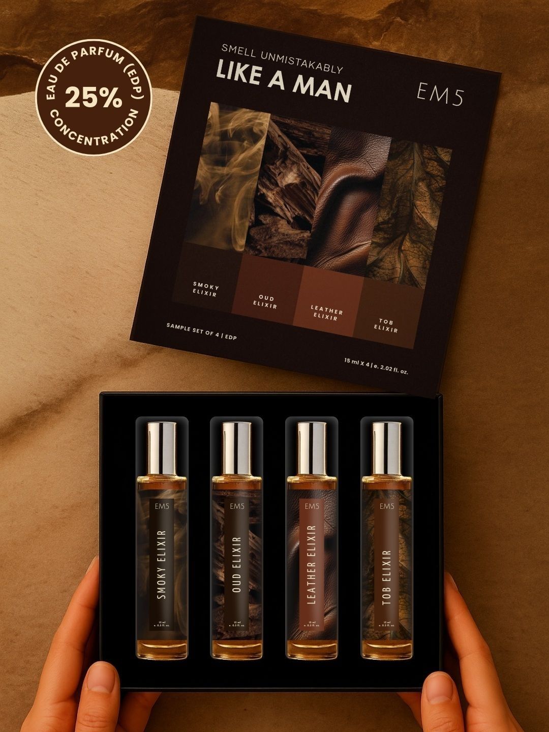 Array ( [style] => Array ( [id] => 38300631 [name] => EM5 Men Set Of 4 Smoky Elixir Oud Elixir Leather Elixir & Tob Elixir EDP - 15 ml Each [mrp] => 999 [manufacturer] => Stem Formulation Pvt. Ltd., 2/2 Nayta Mundla, Nemawar road, Indore M.P. 452020 [countryOfOrigin] => India [colours] => [baseColour] => Transparent [brand] => Array ( [uidx] => [name] => EM5 [image] => [bio] => [brandAttributes] => ) [brandOrderDetails] => [media] => Array ( [videos] => Array ( ) [albums] => Array ( [0] => Array ( [name] => default [images] => Array ( [0] => Array ( [src] => http://assets.myntassets.com/h_($height),q_($qualityPercentage),w_($width)/v1/assets/images/2025/NOVEMBER/29/DqM110EA_b6d4e1ac02224da9894149878b0d8d63.jpg [secureSrc] => https://assets.myntassets.com/h_($height),q_($qualityPercentage),w_($width)/v1/assets/images/2025/NOVEMBER/29/DqM110EA_b6d4e1ac02224da9894149878b0d8d63.jpg [host] => [imageURL] => http://assets.myntassets.com/assets/images/2025/NOVEMBER/29/DqM110EA_b6d4e1ac02224da9894149878b0d8d63.jpg [annotation] => Array ( ) ) [1] => Array ( [src] => http://assets.myntassets.com/h_($height),q_($qualityPercentage),w_($width)/v1/assets/images/2025/NOVEMBER/29/b1CMpJ1d_f58140a8c1764c318bb58b01ce43ea0f.jpg [secureSrc] => https://assets.myntassets.com/h_($height),q_($qualityPercentage),w_($width)/v1/assets/images/2025/NOVEMBER/29/b1CMpJ1d_f58140a8c1764c318bb58b01ce43ea0f.jpg [host] => [imageURL] => http://assets.myntassets.com/assets/images/2025/NOVEMBER/29/b1CMpJ1d_f58140a8c1764c318bb58b01ce43ea0f.jpg [annotation] => Array ( ) ) [2] => Array ( [src] => http://assets.myntassets.com/h_($height),q_($qualityPercentage),w_($width)/v1/assets/images/2025/NOVEMBER/29/khUVFeU7_82601b4b2f084c3999e609c209a6c893.jpg [secureSrc] => https://assets.myntassets.com/h_($height),q_($qualityPercentage),w_($width)/v1/assets/images/2025/NOVEMBER/29/khUVFeU7_82601b4b2f084c3999e609c209a6c893.jpg [host] => [imageURL] => http://assets.myntassets.com/assets/images/2025/NOVEMBER/29/khUVFeU7_82601b4b2f084c3999e609c209a6c893.jpg [annotation] => Array ( ) ) [3] => Array ( [src] => http://assets.myntassets.com/h_($height),q_($qualityPercentage),w_($width)/v1/assets/images/2025/NOVEMBER/29/XL92cBAZ_4fd178bf62d740a9b2f058fb82cfdeea.jpg [secureSrc] => https://assets.myntassets.com/h_($height),q_($qualityPercentage),w_($width)/v1/assets/images/2025/NOVEMBER/29/XL92cBAZ_4fd178bf62d740a9b2f058fb82cfdeea.jpg [host] => [imageURL] => http://assets.myntassets.com/assets/images/2025/NOVEMBER/29/XL92cBAZ_4fd178bf62d740a9b2f058fb82cfdeea.jpg [annotation] => Array ( ) ) [4] => Array ( [src] => http://assets.myntassets.com/h_($height),q_($qualityPercentage),w_($width)/v1/assets/images/2025/NOVEMBER/29/IRq0eAlu_3c1febca5ae2407a8a2549b6224252bc.jpg [secureSrc] => https://assets.myntassets.com/h_($height),q_($qualityPercentage),w_($width)/v1/assets/images/2025/NOVEMBER/29/IRq0eAlu_3c1febca5ae2407a8a2549b6224252bc.jpg [host] => [imageURL] => http://assets.myntassets.com/assets/images/2025/NOVEMBER/29/IRq0eAlu_3c1febca5ae2407a8a2549b6224252bc.jpg [annotation] => Array ( ) ) [5] => Array ( [src] => http://assets.myntassets.com/h_($height),q_($qualityPercentage),w_($width)/v1/assets/images/2025/NOVEMBER/29/CbmgbBIH_ee68ad3b4255480aba0260c9281e8db5.jpg [secureSrc] => https://assets.myntassets.com/h_($height),q_($qualityPercentage),w_($width)/v1/assets/images/2025/NOVEMBER/29/CbmgbBIH_ee68ad3b4255480aba0260c9281e8db5.jpg [host] => [imageURL] => http://assets.myntassets.com/assets/images/2025/NOVEMBER/29/CbmgbBIH_ee68ad3b4255480aba0260c9281e8db5.jpg [annotation] => Array ( ) ) ) ) [1] => Array ( [name] => animatedImage [images] => Array ( ) ) ) ) [sbpEnabled] => [sizechart] => Array ( [sizeChartUrl] => [sizeRepresentationUrl] => ) [sizeRecoLazy] => Array ( [actionType] => lazy [action] => /product/38300631/size/recommendation [sizeProfileAction] => /user/size-profiles?gender=male&articleType=Perfume ) [analytics] => Array ( [articleType] => Perfume [subCategory] => Fragrance [masterCategory] => Personal Care [gender] => Men [brand] => EM5 [colourHexCode] => ) [crossLinks] => Array ( [0] => Array ( [title] => More Perfume by EM5 [url] => perfume?f=Brand:EM5::Gender:men&luxuryType=nonluxury ) [1] => Array ( [title] => More Transparent Perfume [url] => perfume?f=Color:Transparent_FFFFFF::Gender:men&luxuryType=nonluxury ) [2] => Array ( [title] => More Perfume [url] => perfume?f=Gender:men&luxuryType=nonluxury ) ) [relatedStyles] => [disclaimerTitle] => [productDetails] => Array ( [0] => Array ( [type] => [content] => [title] => Product Details [description] => Men Set Of 4 Smoky Elixir Oud Elixir Leather Elixir & Tob Elixir EDP - 15 ml EachDisclaimer: The Seller is exclusively responsible for the quality, safety, ingredients, and any claims made regarding this product. Myntra does not verify these claims and shall not be held liable for any skin reactions, injuries, or dissatisfaction arising from its use. Users are advised to read all labels, warnings, and directions provided by the seller before use. Consult a dermatologist if you have sensitive skin or allergies. ) ) [preOrder] => [sizeChartDisclaimerText] => [tags] => [articleAttributes] => Array ( [Bottom Note] => Amber [Collection Name] => Smoky Elixir Oud Elixir Leather Elixir & Tob Elixir [Fragrance] => Fresh [How-to-Apply] =>