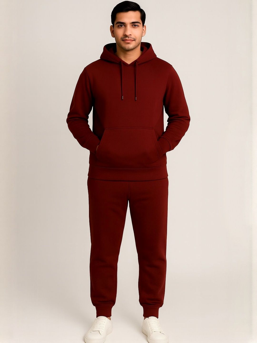 The rich maroon pairs perfectly with white sneakers for a clean athleisure look. Wear the set together, or mix it uphoodie with jeans, joggers with a black or grey teefor effortless everyday outfits.