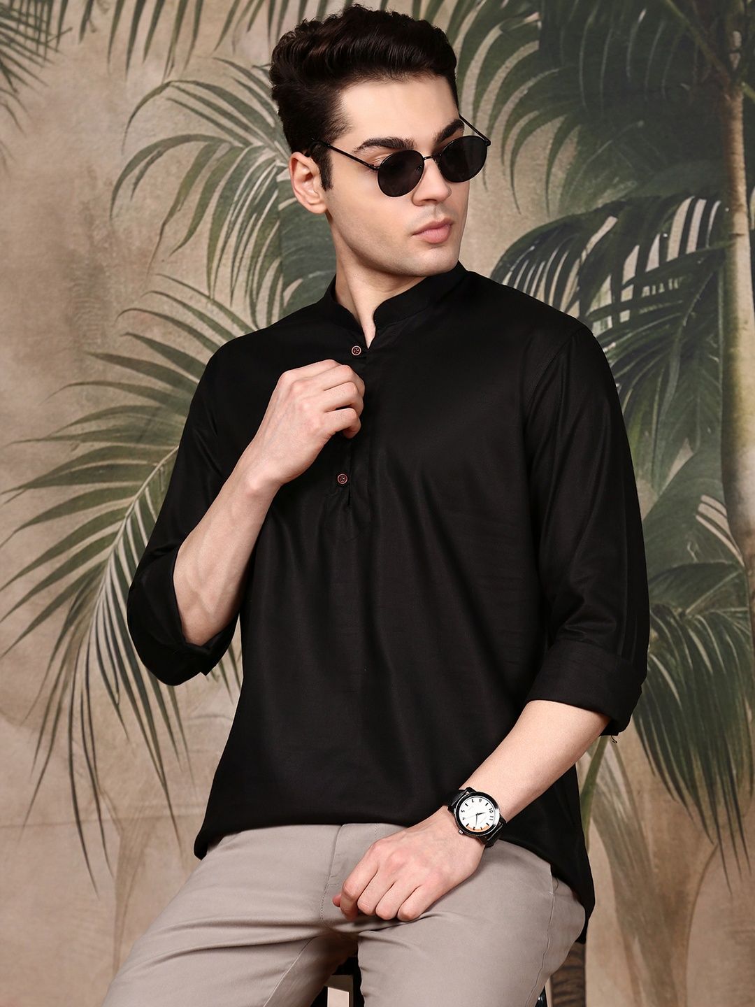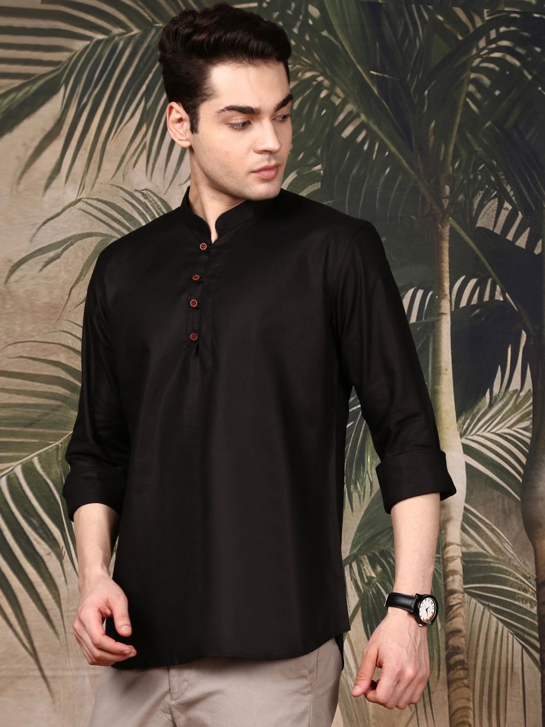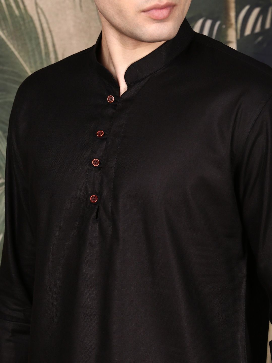 This men's kurta is meticulously crafted from premium fabric, ensuring a perfect blend of comfort and style. The mandarin collar elevates its traditional charm, bringing a touch of regal sophistication to your ethnic ensemble. Featuring a straight hem with side slits, it offers effortless movement while maintaining a sharp, contemporary silhouette.Two side pockets blend the elegance of this classic ethnic wear piece