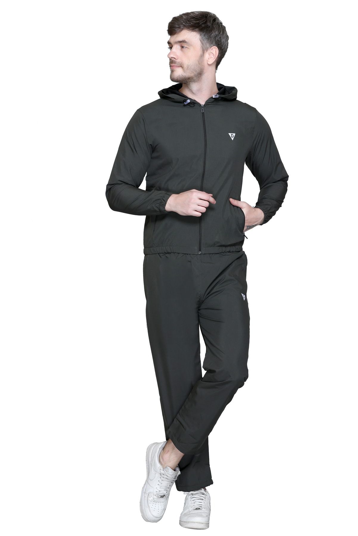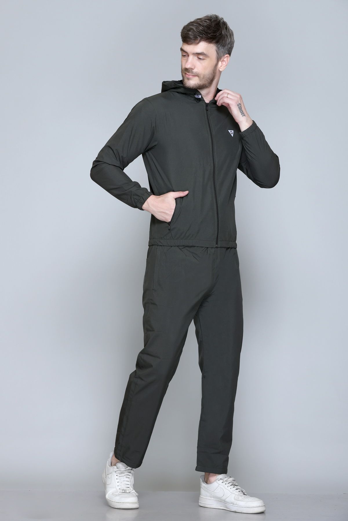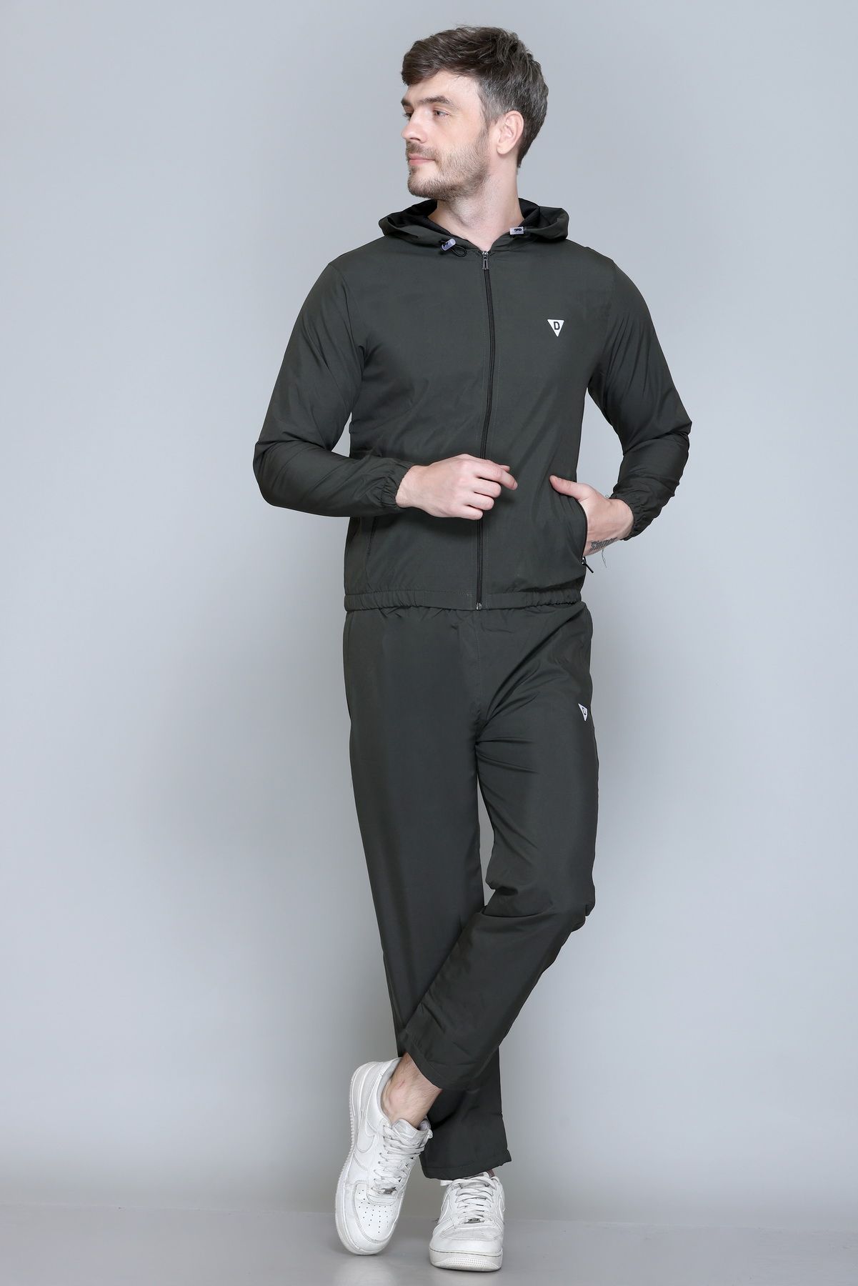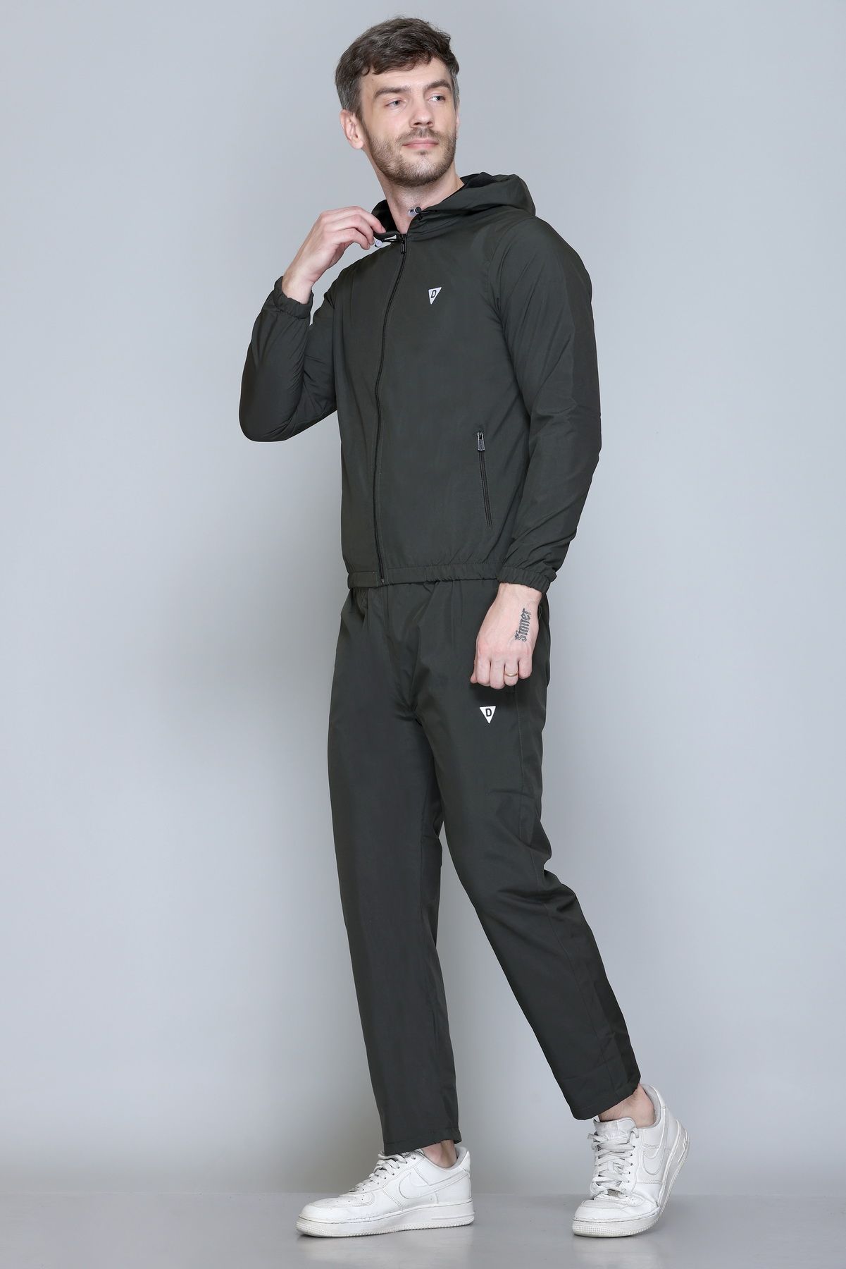 Olive solid tracksuitOlive solid sweatshirt, has a mock collar neck and long sleevesOlive solid mid-rise track pant, has an elasticated waistband with slip-on closure and two pockets