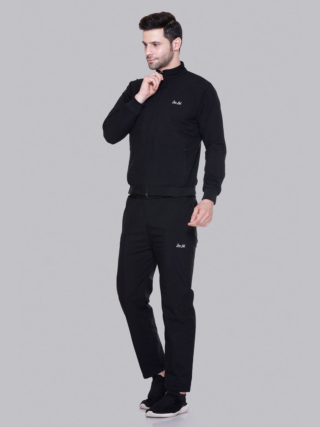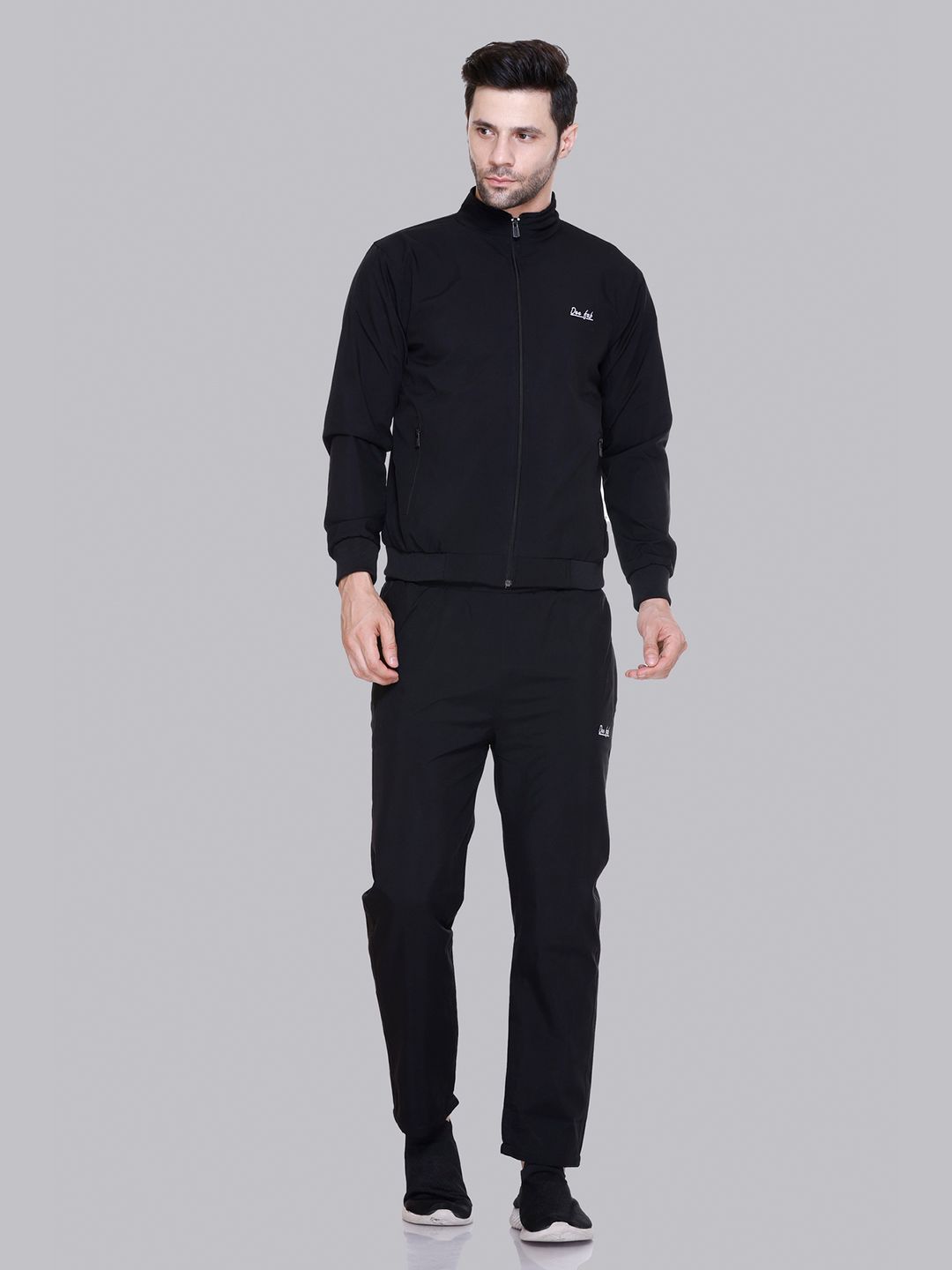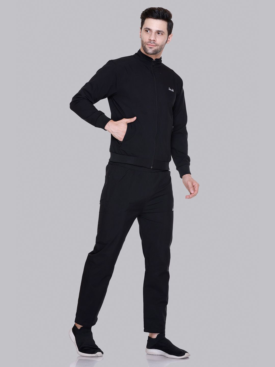 Black solid sweatshirt, has a mock collar neck, long sleeves, and zip closure and ribbed waist hemBlack solid regular-fit mid-rise joggers, has an elasticated waistband with slip-on closure, two pockets