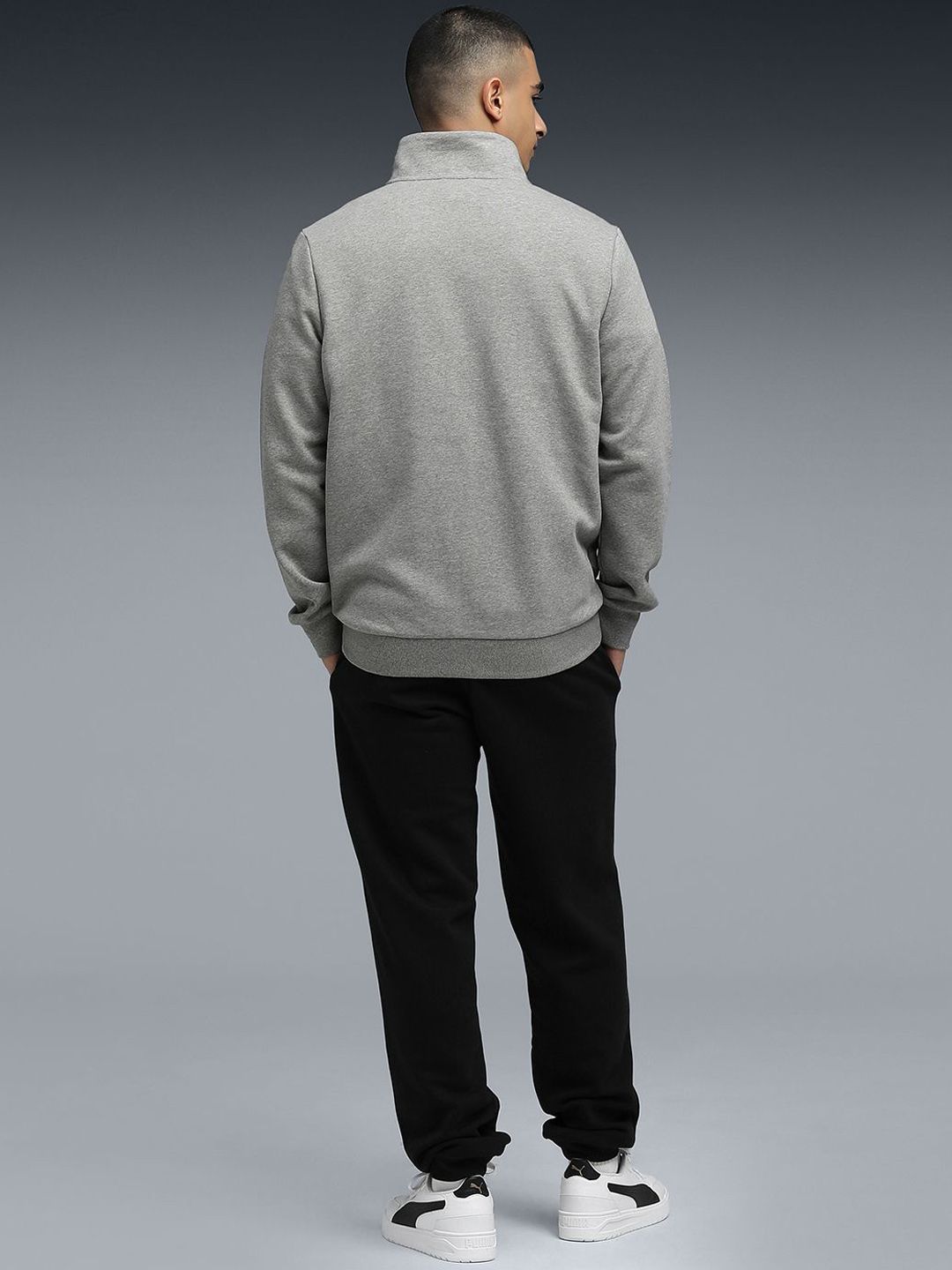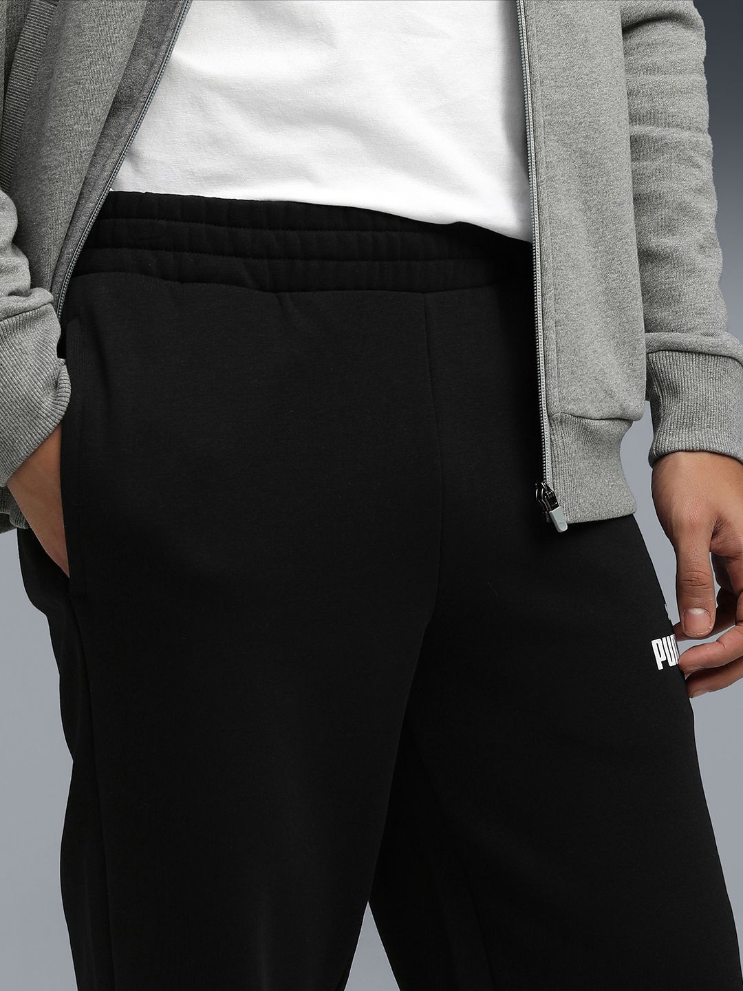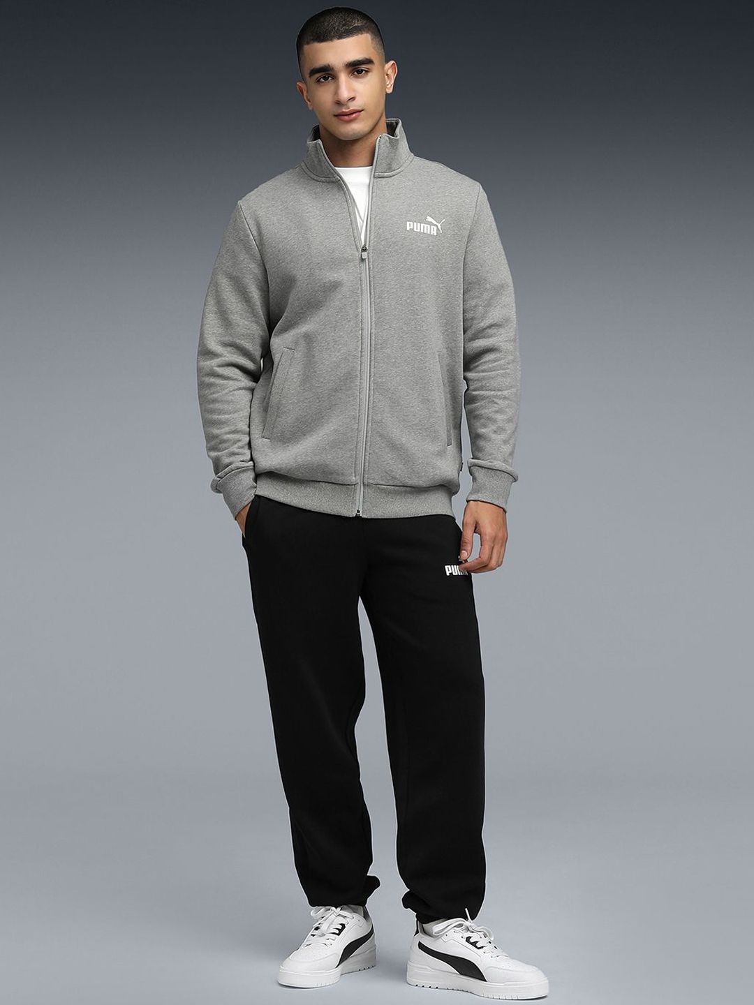 This track suit consists of jacket & track pantsGrey solid with brand logo printed jacket, has a high neck and long sleeves with zip closureBlack solid with brand logo printed track pant, has an elasticated waistband with slip-on closure and 2 pockets