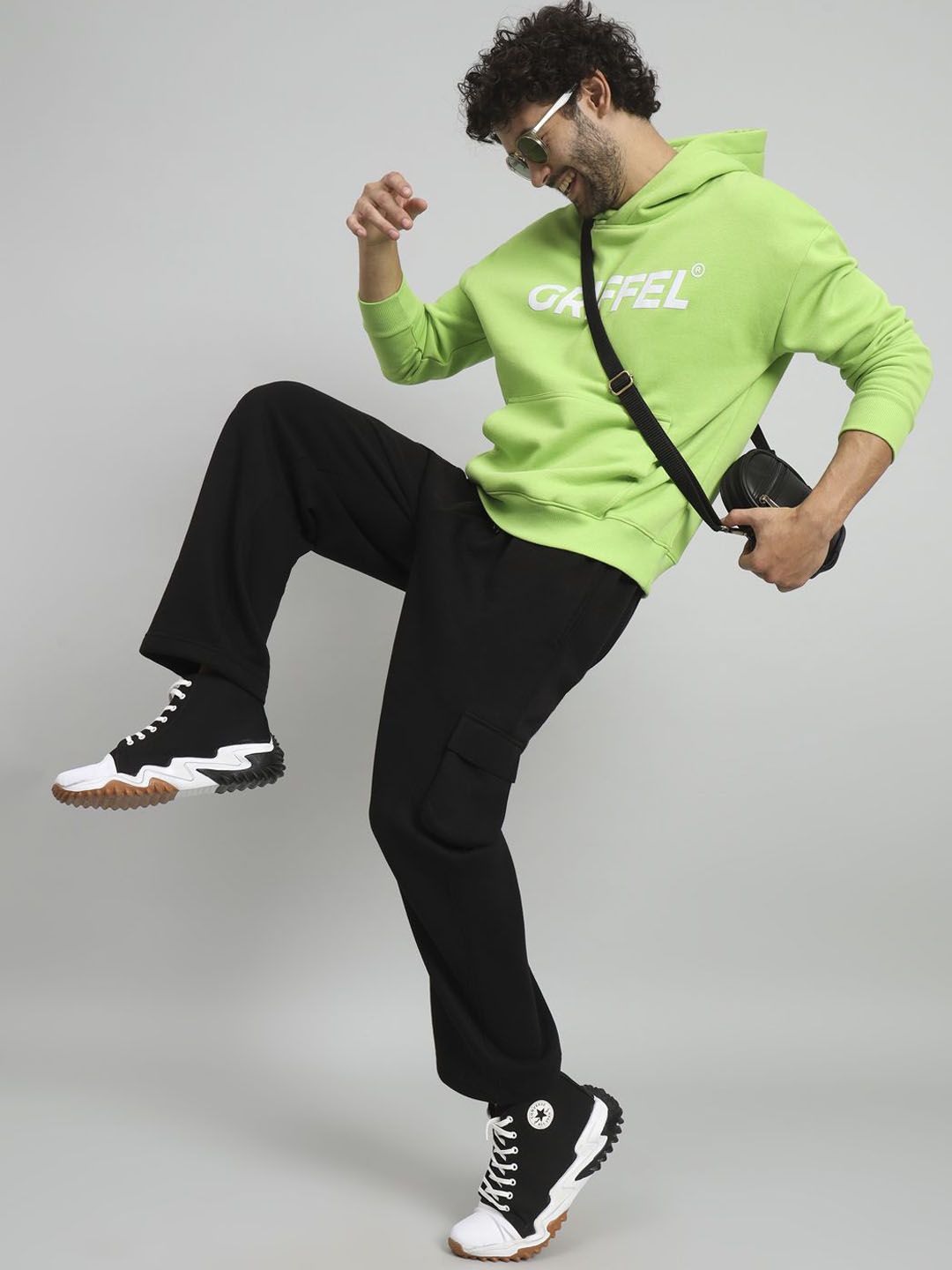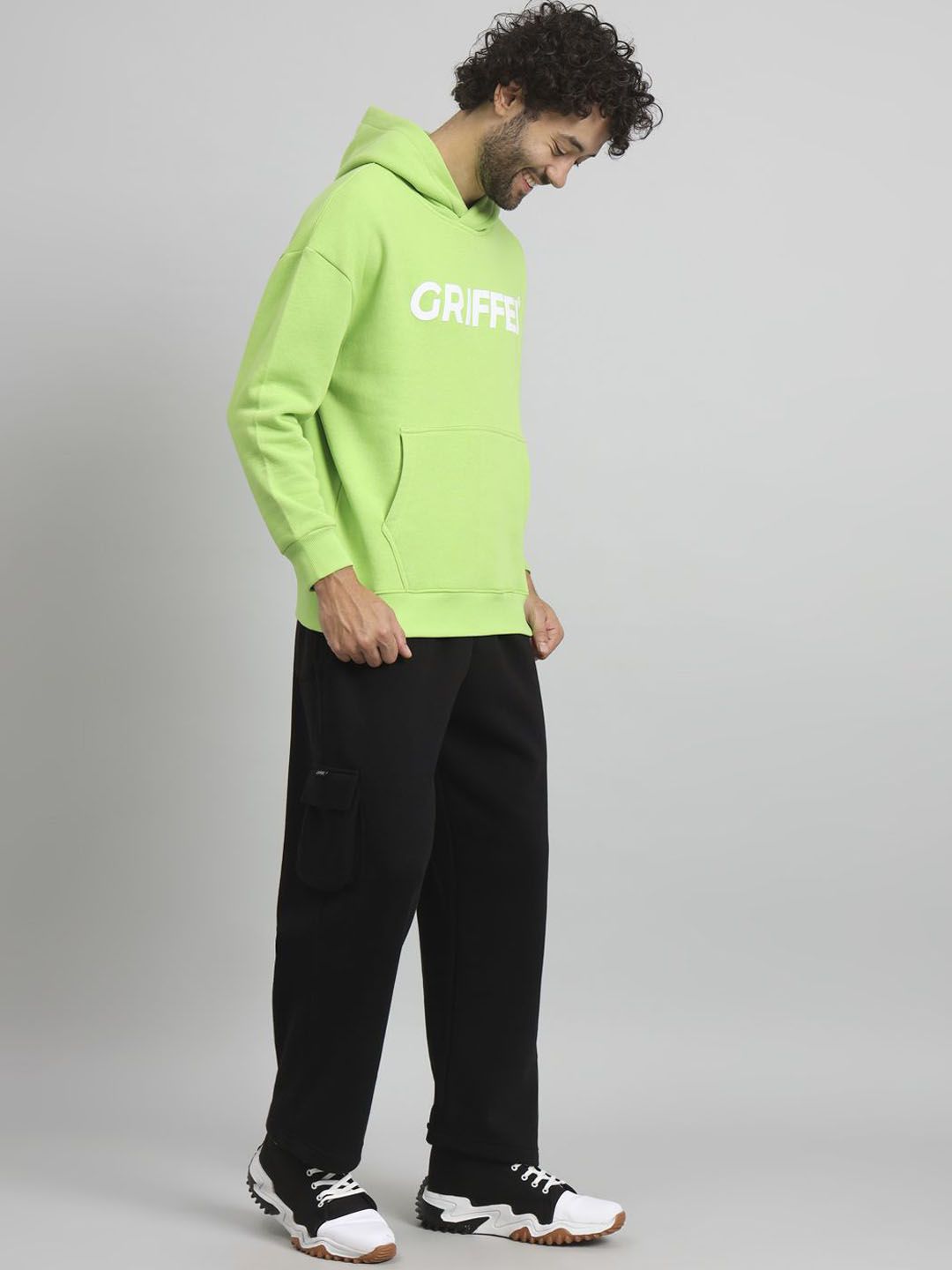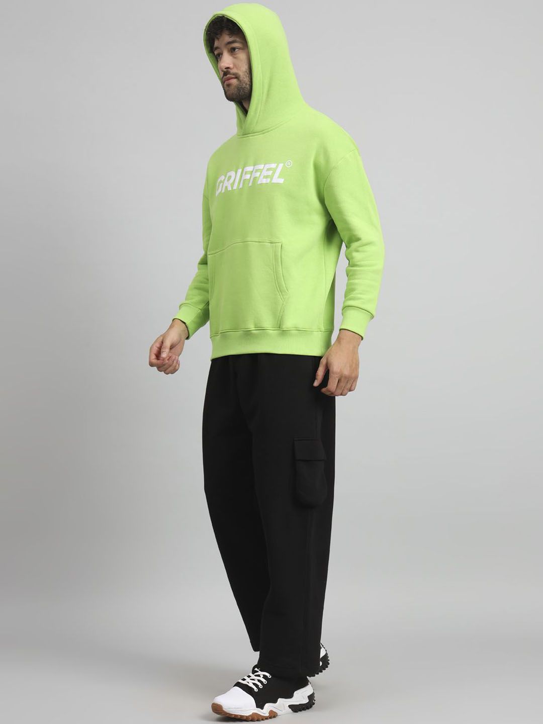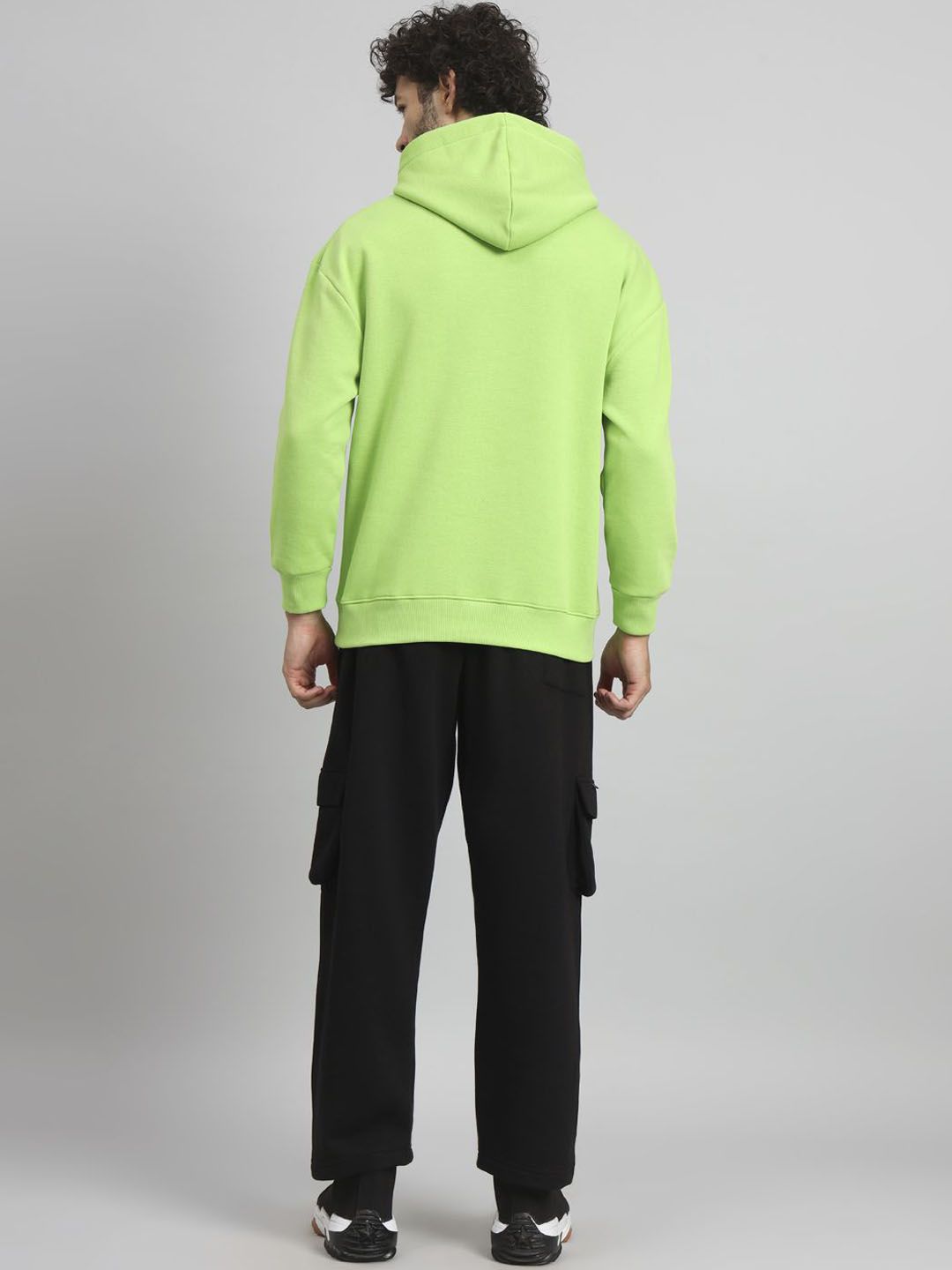 Green tracksuitGreen printed sweatshirt has hood neck, long sleeves slip on closureBlack solid track pant, has an elasticated waistband, with slip-on closure