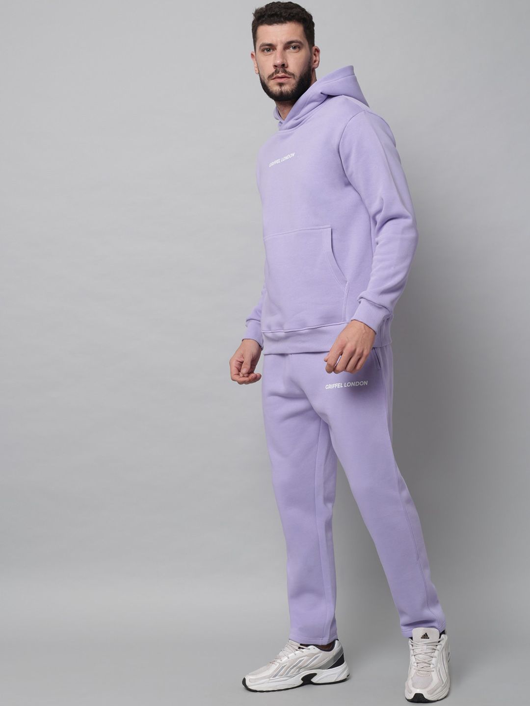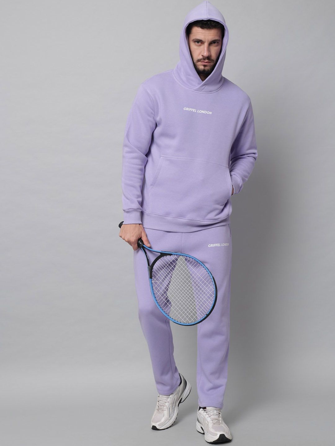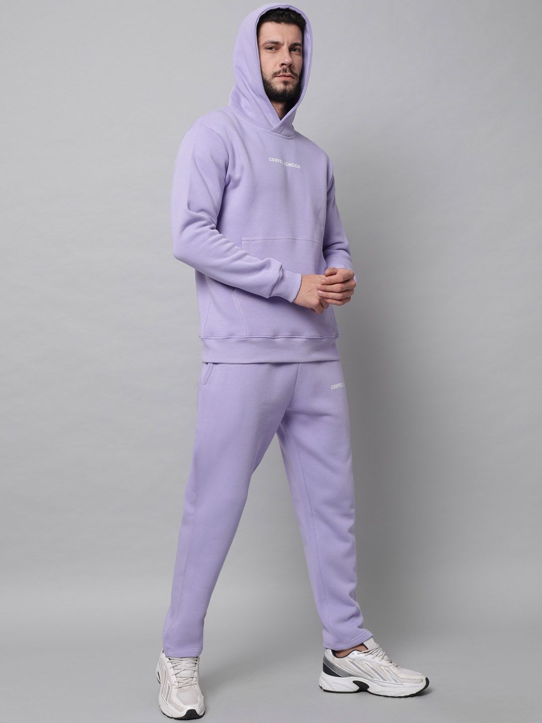 This tracksuit consists of a sweatshirt and a pair of track pantMauve-colored solid sweatshirt, has hooded with slip-on closure, two pockets, long sleevesMauve-colored solid mid-rise track pants, has an elasticated waistband with slip-on closure and two pockets