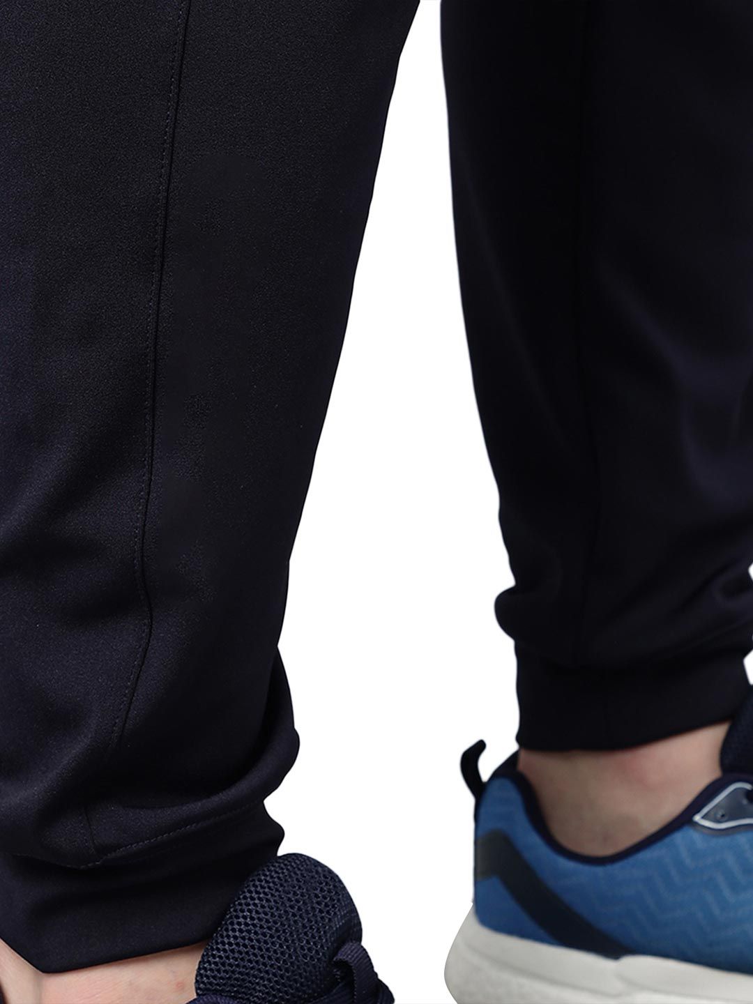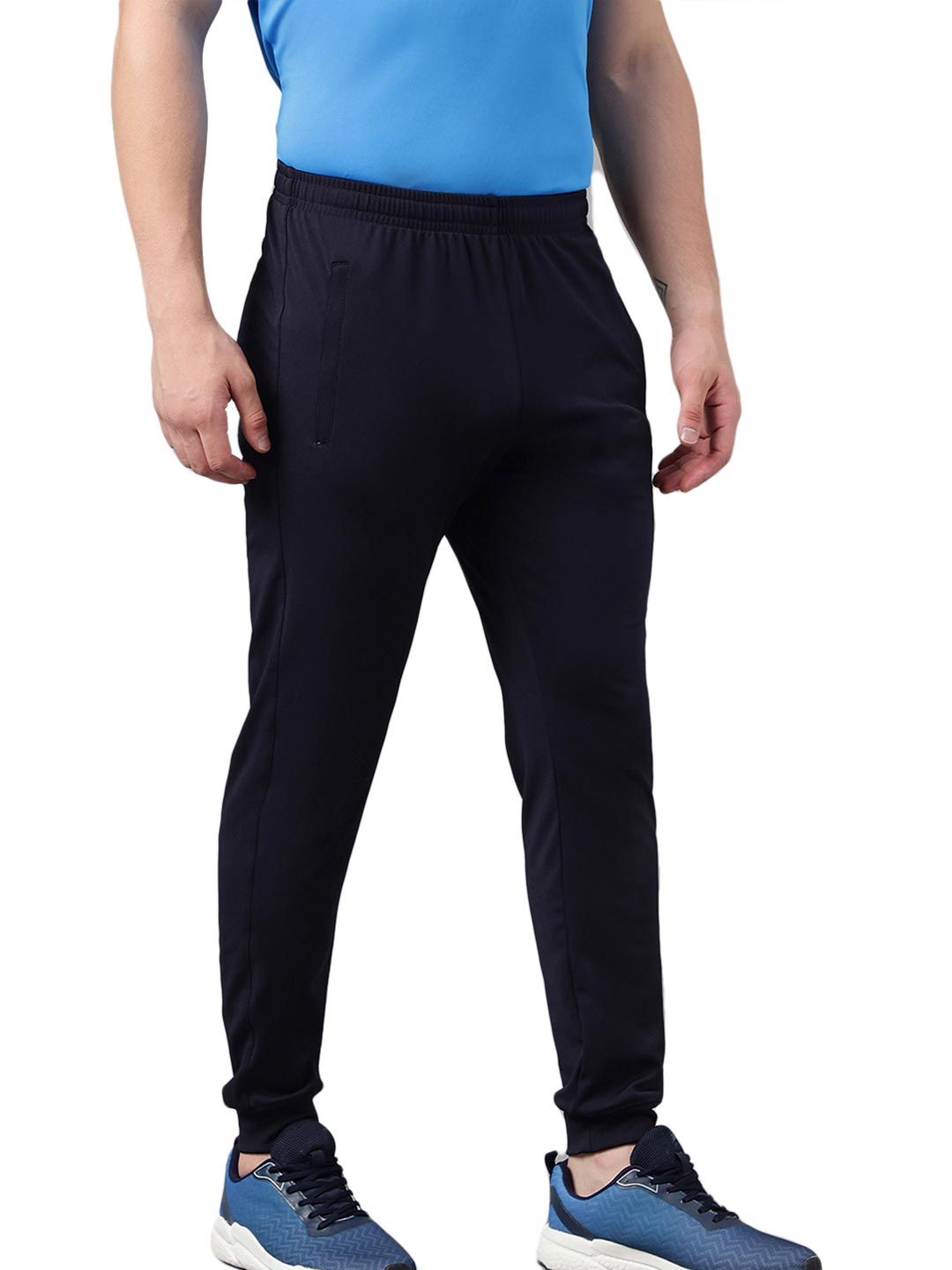Black solid Regular-fit mid-rise joggers, has an elasticated waistband with dslip on closure and two pocket