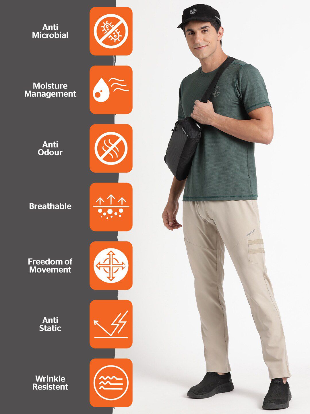 Khaki coloured solid regular-fit mid-rise track pants, has an elasticated waistband with slip-on closure and two side pocketsFeatures: Anti-microbialMoisture managementAnti breathableAnti-wrinkleAnti-staticWrinkle resistanceAnti-Odour