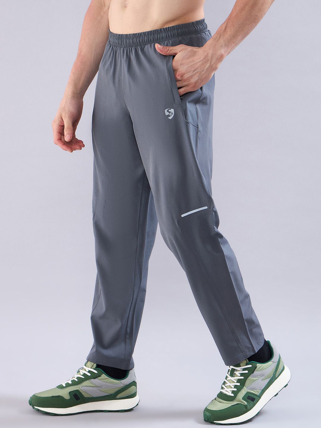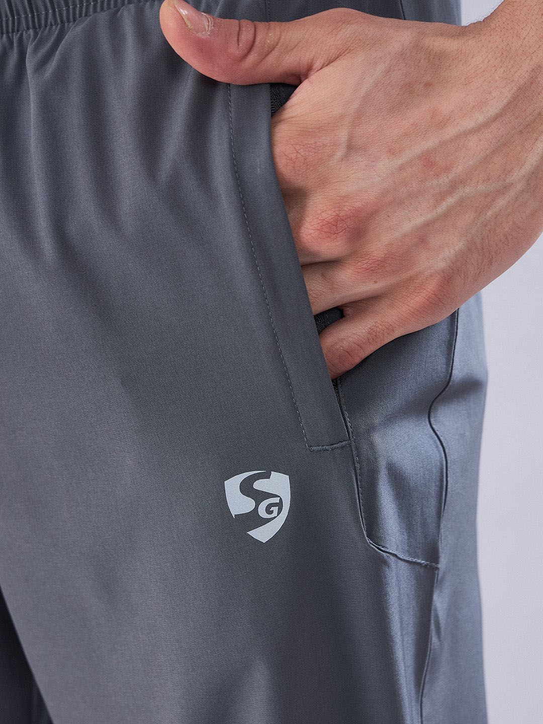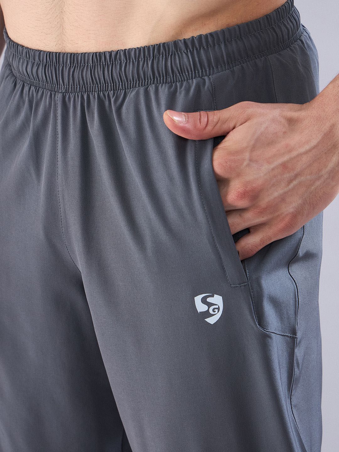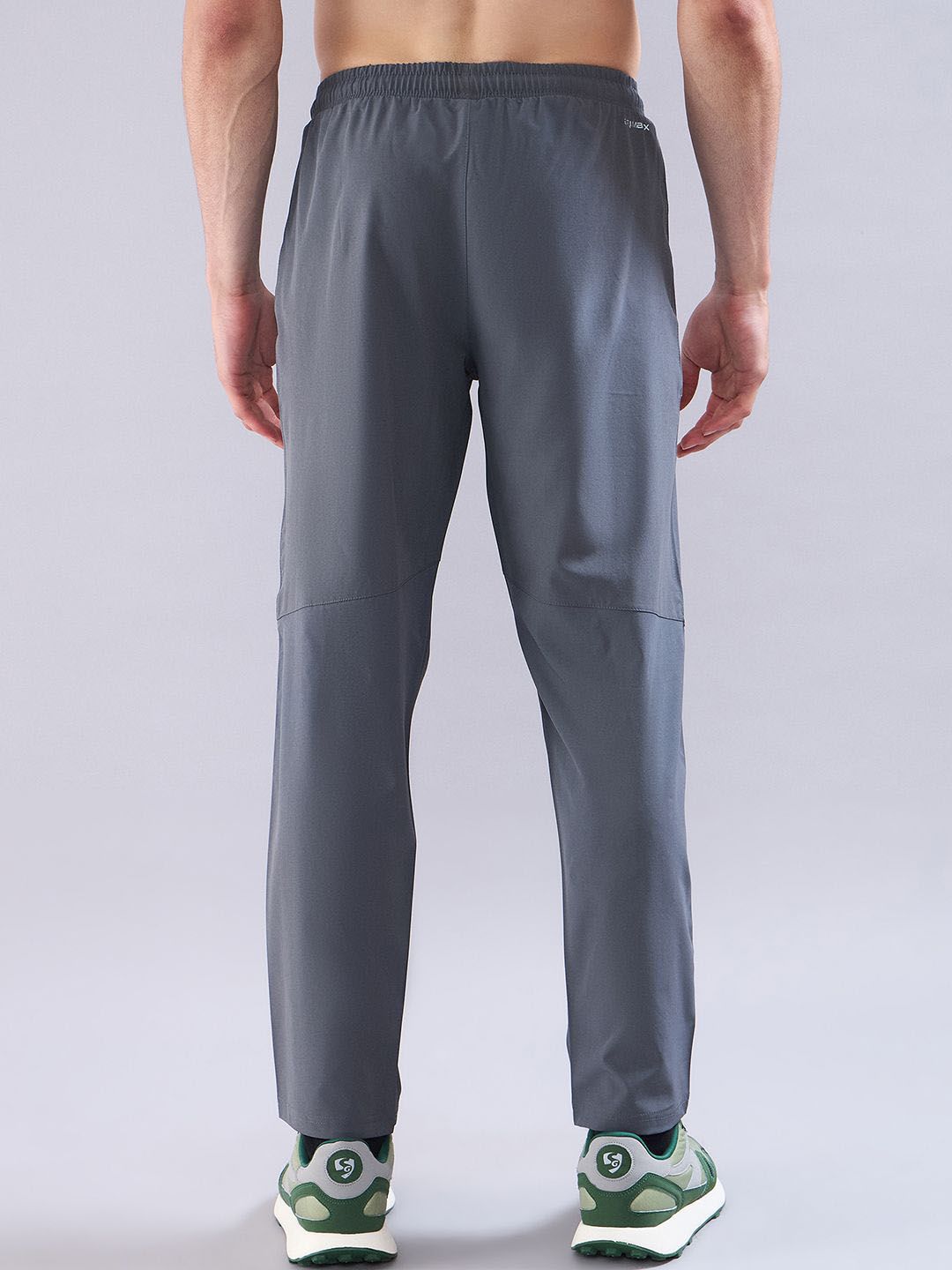 Grey solid regular-fit mid-rise track pants for men with print detail, has an elasticated waistband with slip-on closure and two pockets