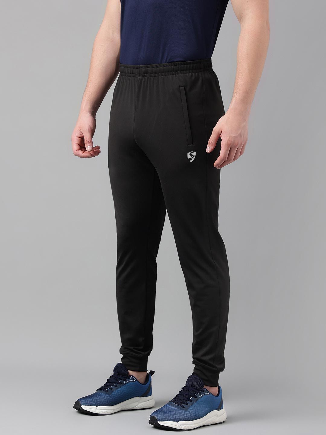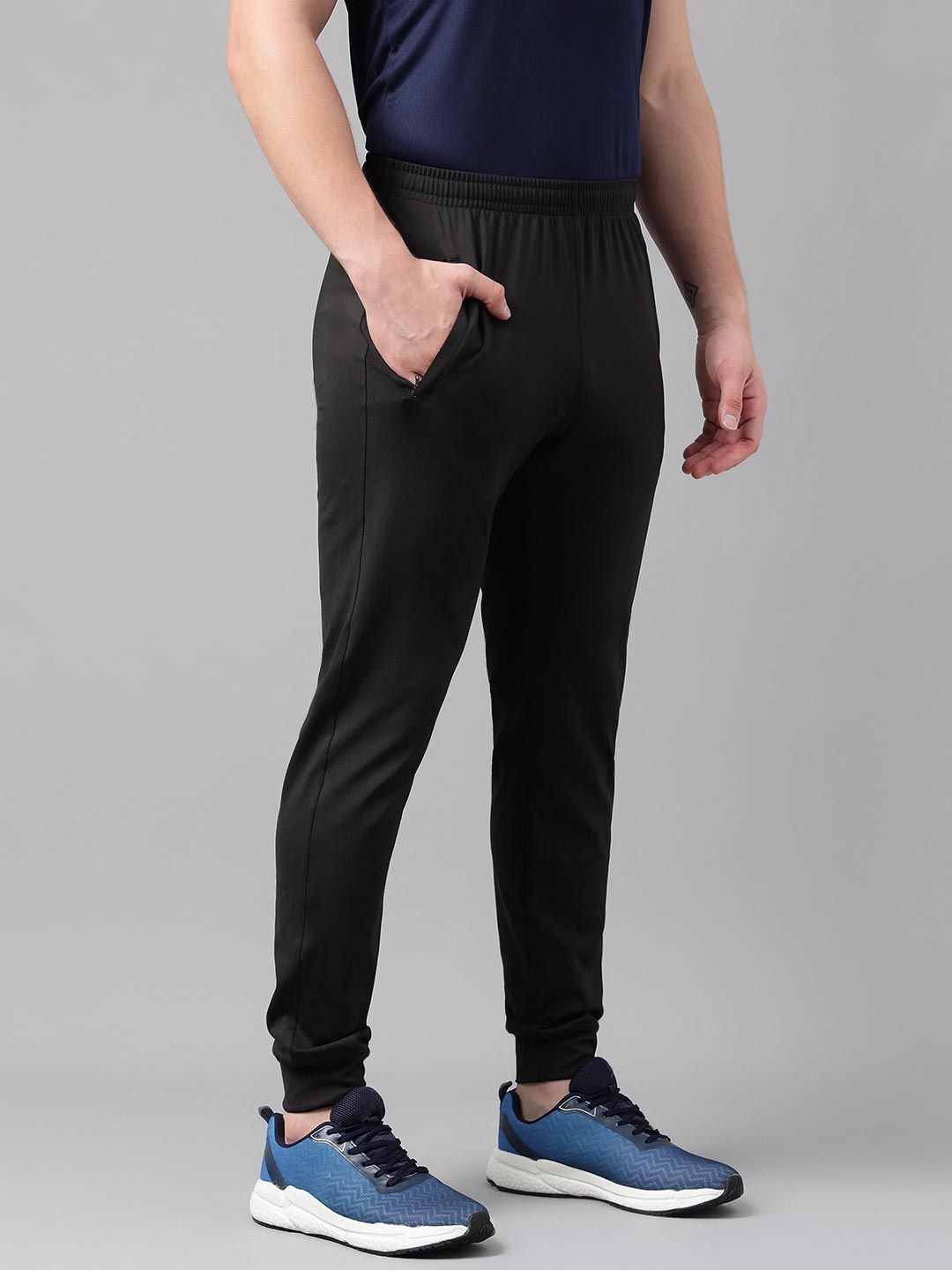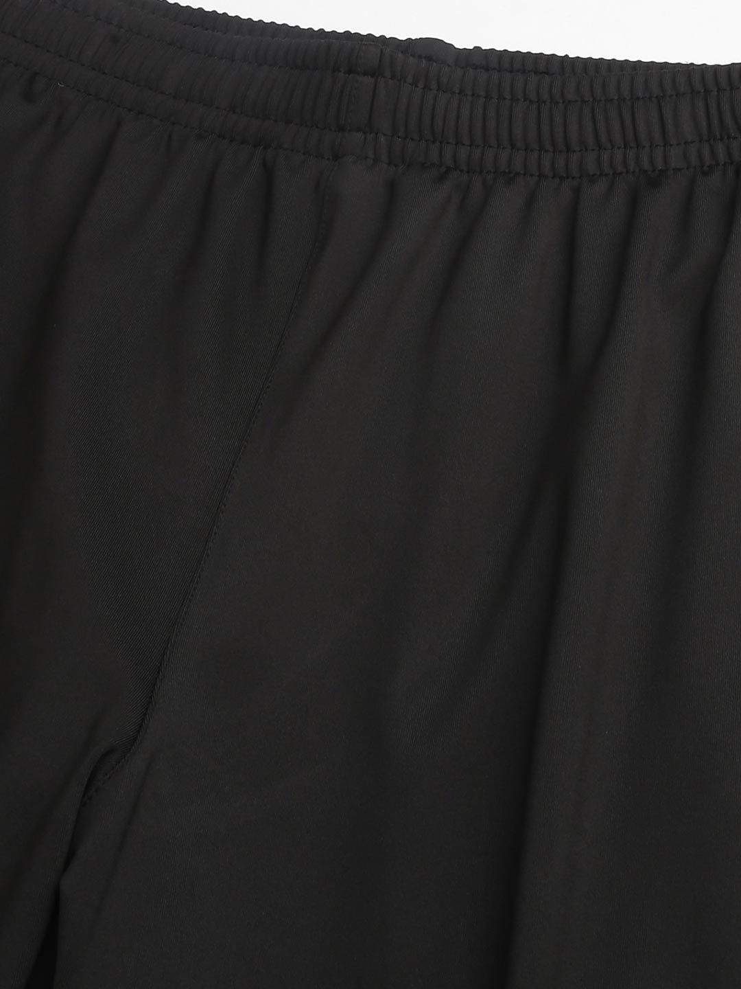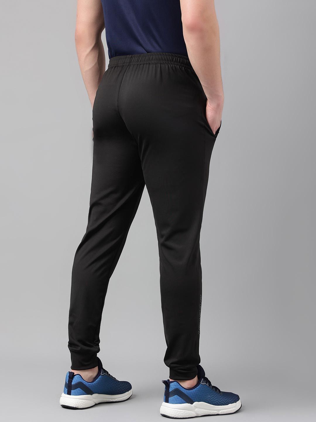 Black solid regular-fit mid-rise Joggers, has an elasticated waistband with slip on closure and side pocket
