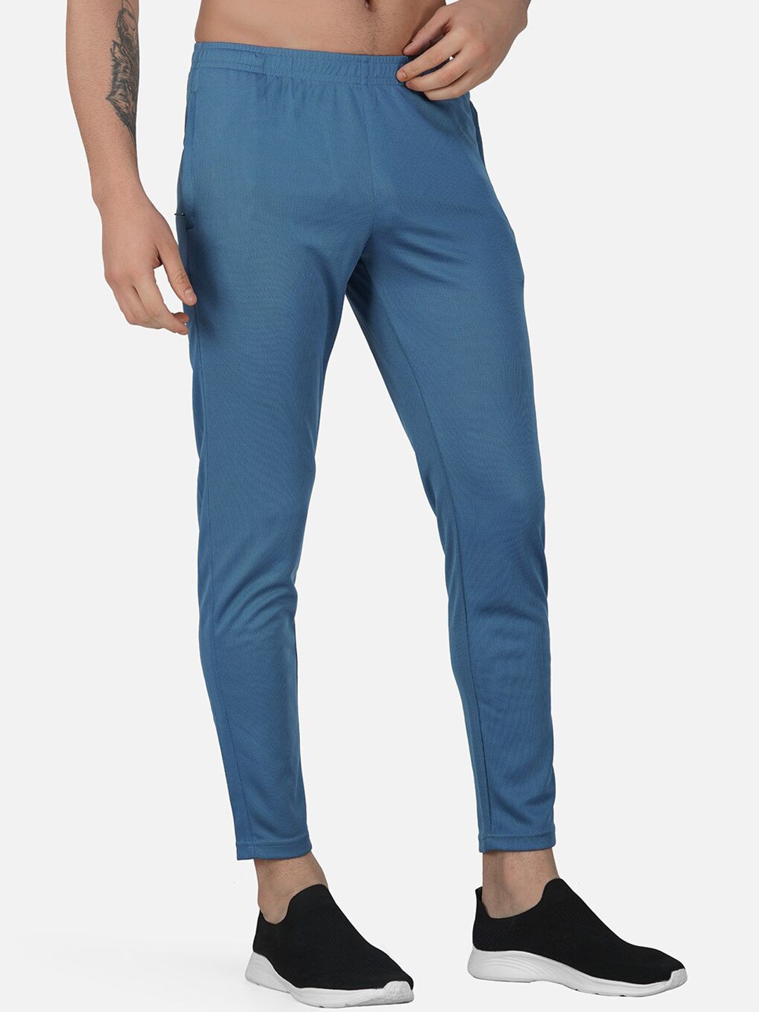 Blue solid mid-rise regular-fit track pants, has an elasticated waistband with a slip-on closure and two pocketsFeatures:Moisture-wickingLightweightStretchable