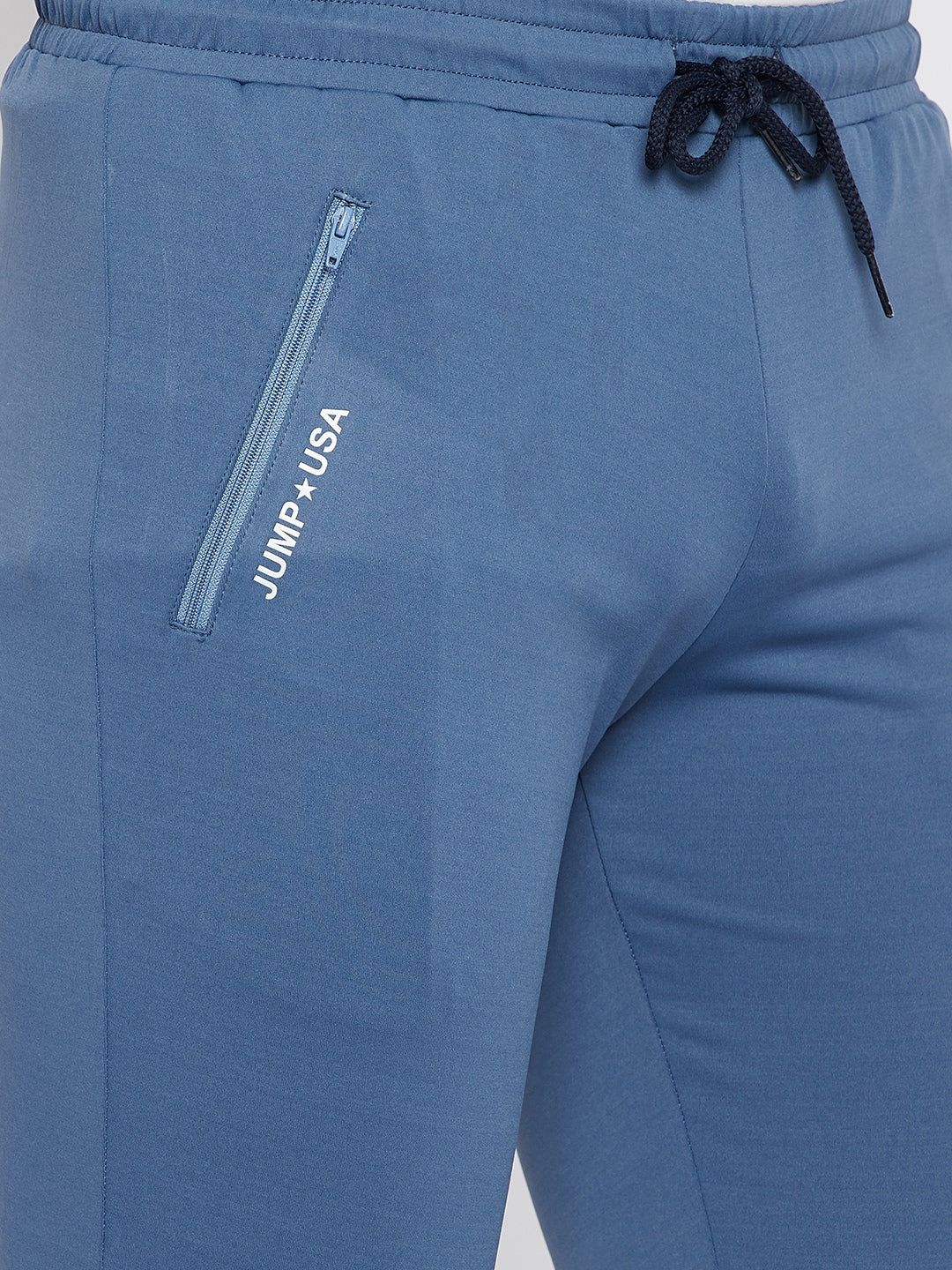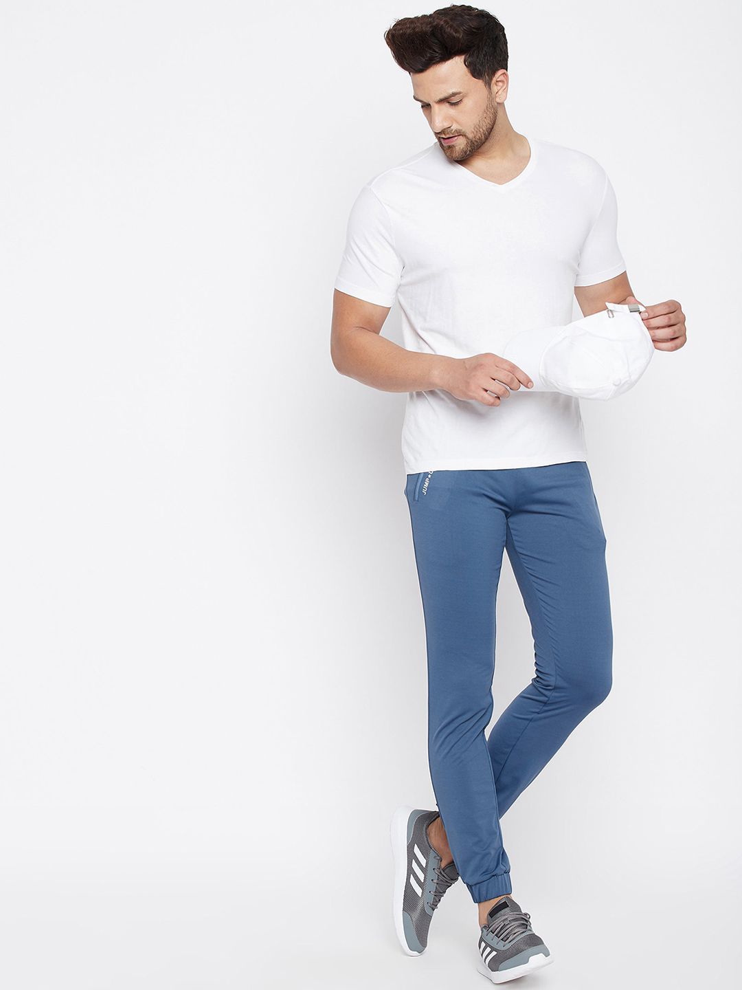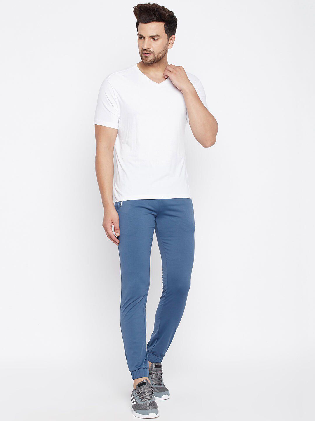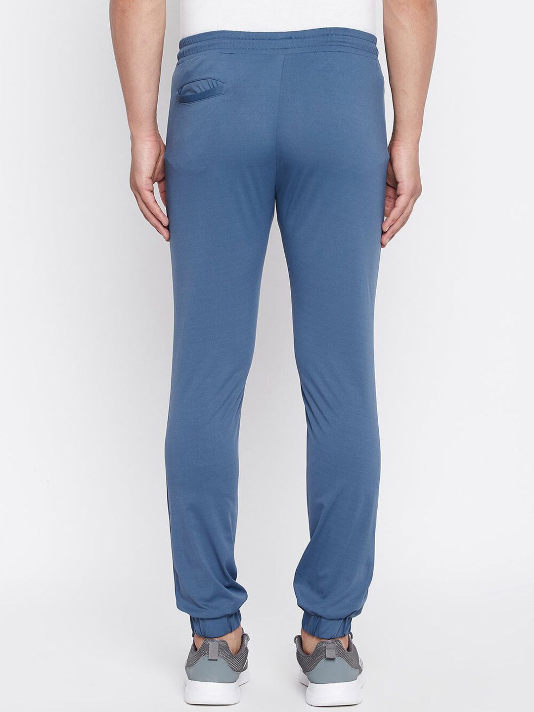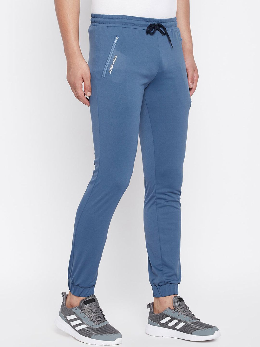 Blue solid slim-fit jogger, has an elasticated waistband with a drawstring closure, 2 side and one back pocket and cuffed hems