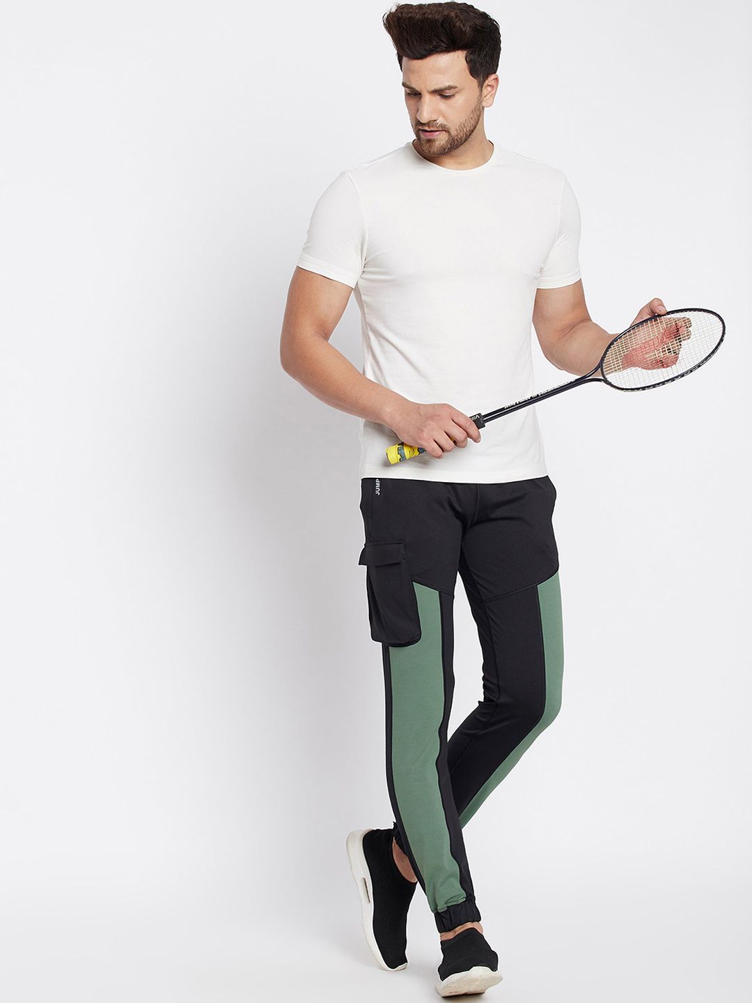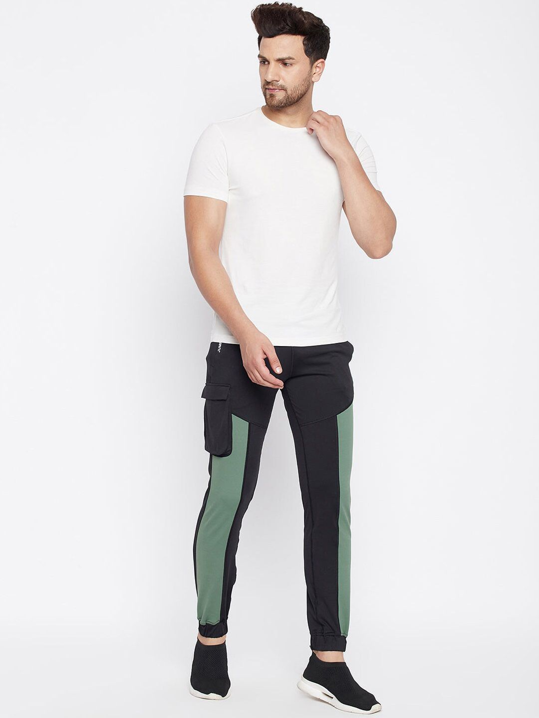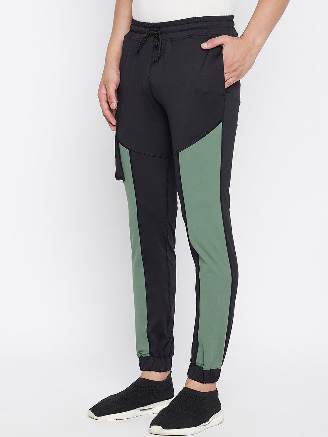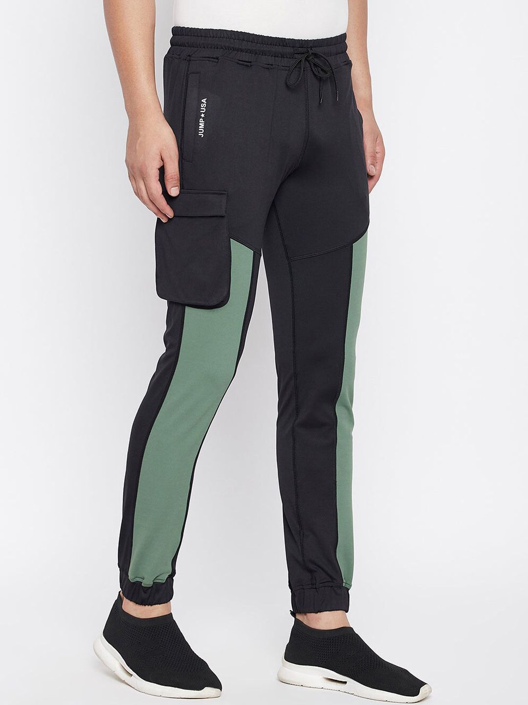 Grey and green colour-blocked Slim-fit mid-rise joggers, has an elasticated waistband with drawstring closure and two pockets
