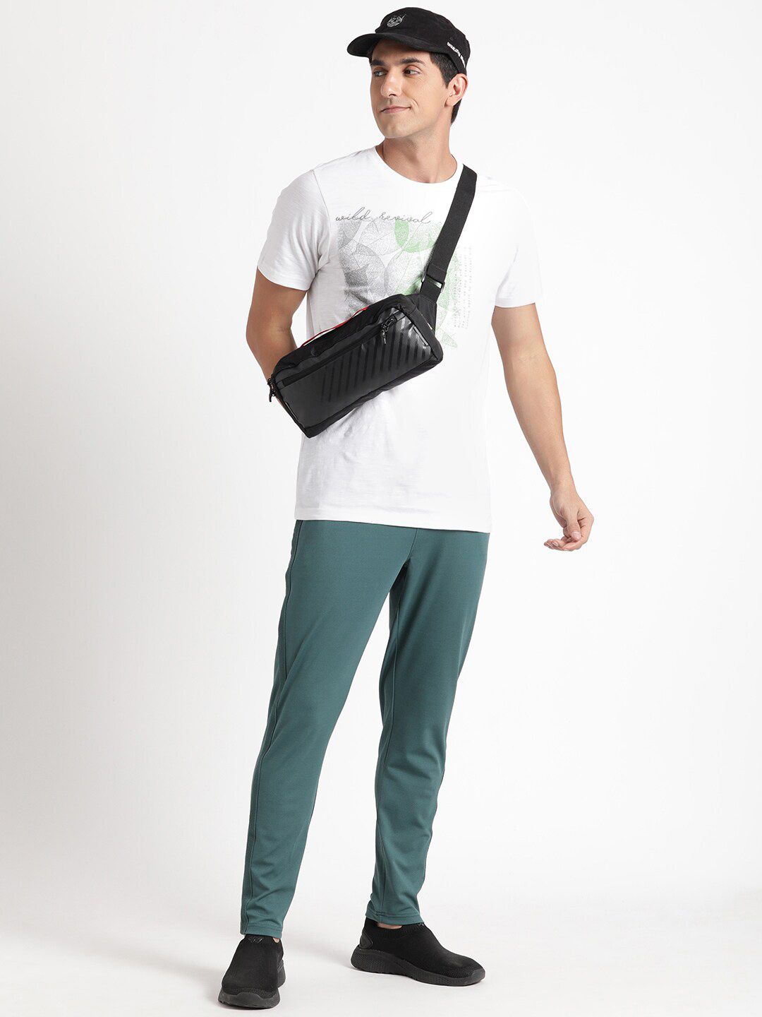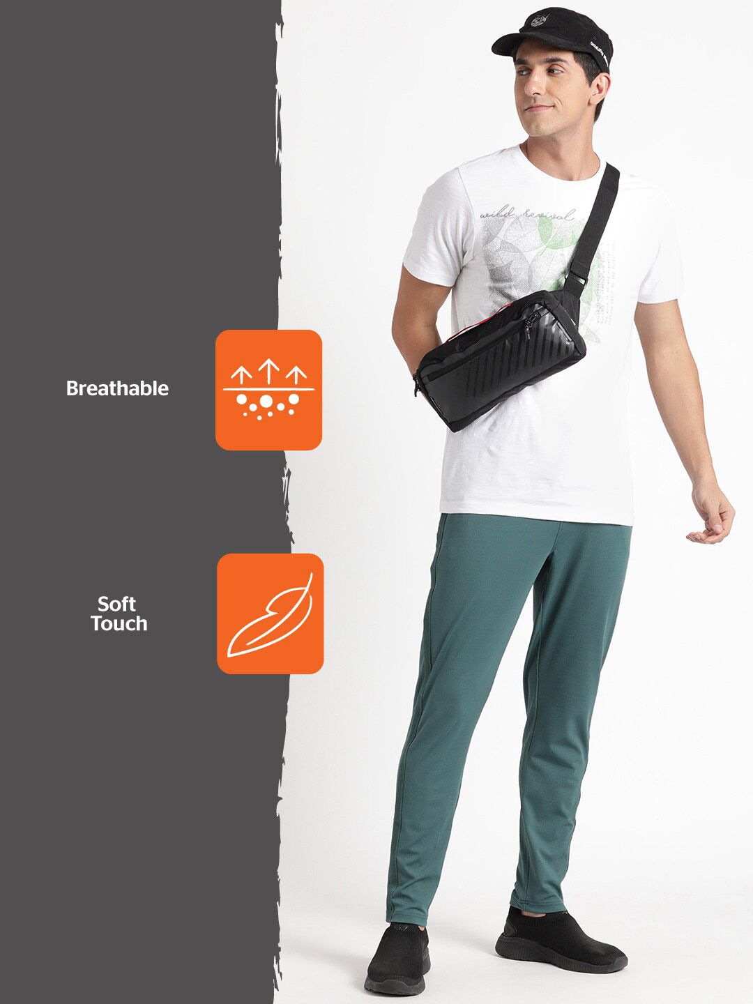 Green solid regular-fit track pants, has an elasticated waistband with a Slip-on closure, and 2 pocketsFeatures:Multi-functional track bottoms that stretch the way your body does.Freedom of movement- Stretches the way your body does.Shape retention- Contracts back to their actual structure.Quick drying- Dries in a lash.Anti-wrinkle- Stays dapper, keeps you dapper.Comfortable straight it- Doesn't let fatigue get to you.Multi-pocketed- Helps keep all essentials handy.