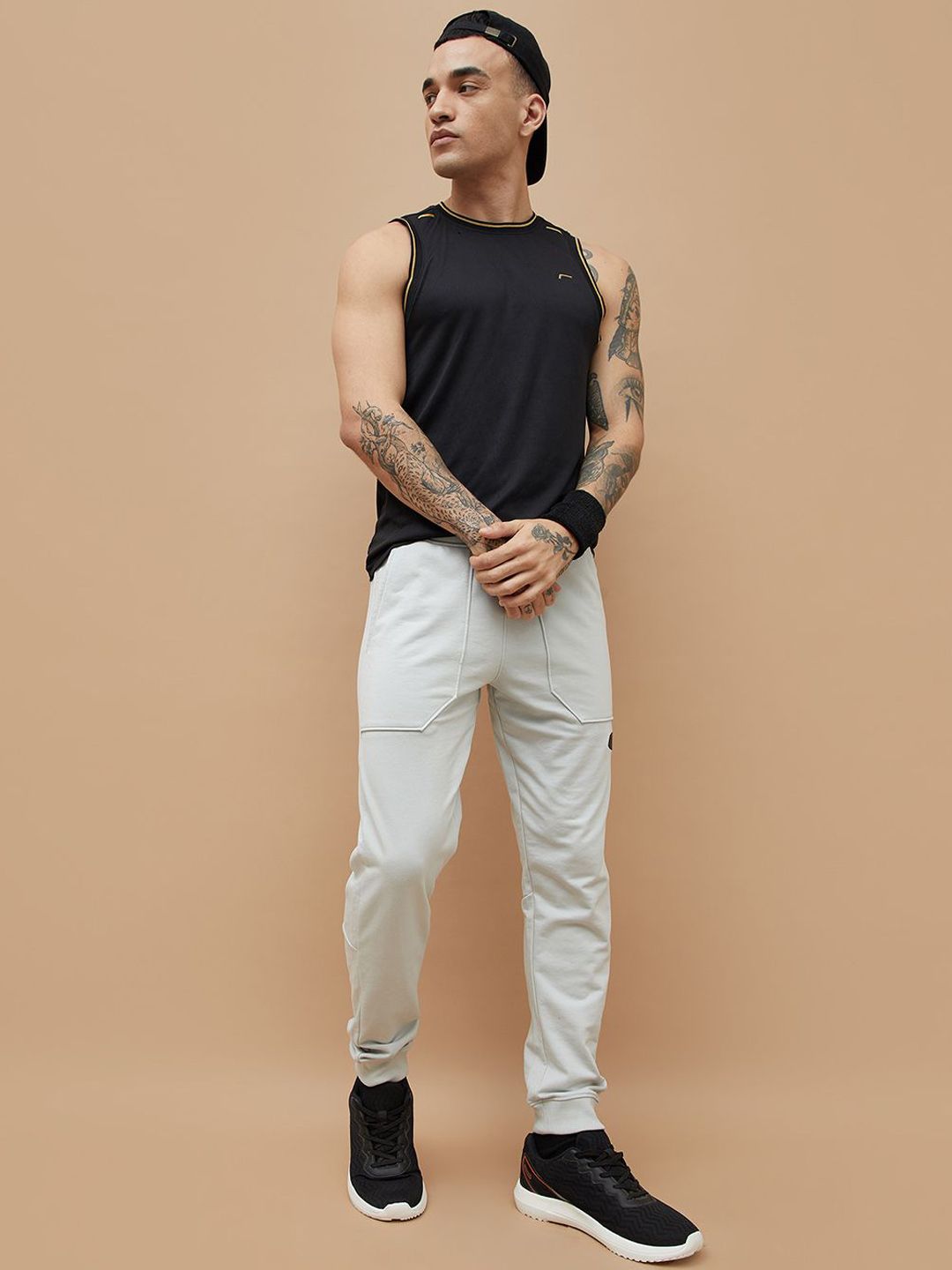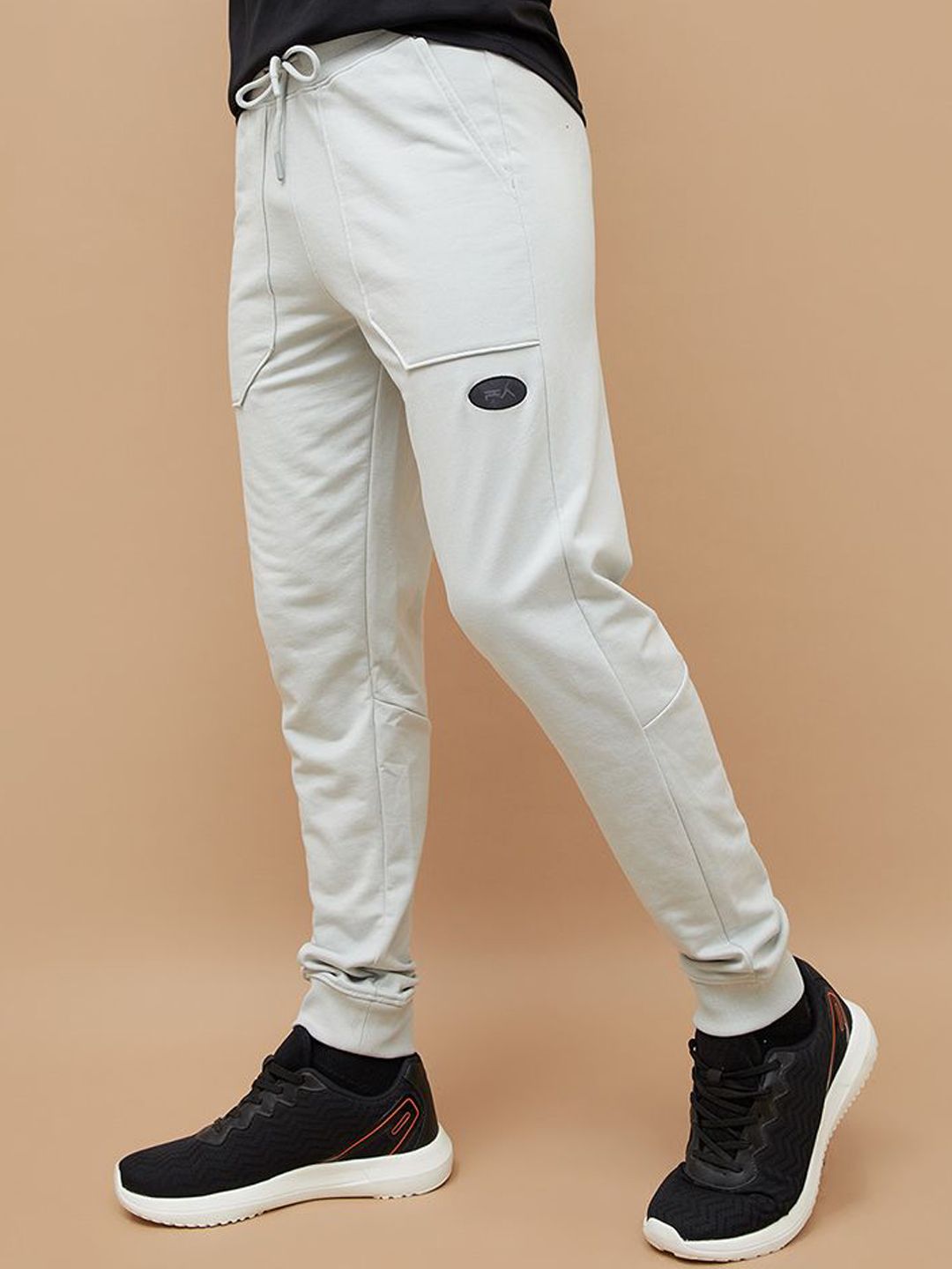 Grey solid regular-fit mid-rise track pant has an elasticated waistband with drawstring closure has two pockets