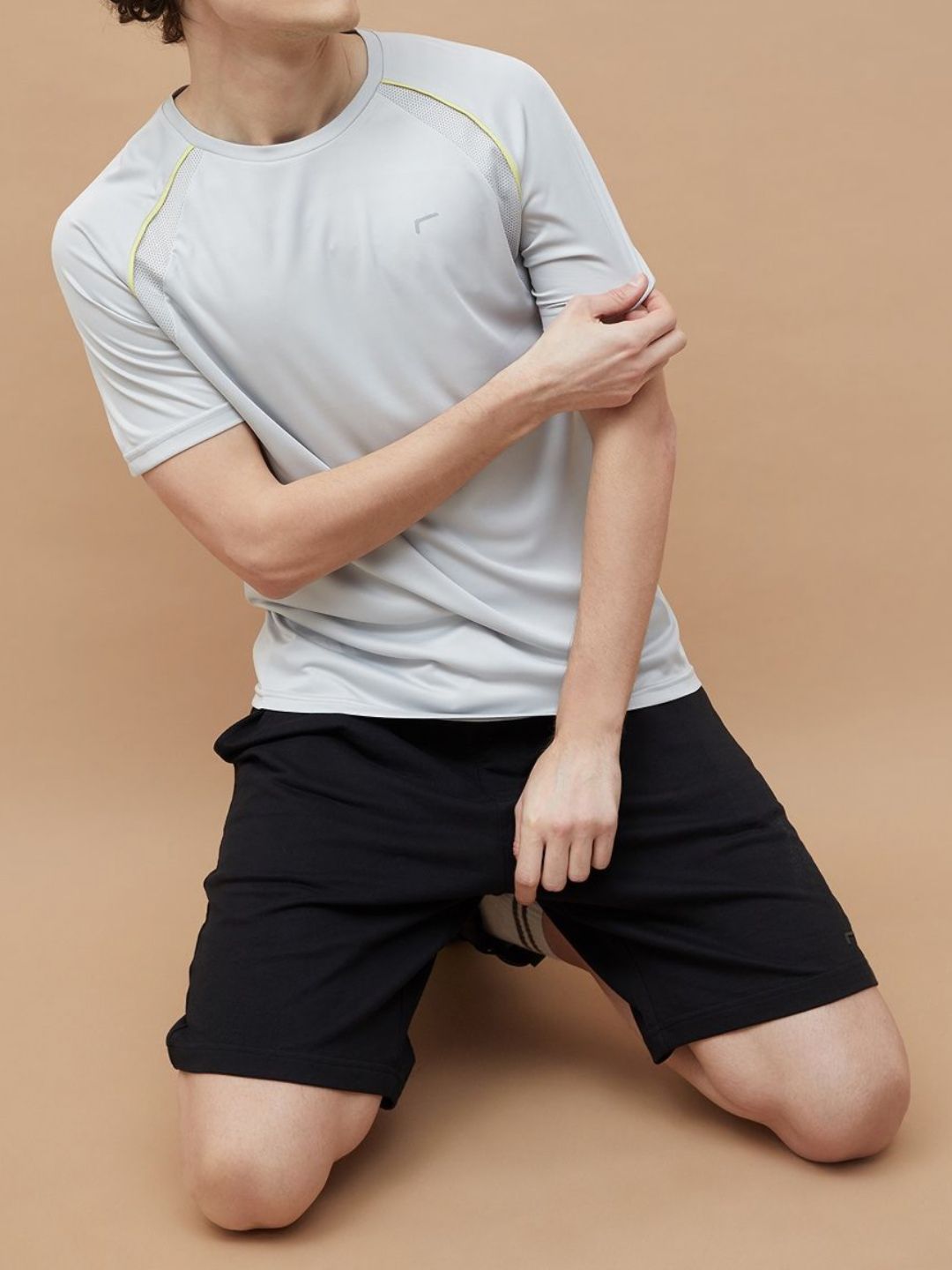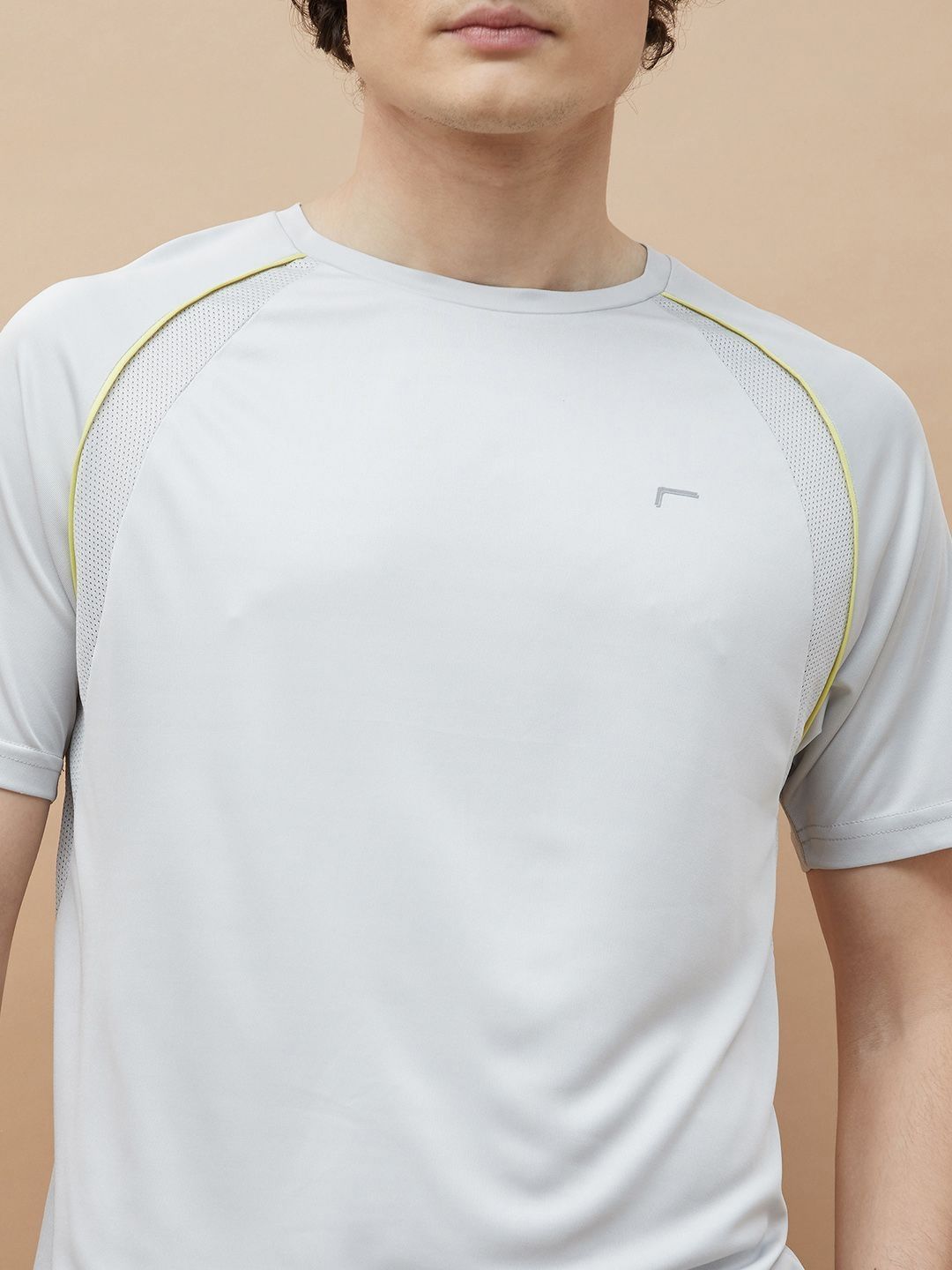 This solid sports T-shirt features a classic crew neck and comfortable half raglan sleeves for enhanced mobility. Designed with breathable fabric, it ensures optimal performance during workouts or casual wear. The solid tone adds versatility to your athletic wardrobe.