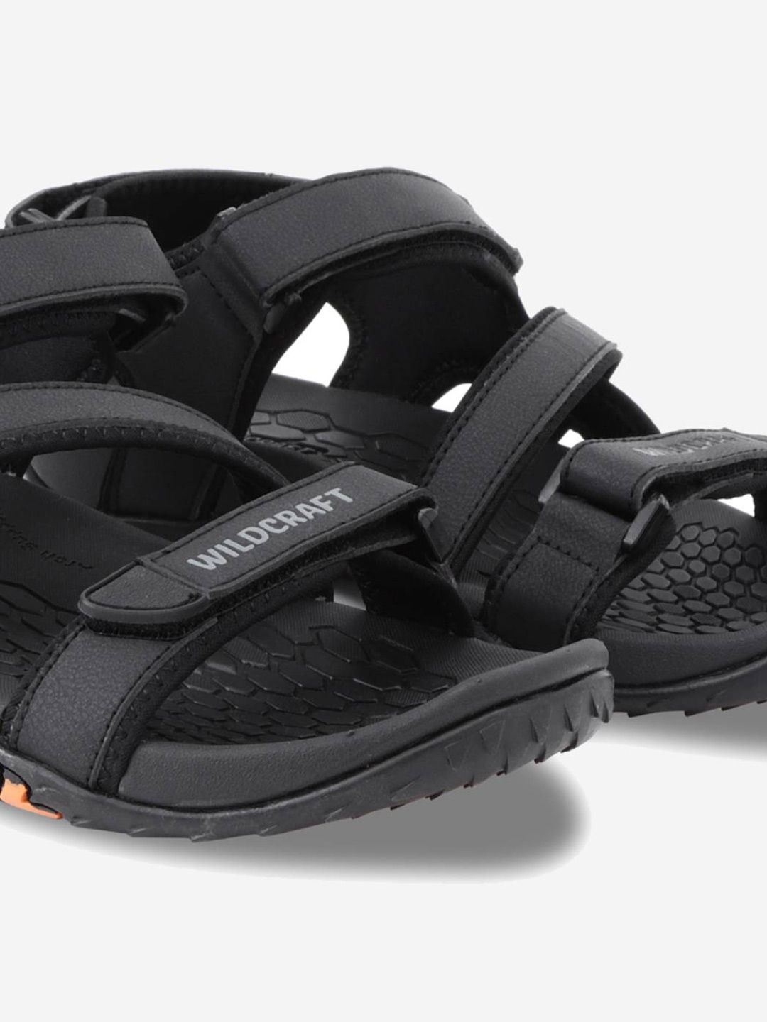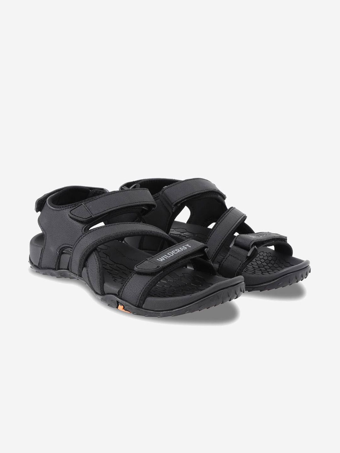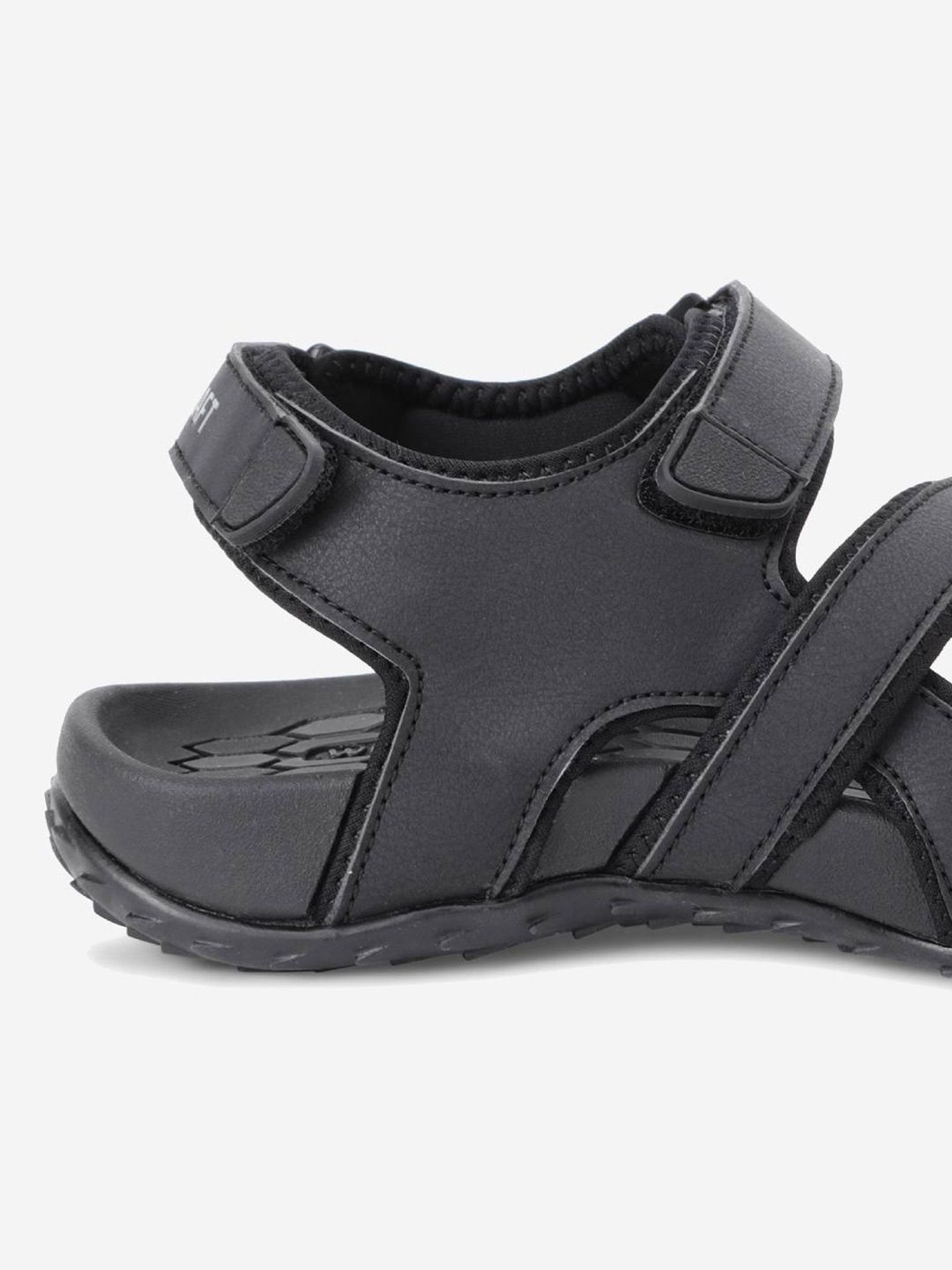 A pair of blue, grey and green solid sports sandals, secured with a velcro closureSynthetic upper