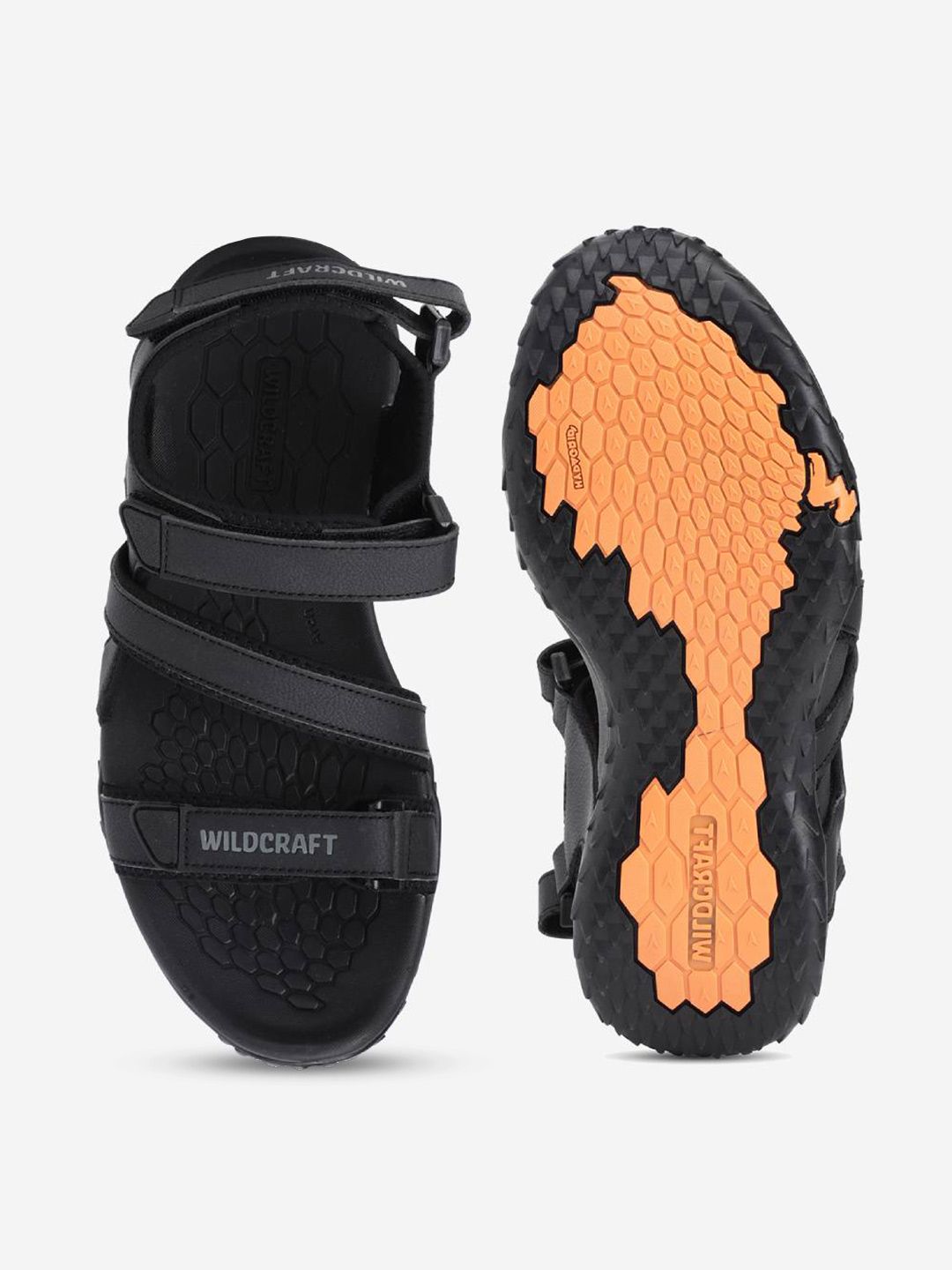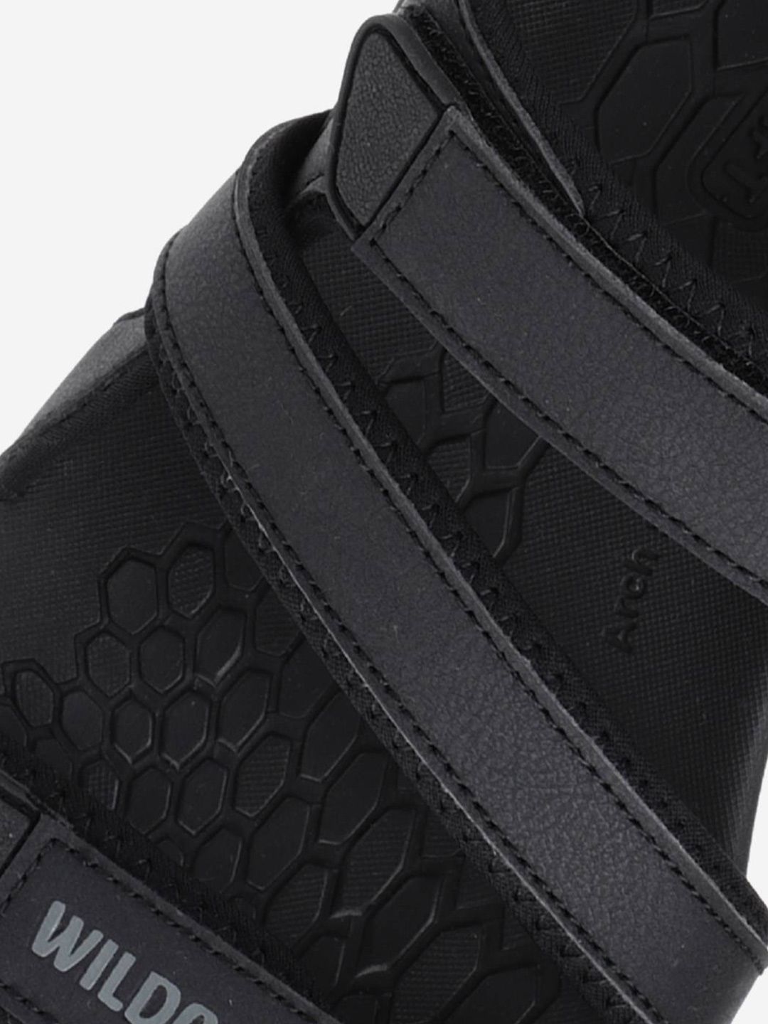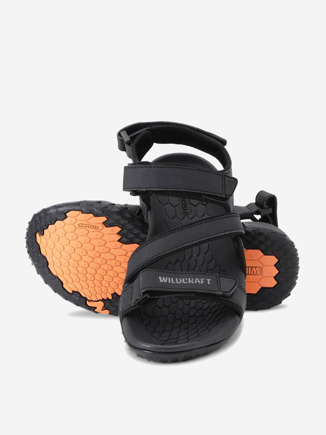 A pair of blue, grey and green solid sports sandals, secured with a velcro closureSynthetic upper