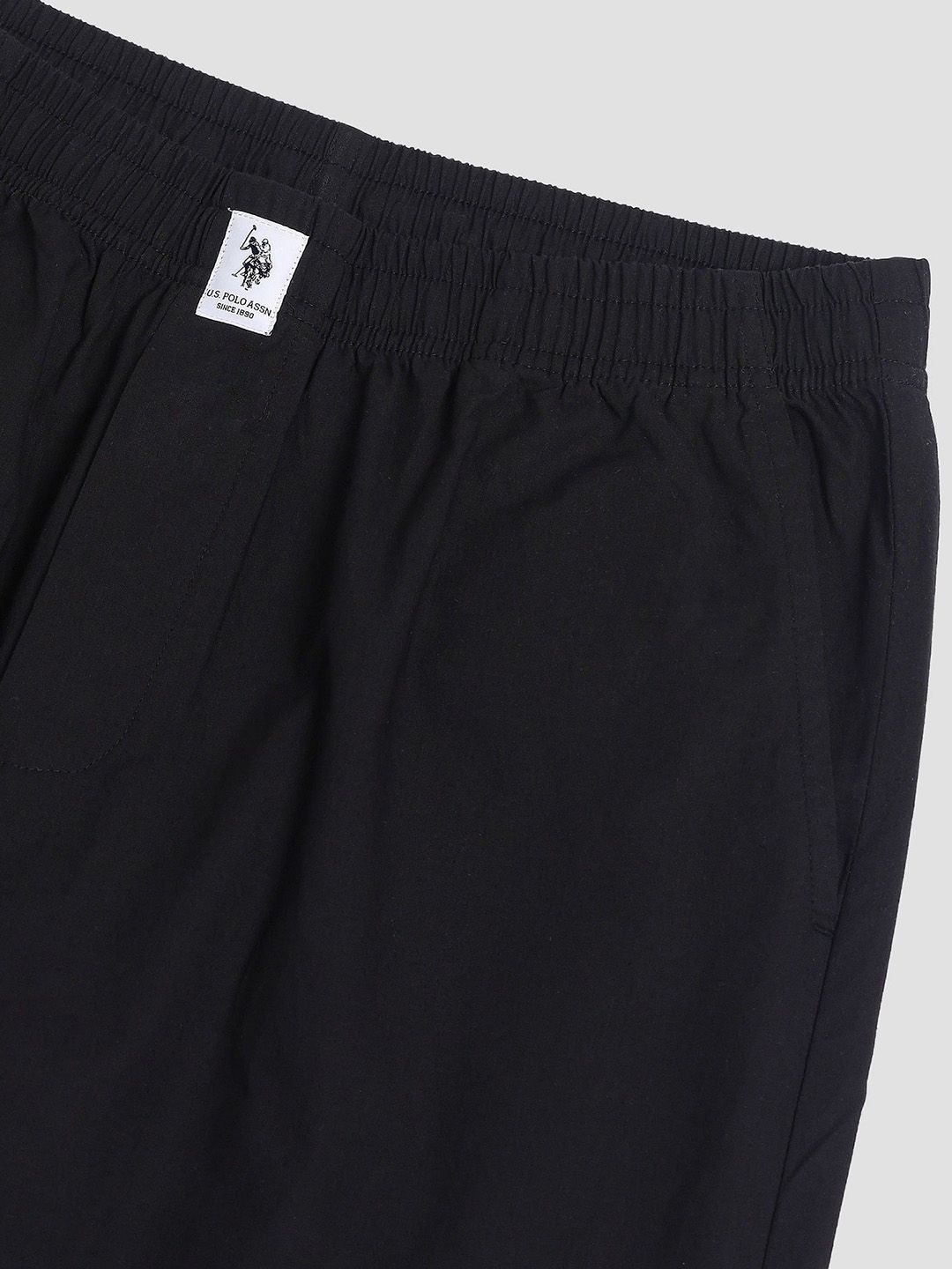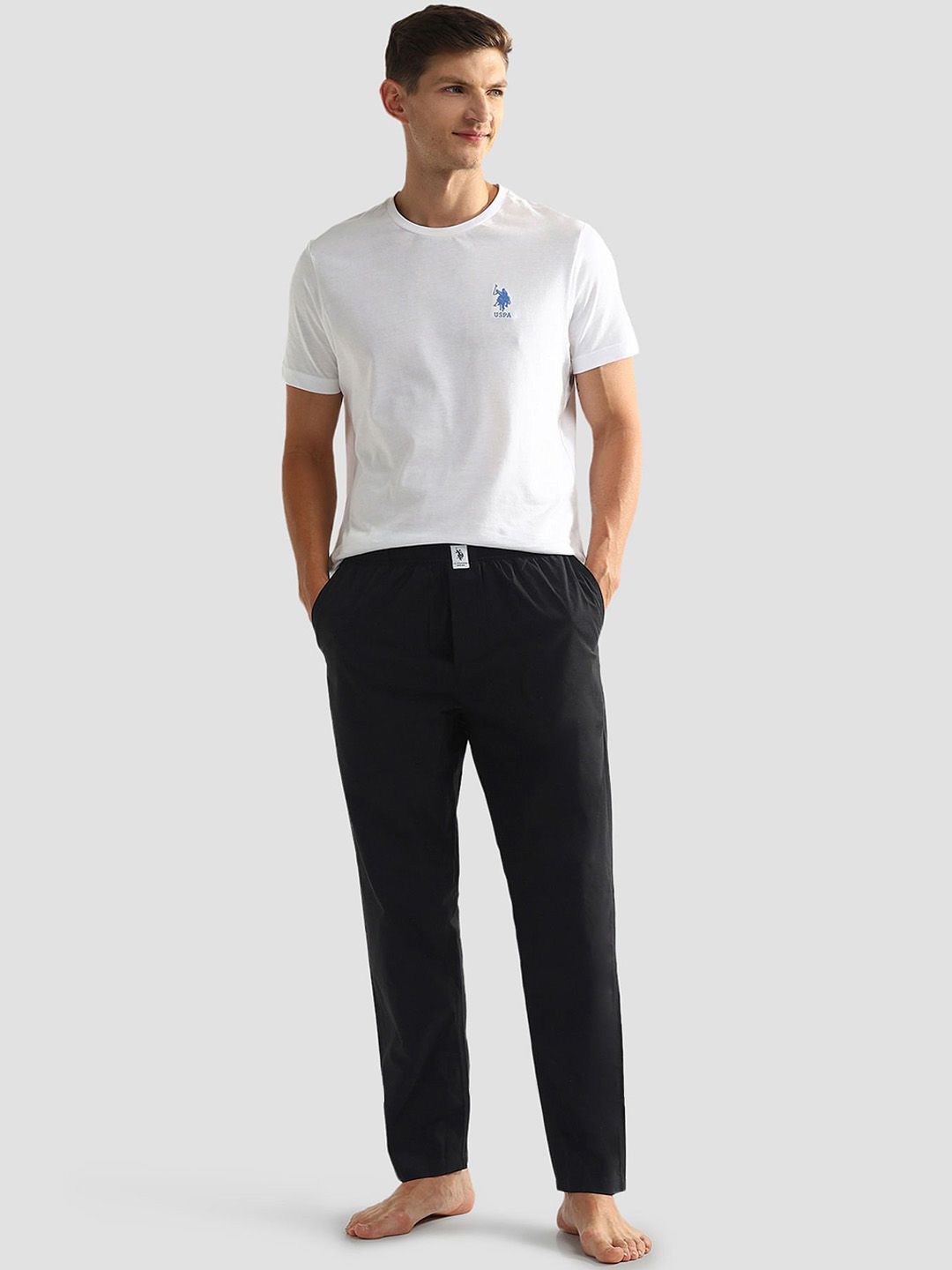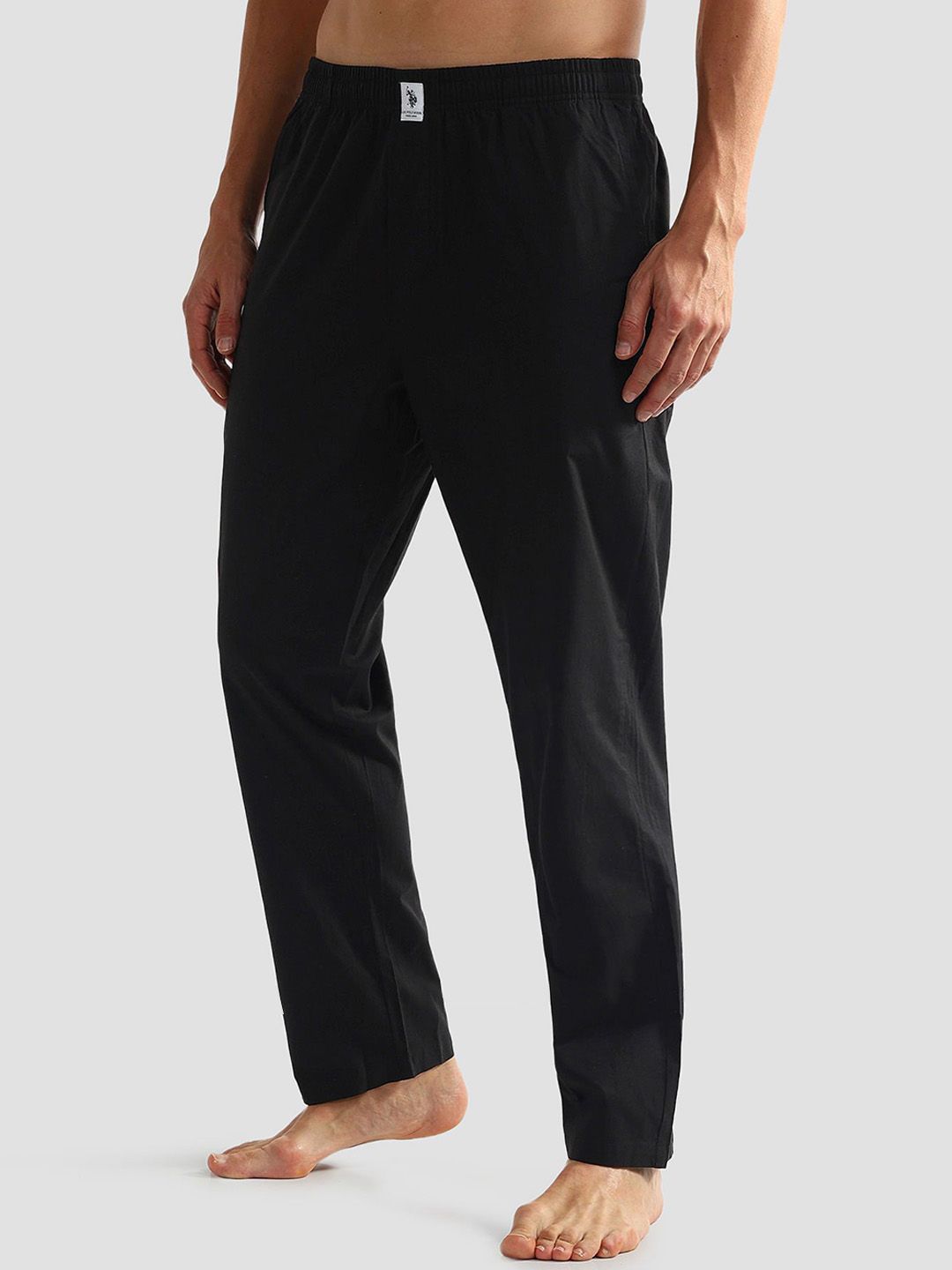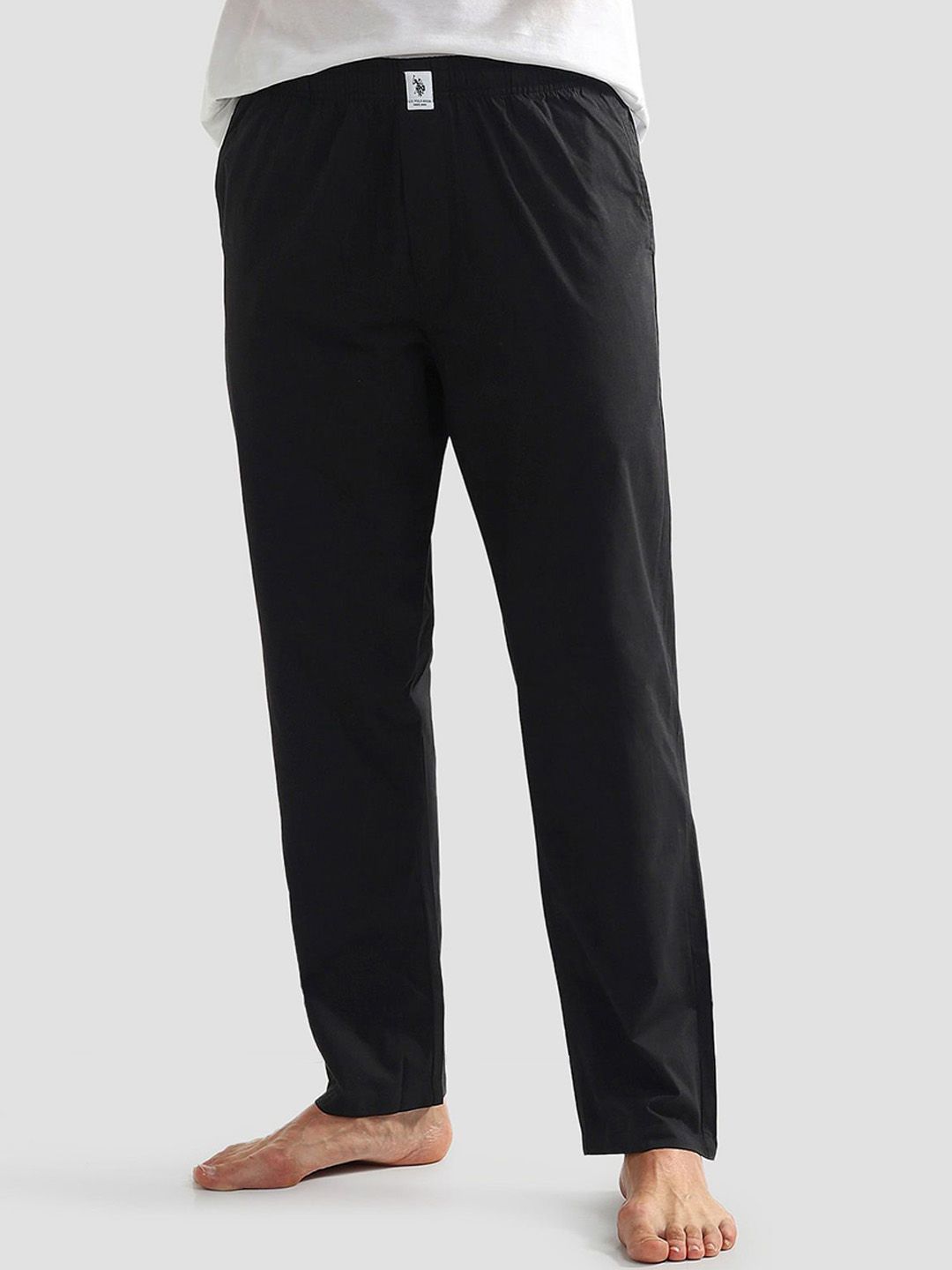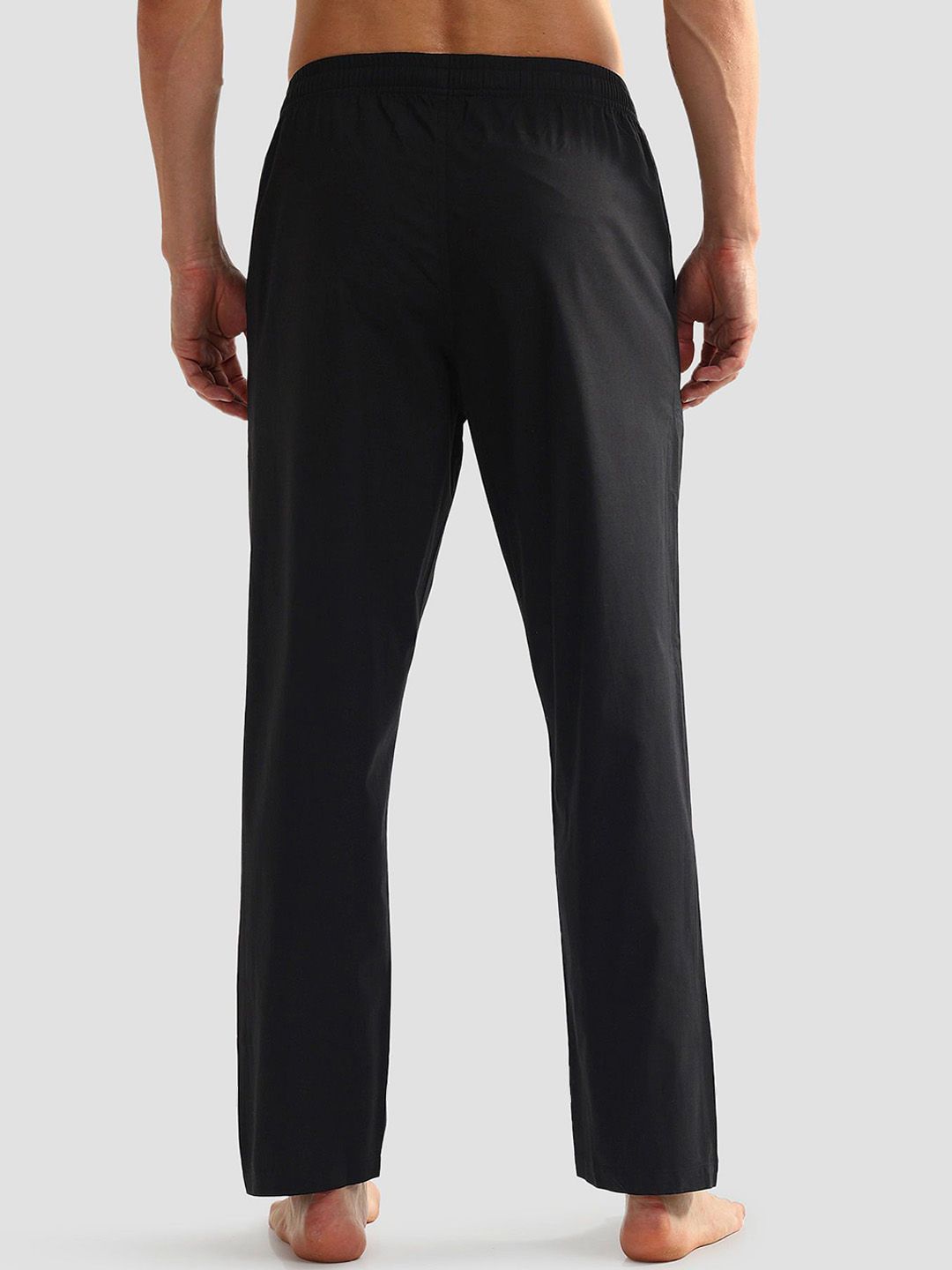 Black solid lounge pants, has an elasticated waistband with button fly & two pocketsFeatures:LightweightStretchable