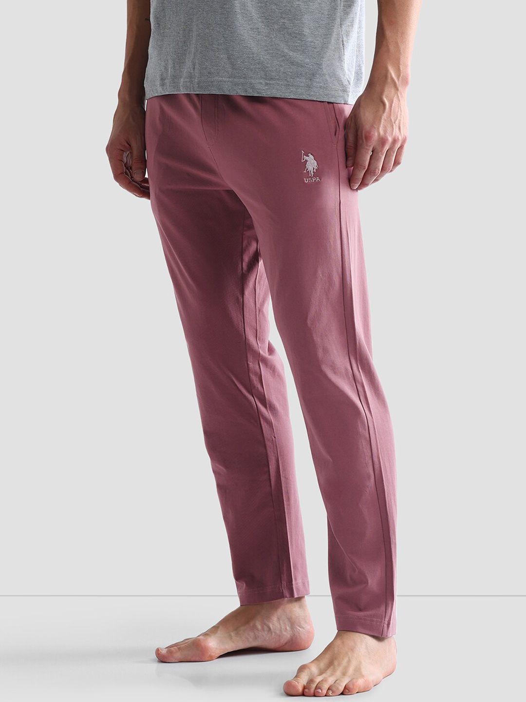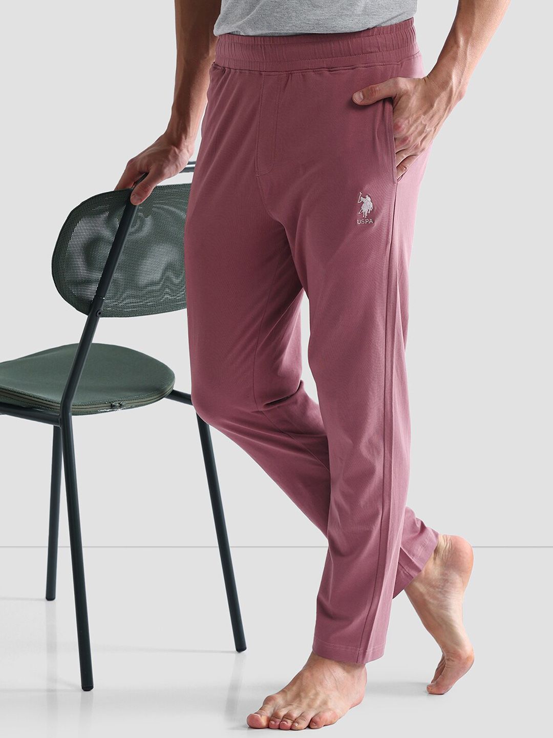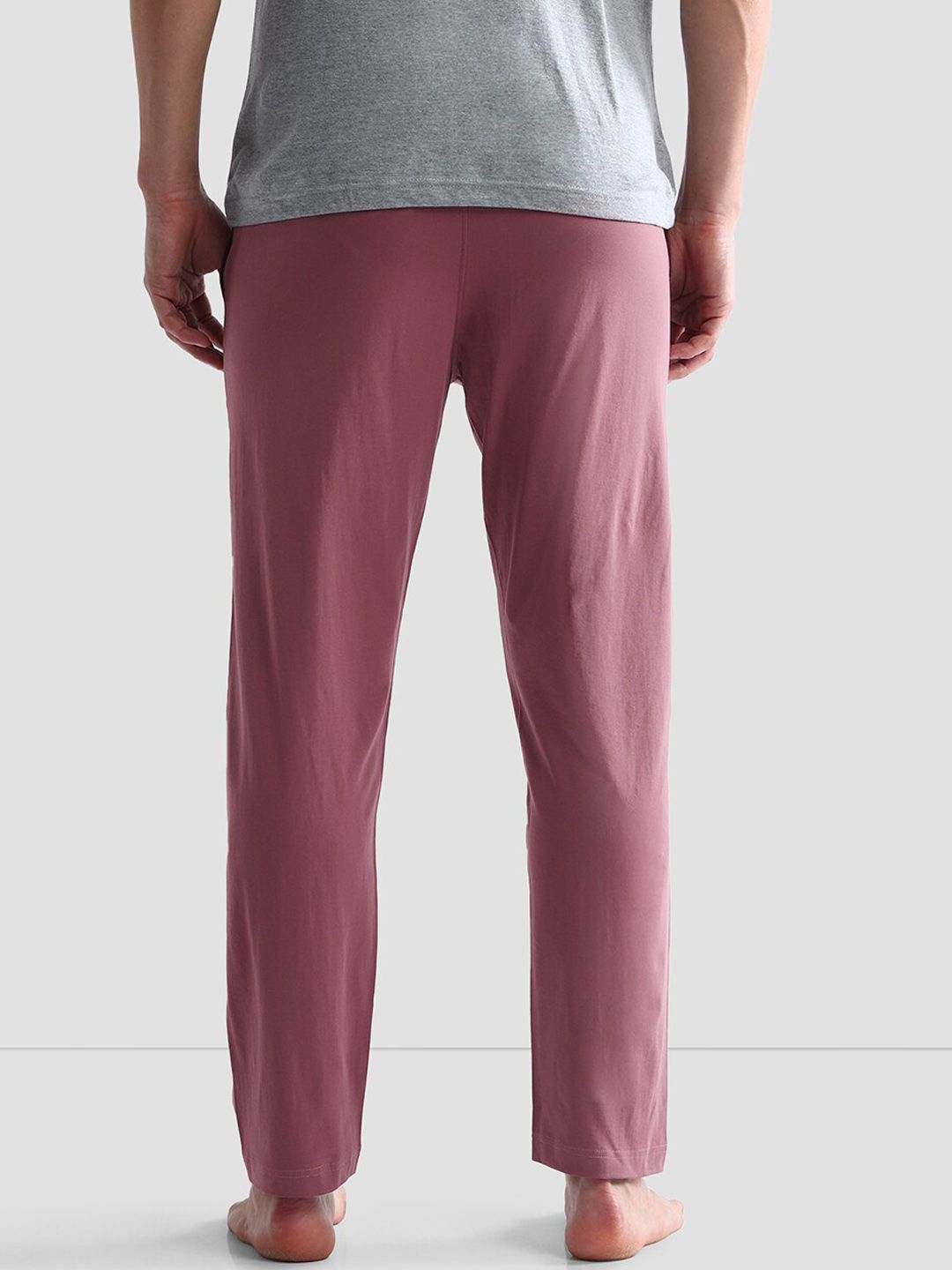 Pink solid Lounge Pants, has an outer elasticated waistband with slip on closure and two pockets