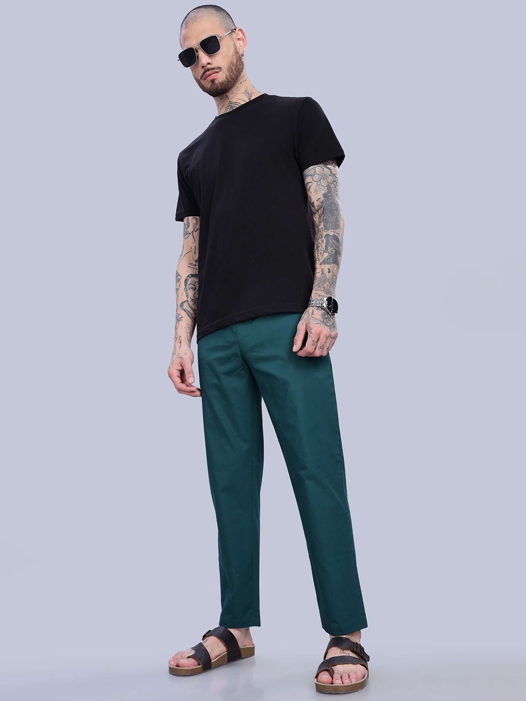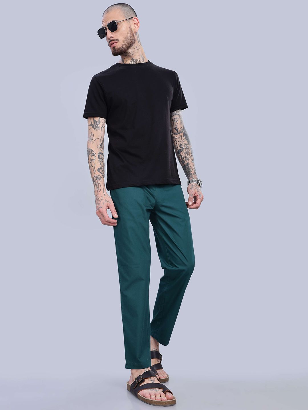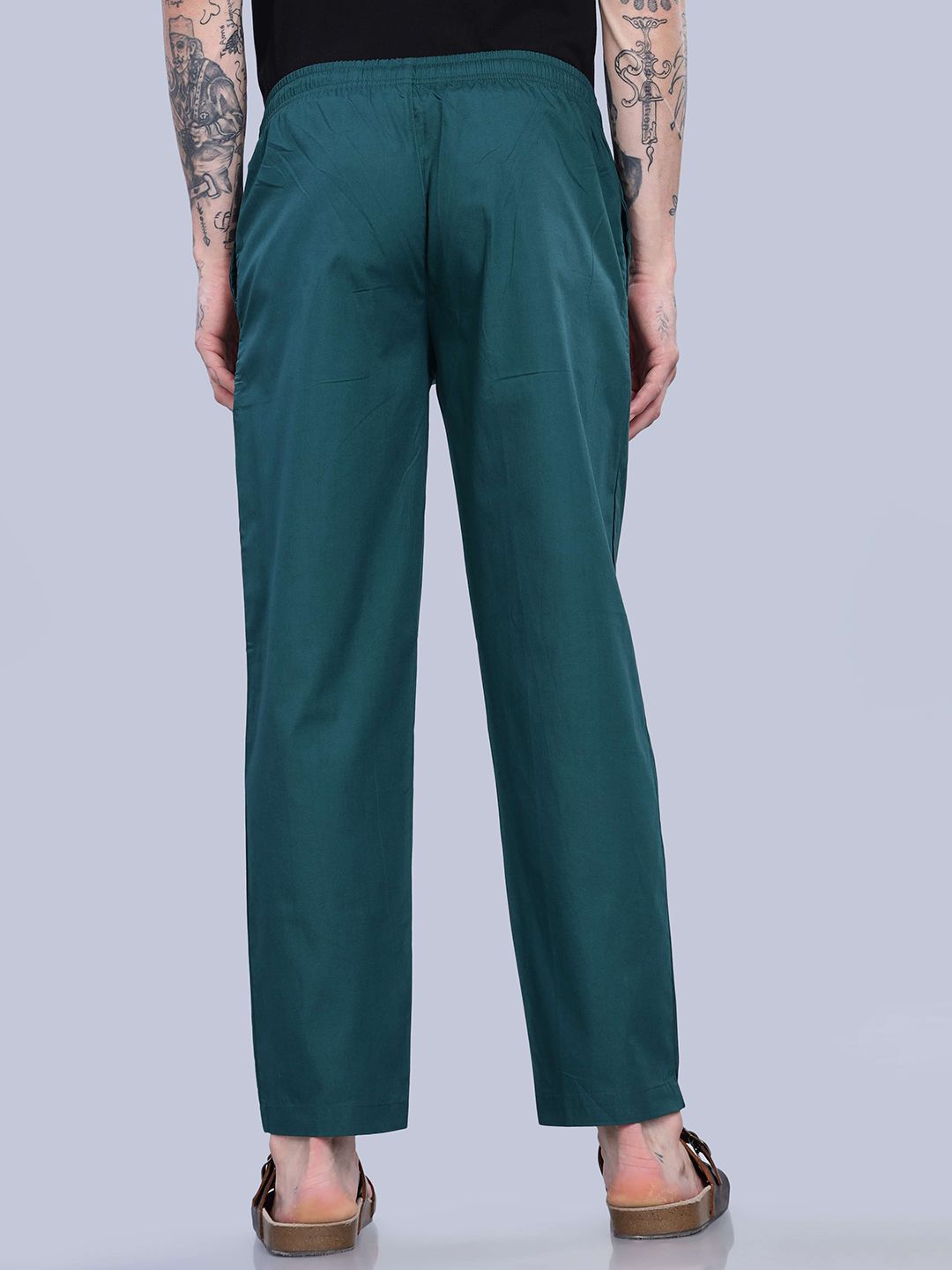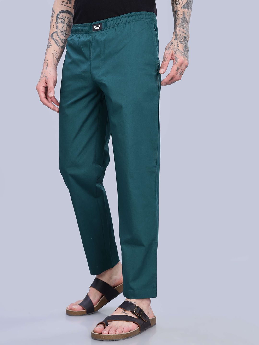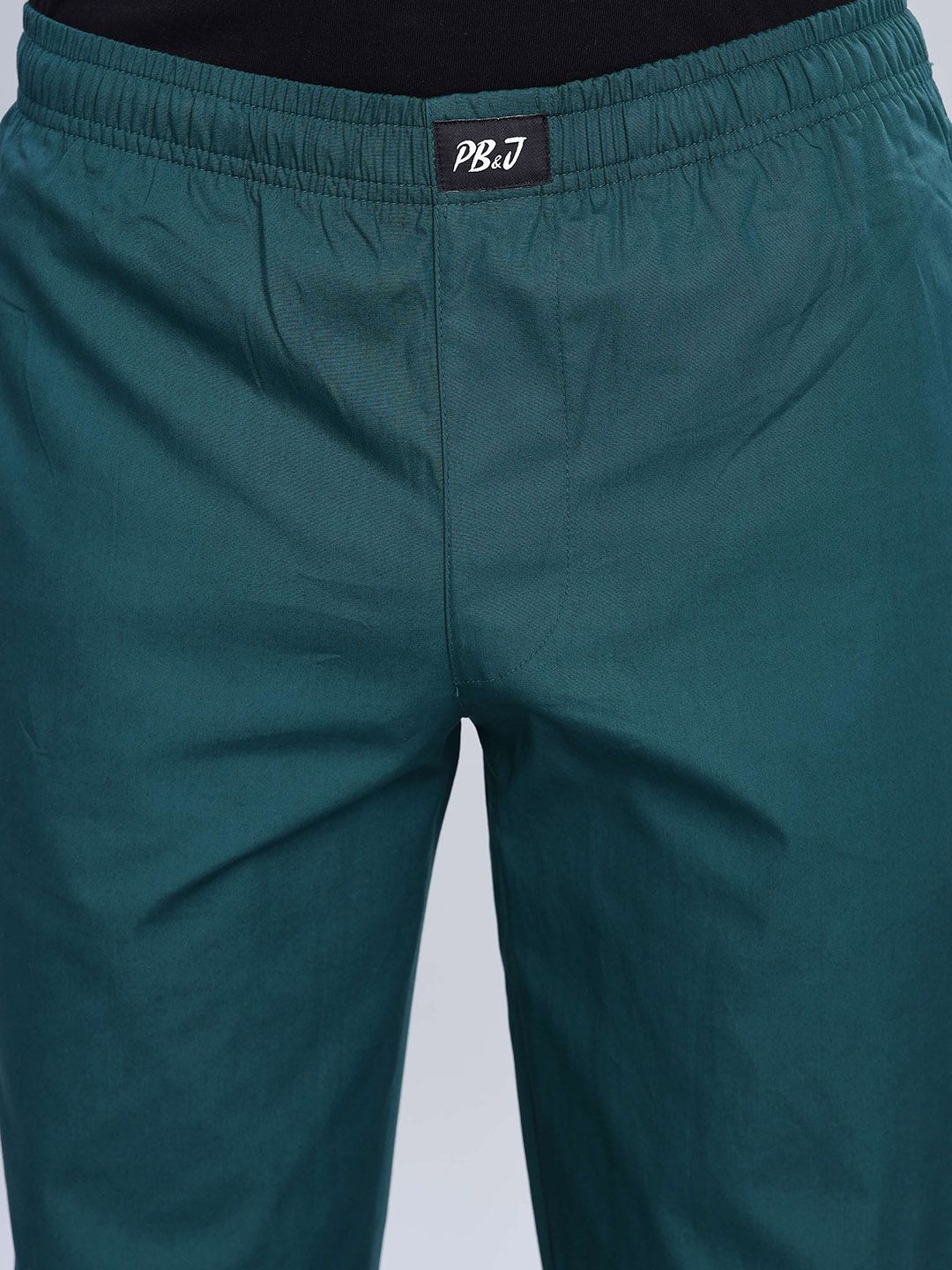 Green solid mid-rise lounge pants has an inner elasticated waistband with slip-on closure, and 2 side pockets