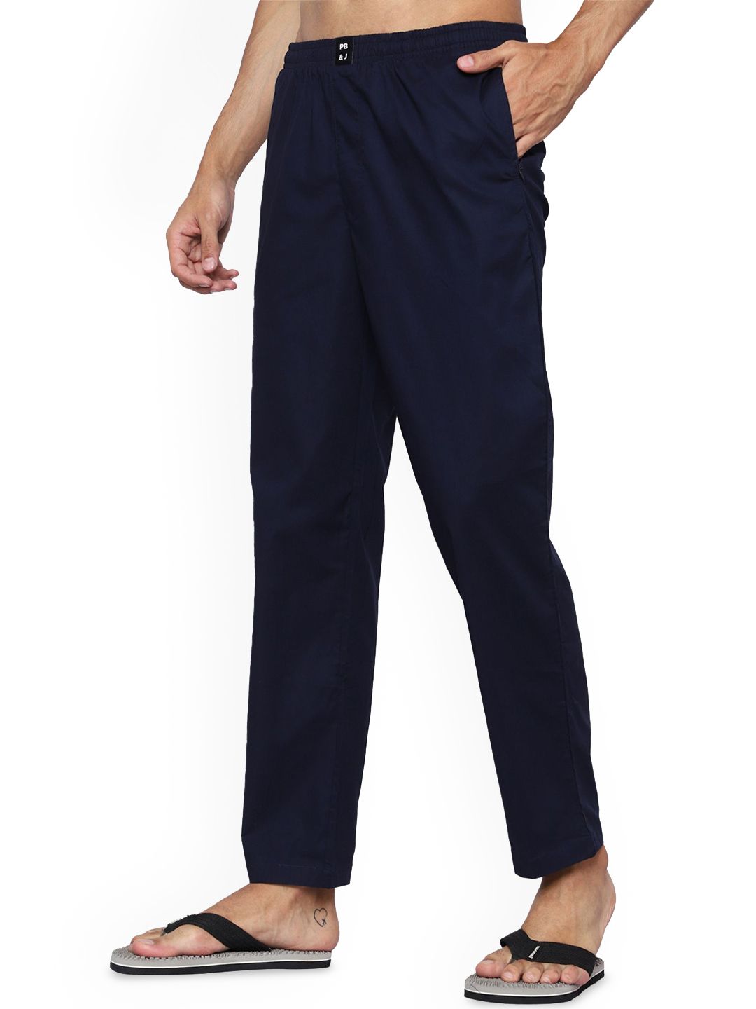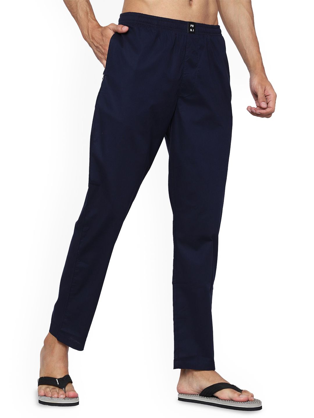 Blue solid lounge pants, has an inner elasticated waistband with slip on closure and two pockets