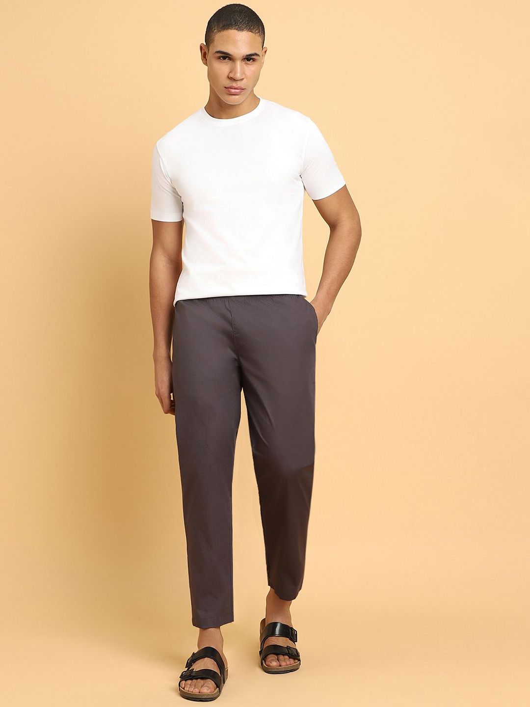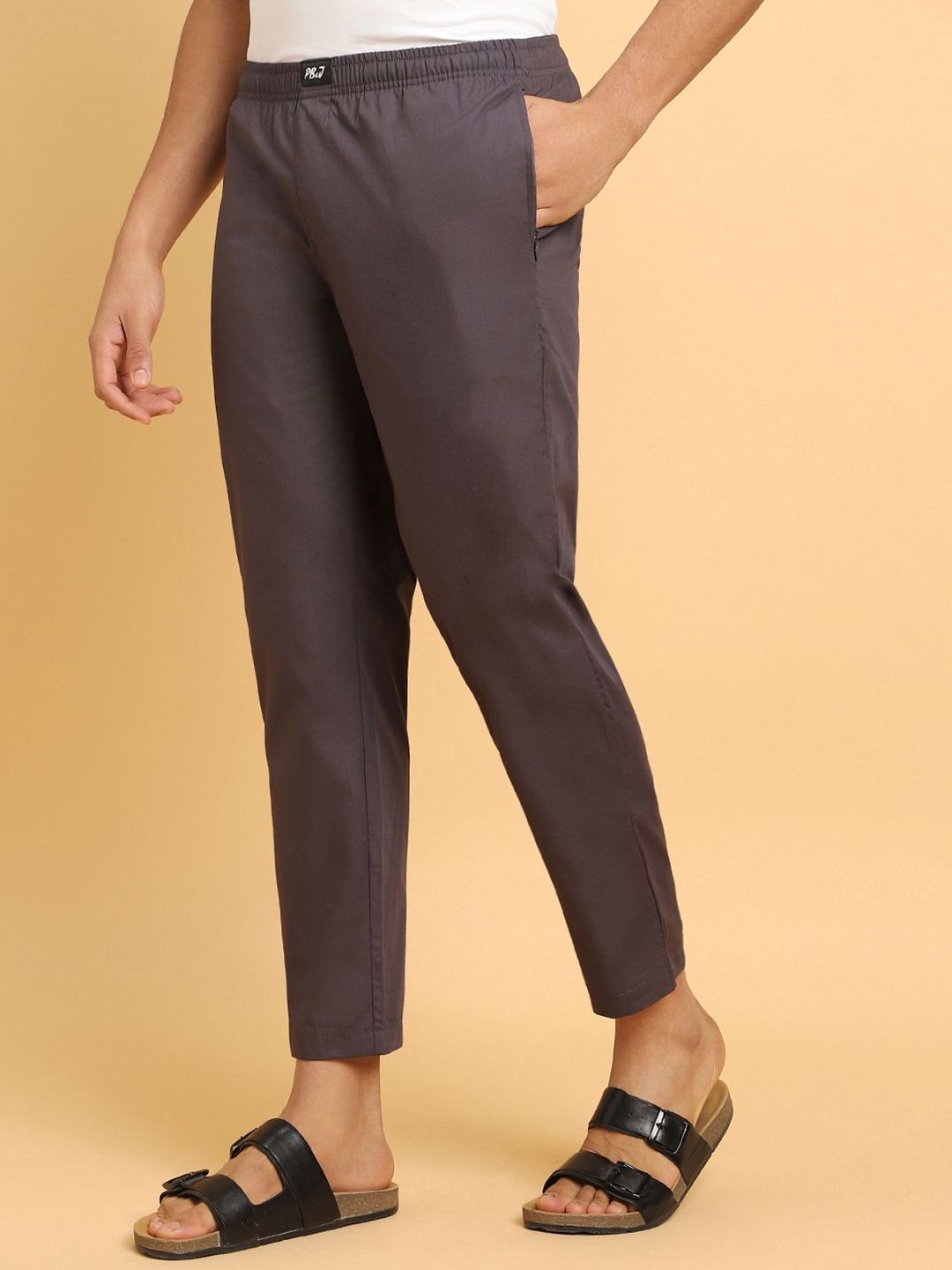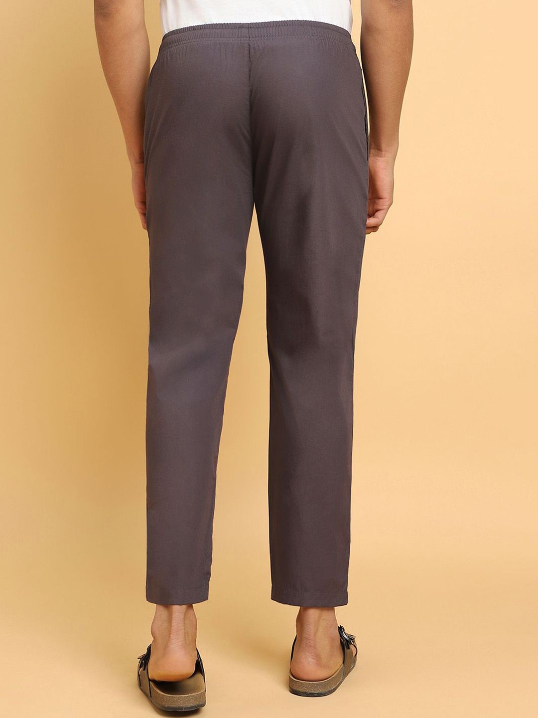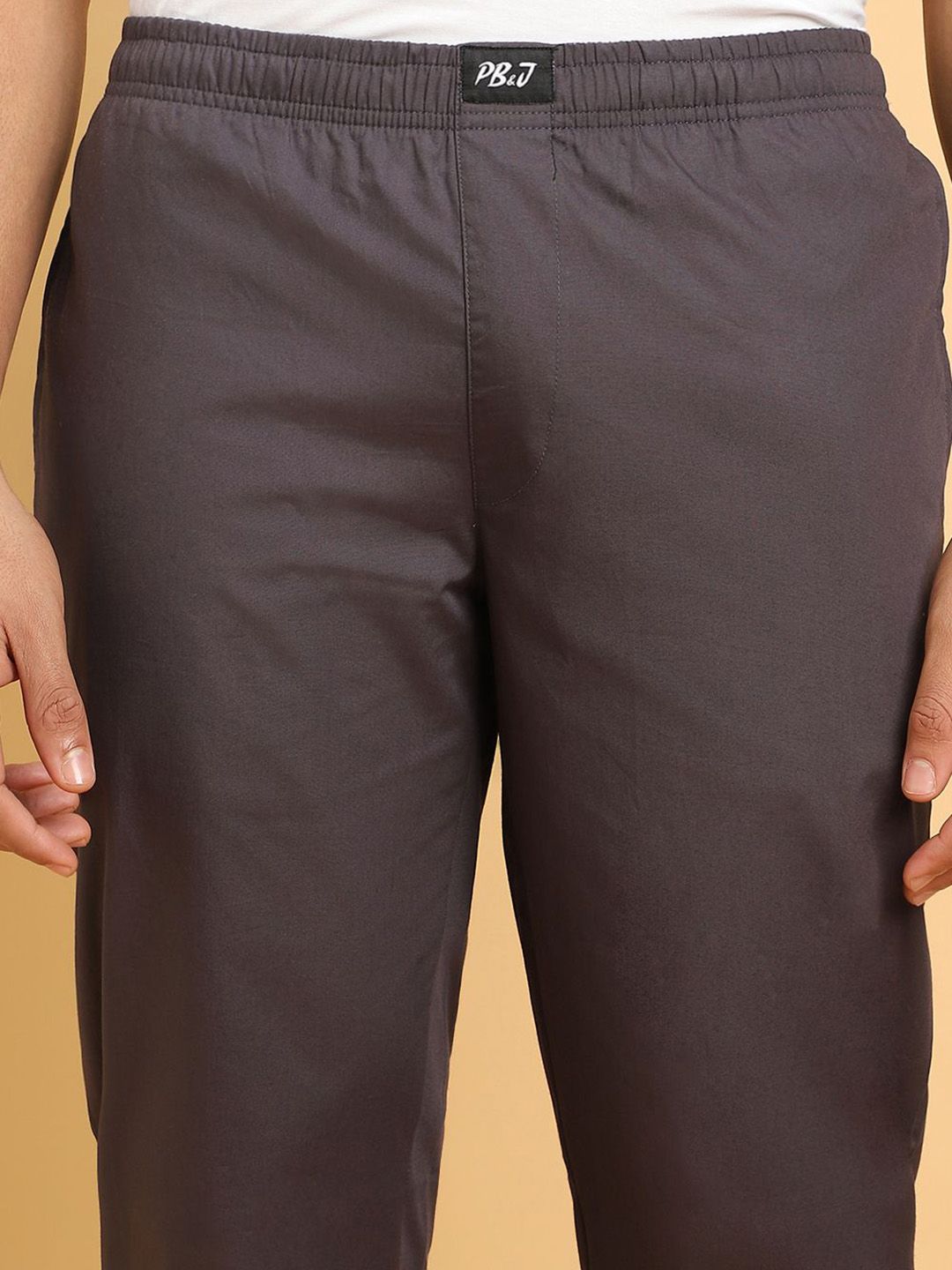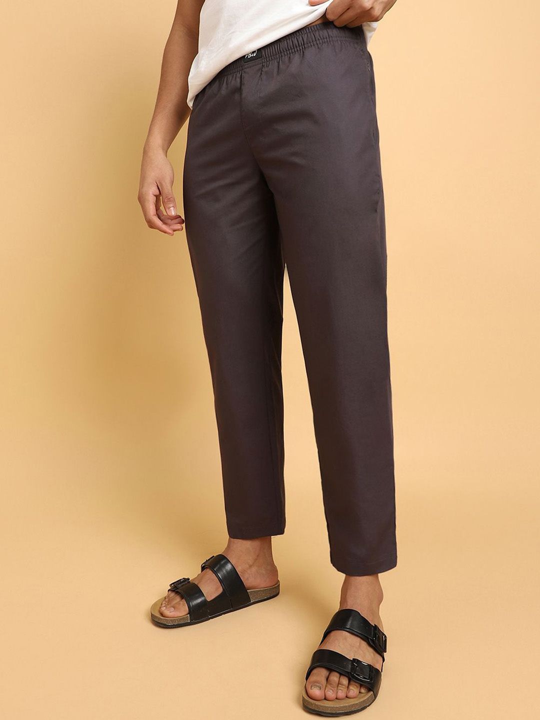 Grey solid straight lounge pants, has an inner elasticated waistband with slip-on closure and two pockets
