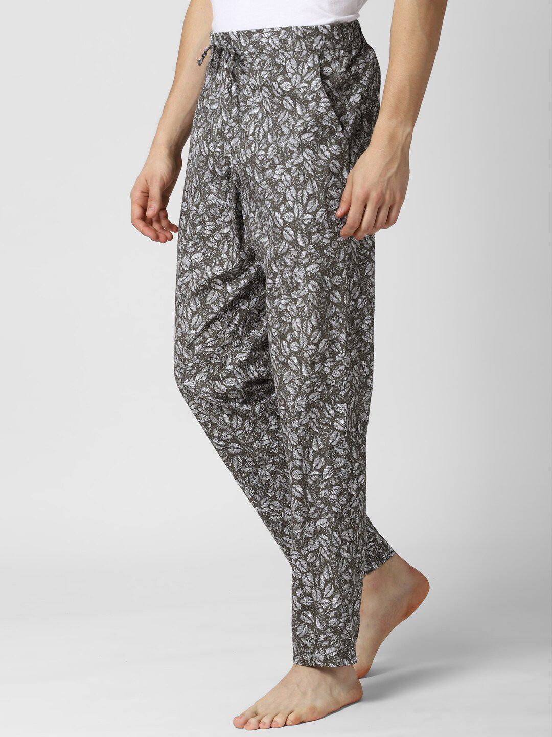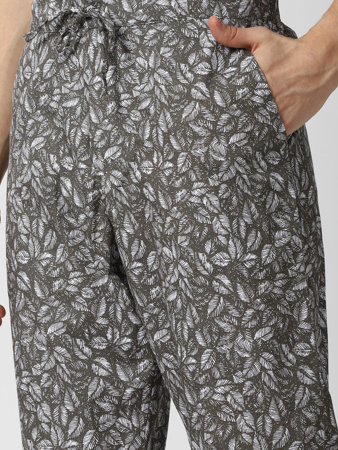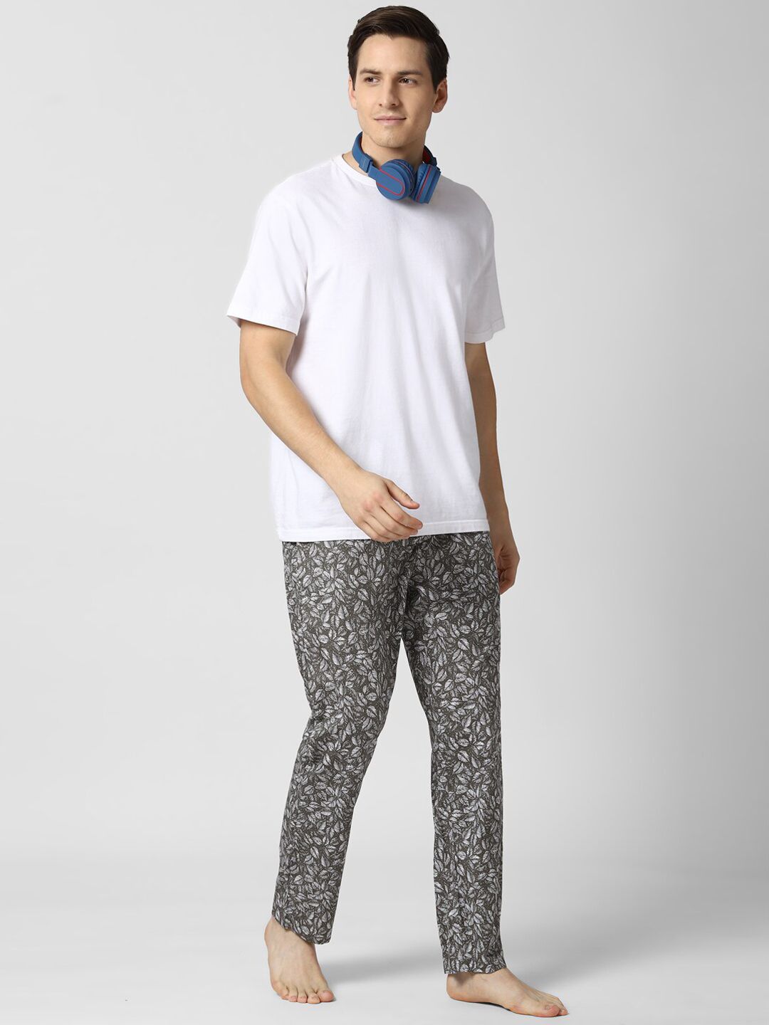 Grey and white printed mid-rise lounge pants has an inner elasticated waistband with drawstring closure and 3 pockets