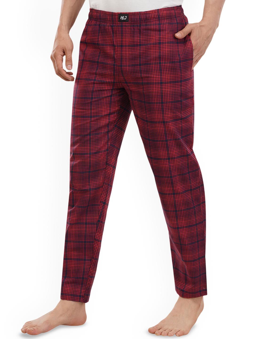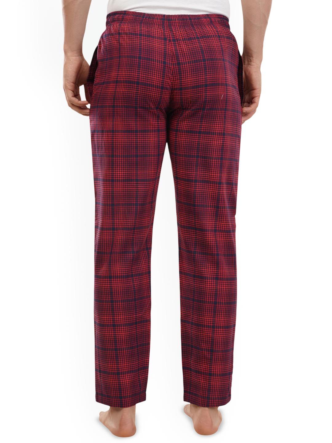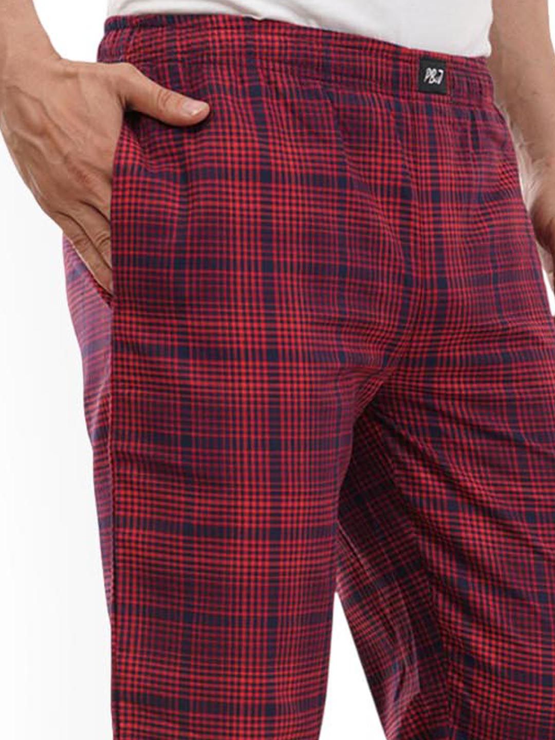 Red checked mid-rise lounge pants has an inner elasticated waistband with slip-on closure, and 2 side pockets