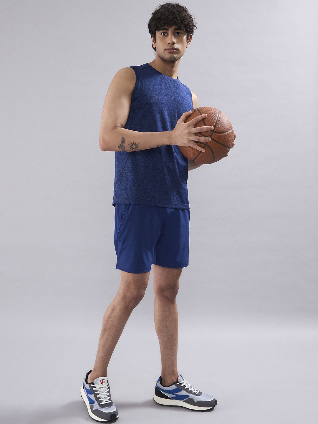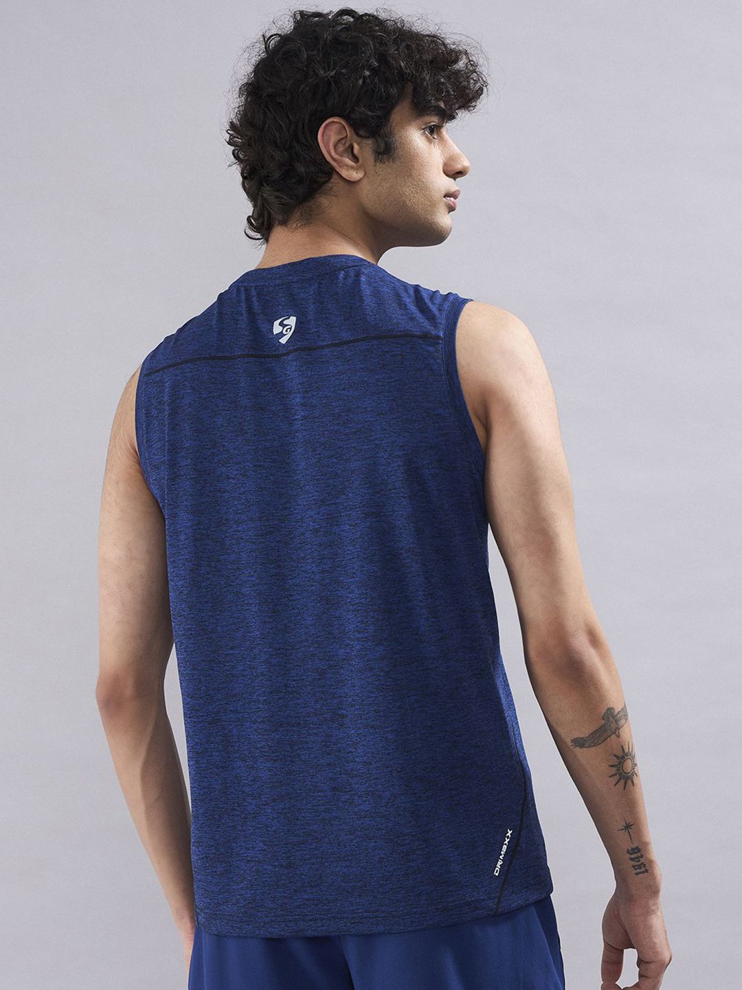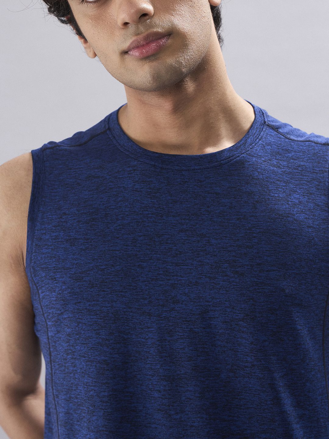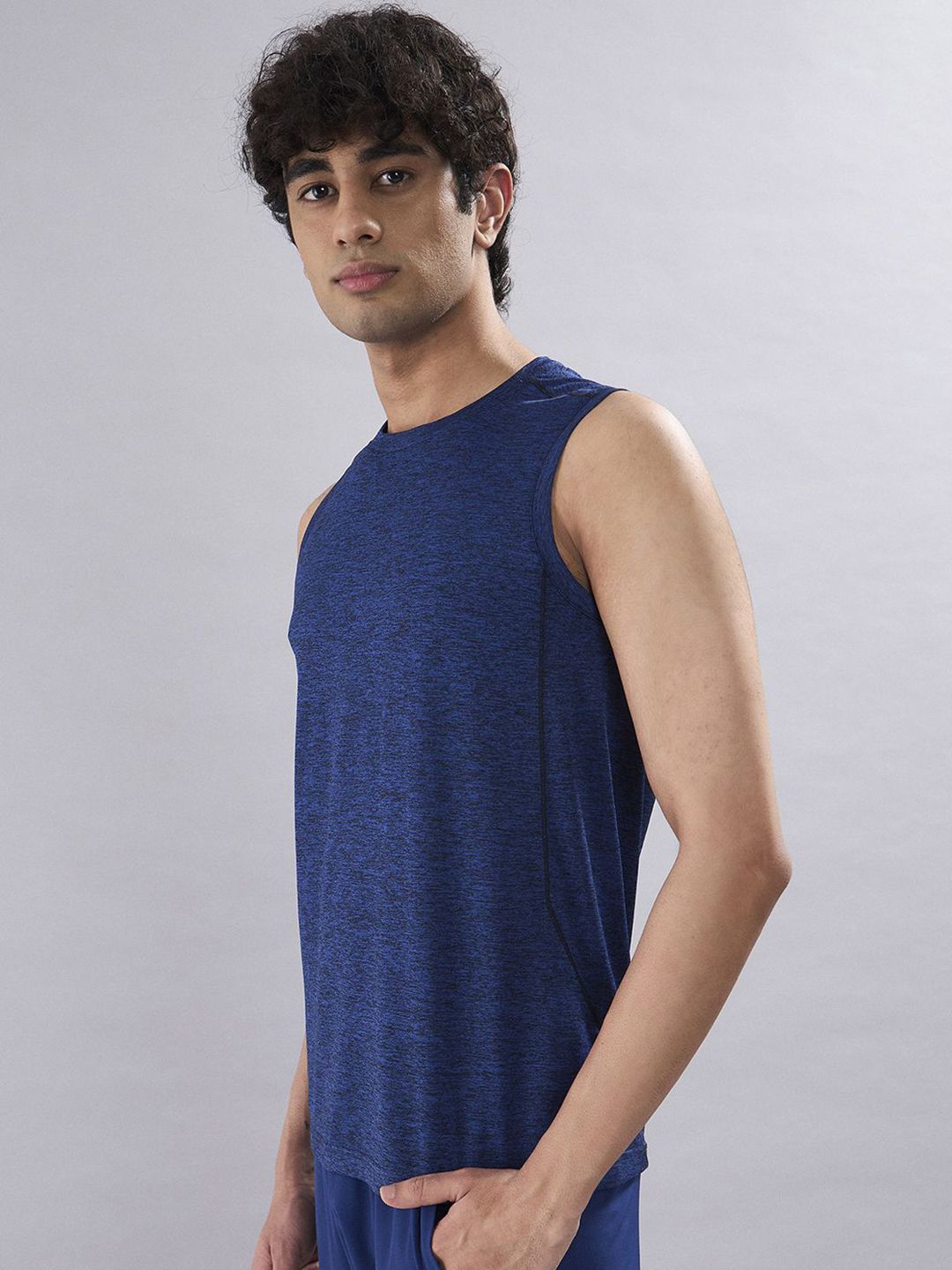 VANumber: H1MV80021Blue solid gym vest for men with print detail, has round-neck and sleevelessFeatures:Comfortable