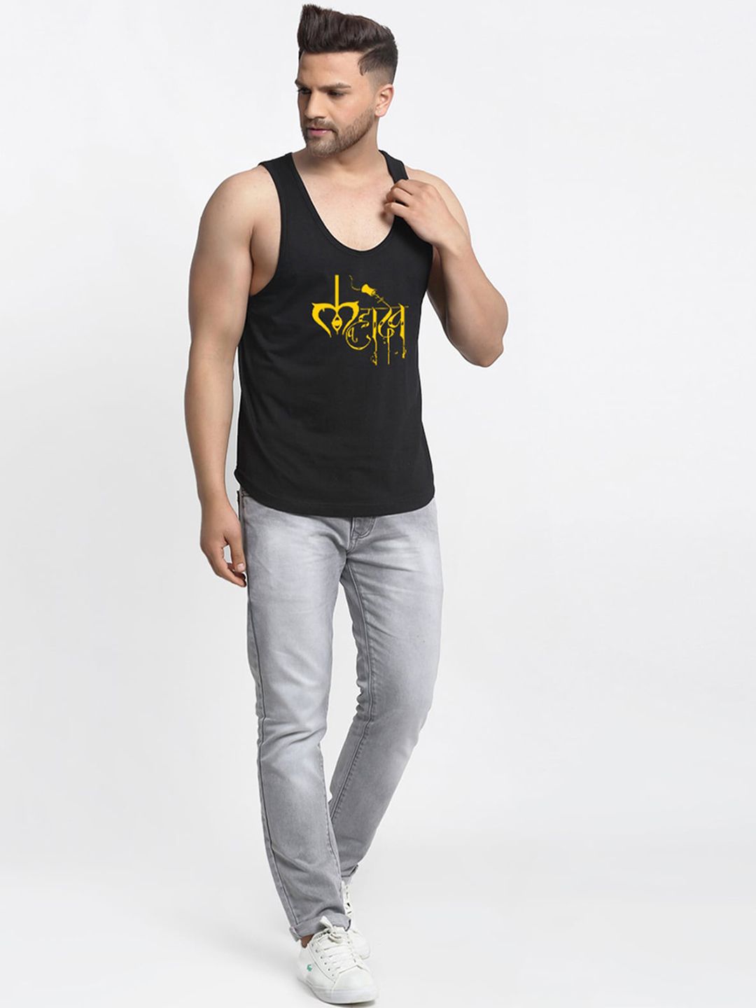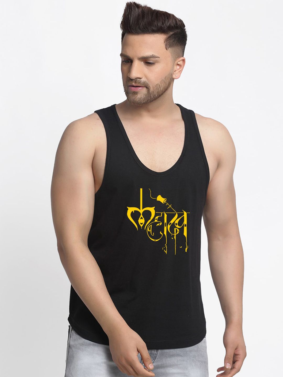 Pack of 2 printed innerwear vestsBlack and yellow printed drop cut innerwear vest, has a U-neck and drop cut sleevelessBlue, white and black printed drop cut innerwear vest, has a U-neck and sleevelessGSM: 175 - 180 GSM